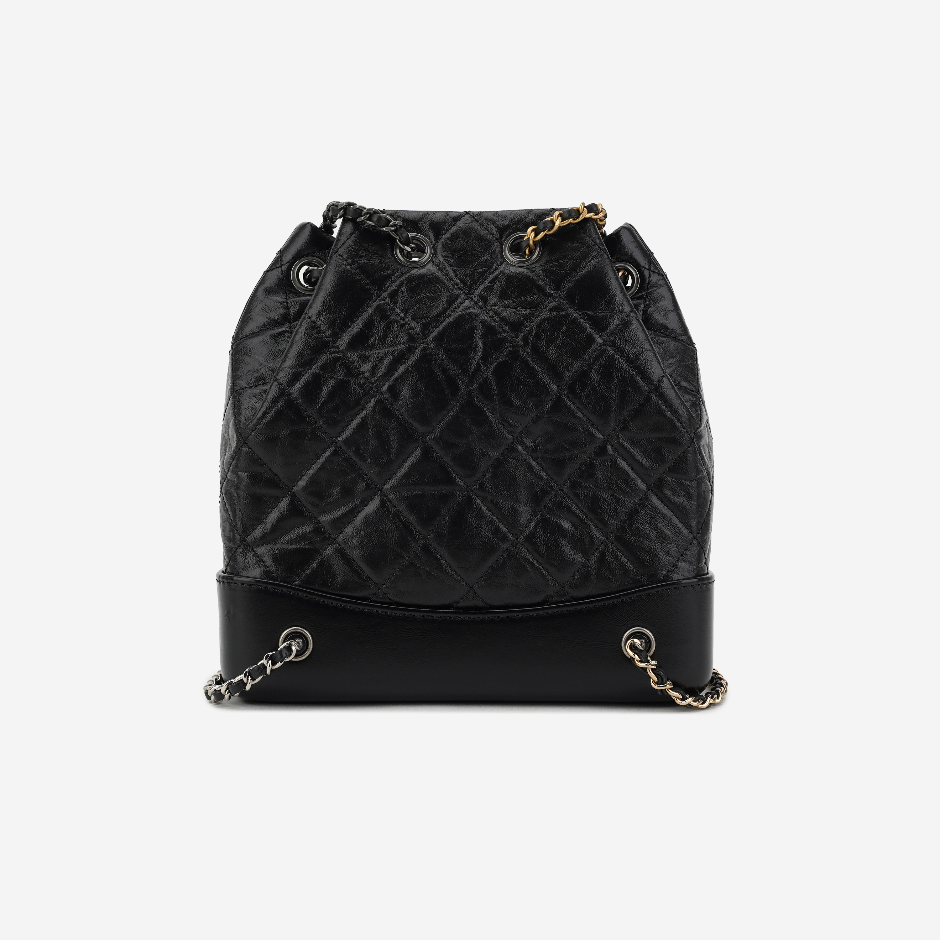 Chanel Small Gabrielle Backpack Aged Calfskin & Gold Silver Black