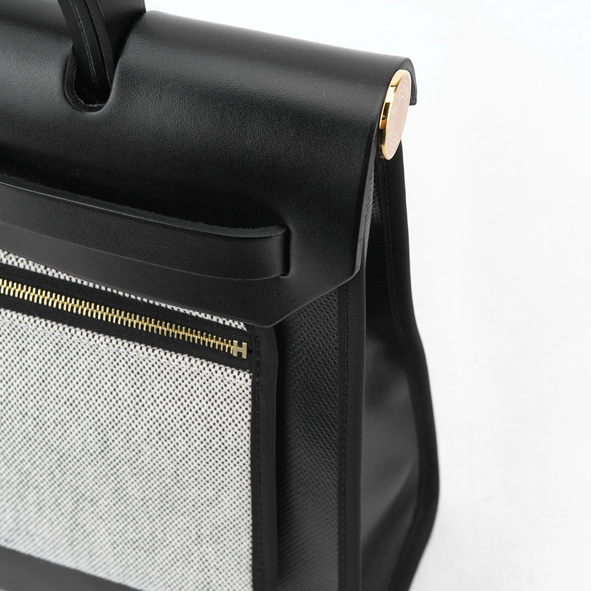 Hermes Herbag Zip 31 Bag Sellier H Berlin Canvas Hunter Cowhide & Gold Noir Ecru