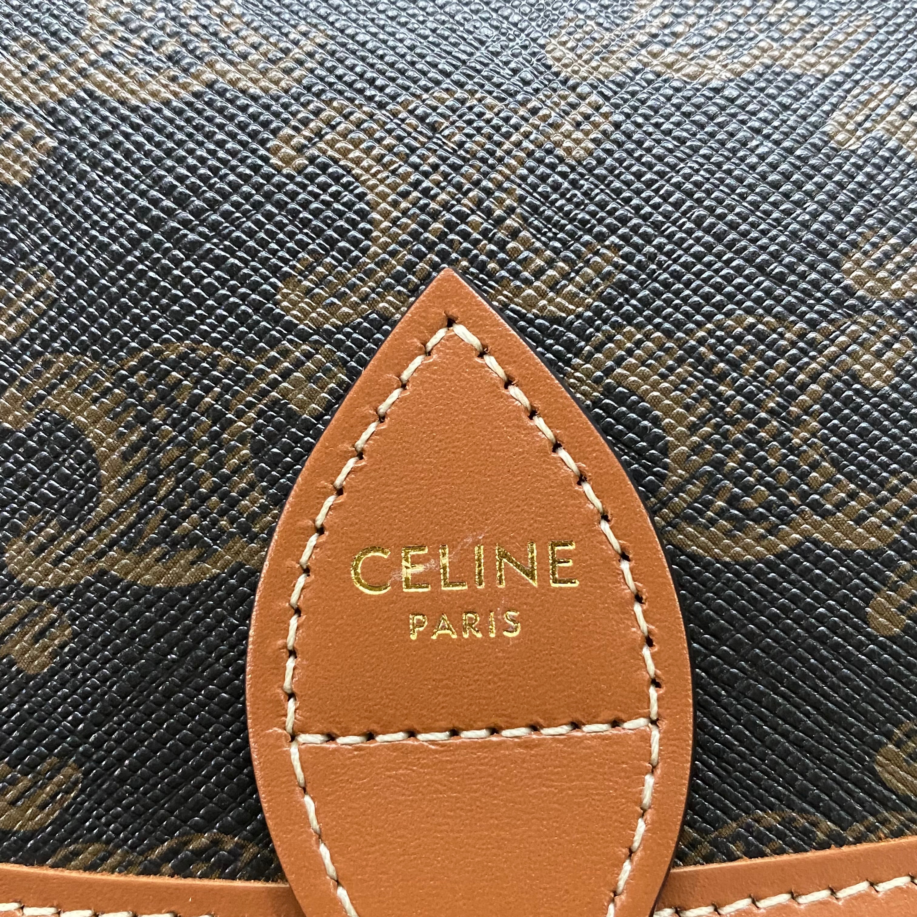 셀린느 트리옹프 캔버스 & 카프스킨 미디움 폴코백 탄