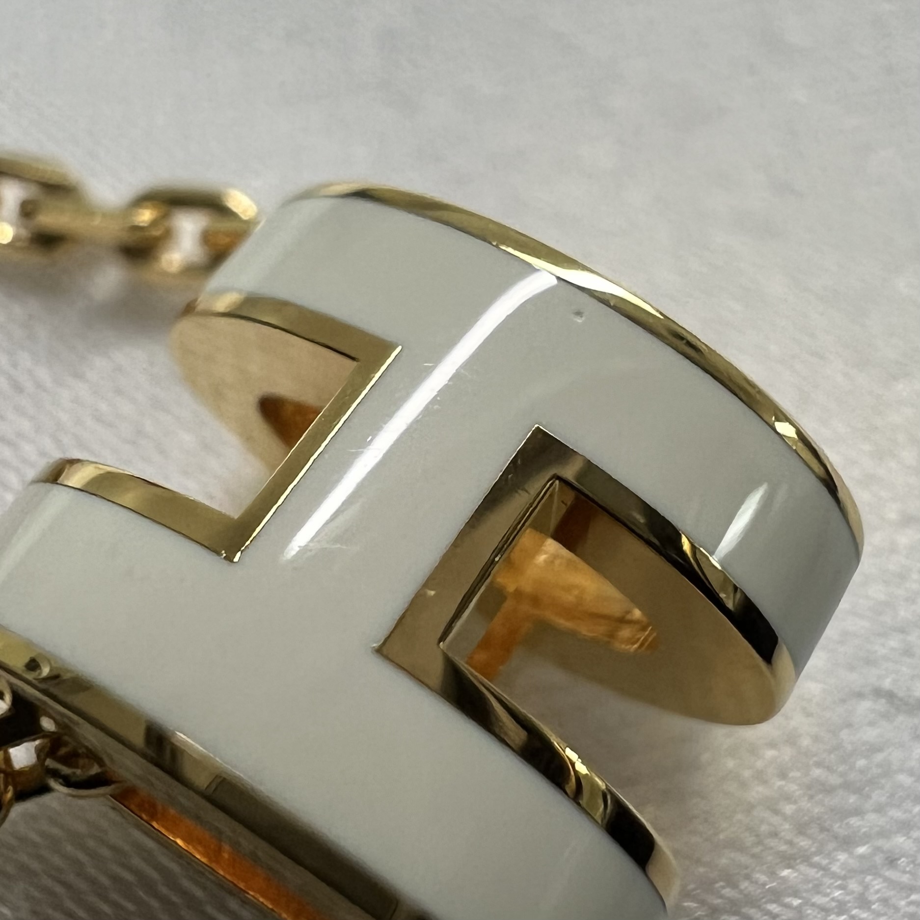 (W) Hermes Mini Pop H Pendant Gold & Blanc