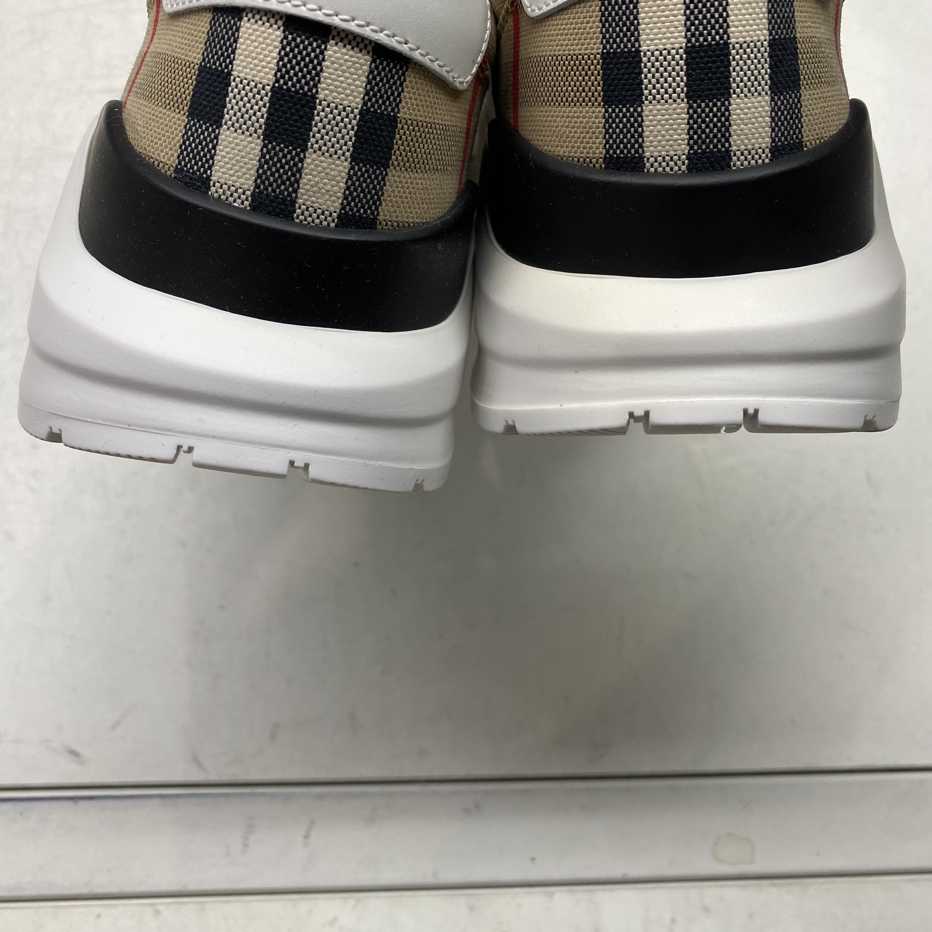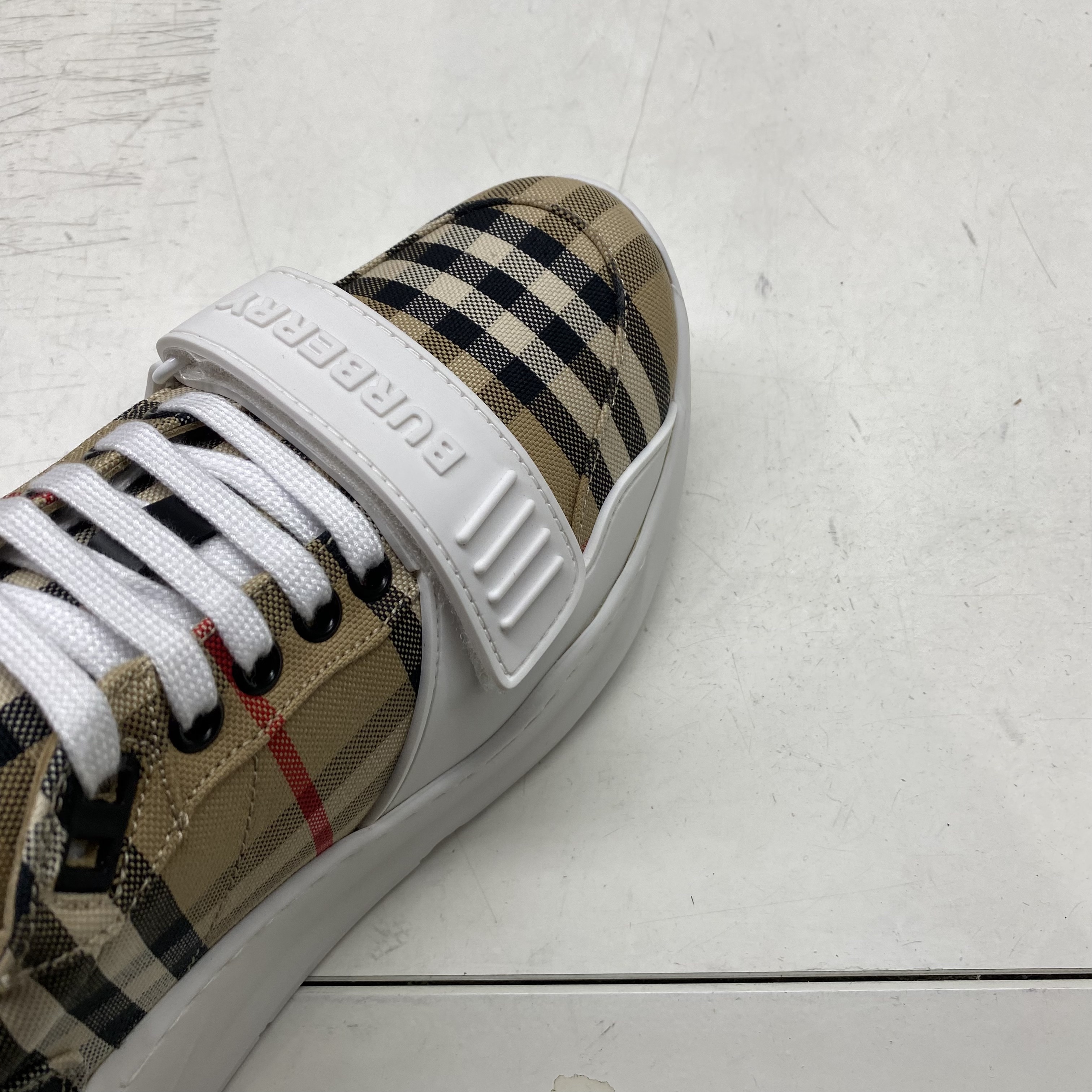 (W) Burberry Vintage Check Suede Leather Sneakers White Archive Beige