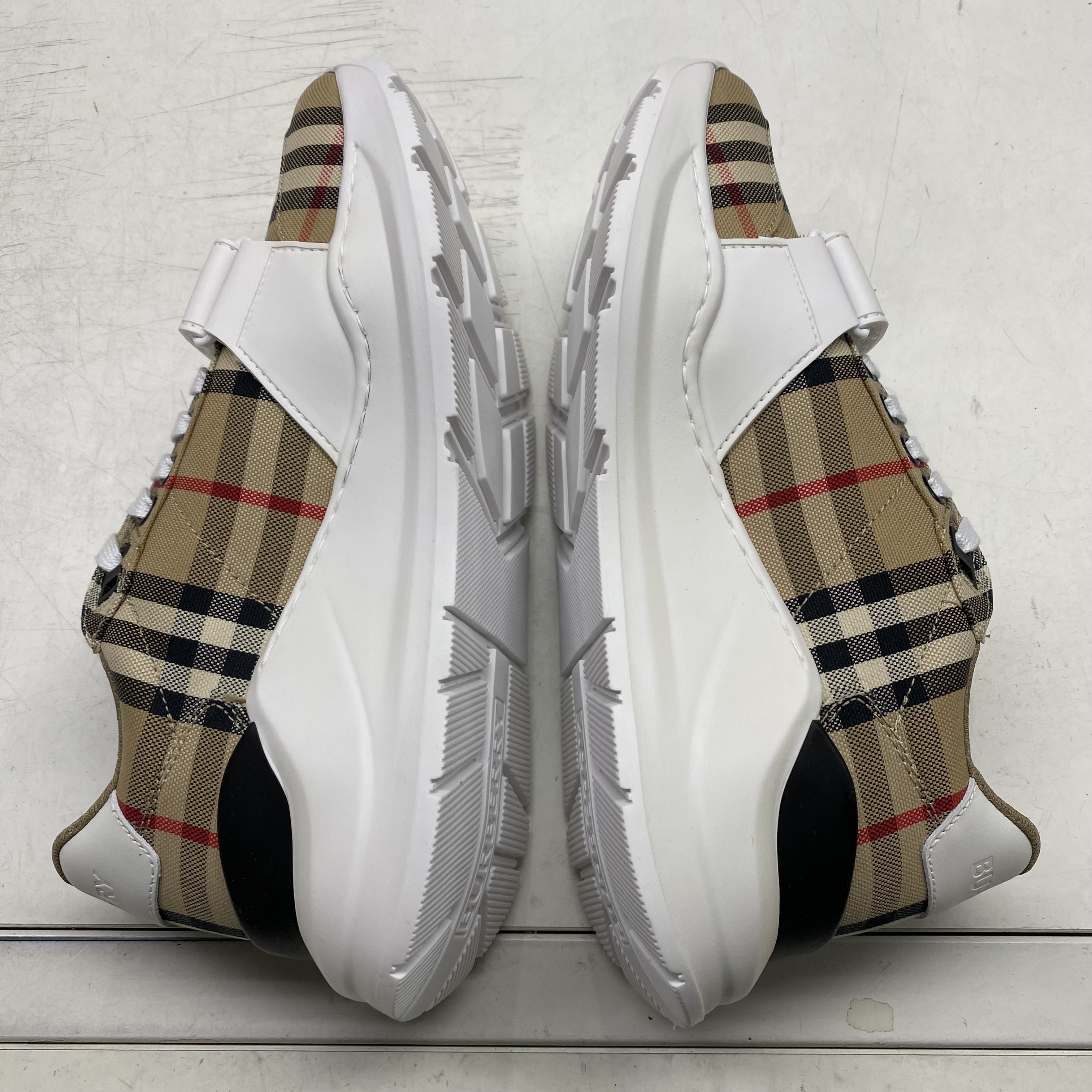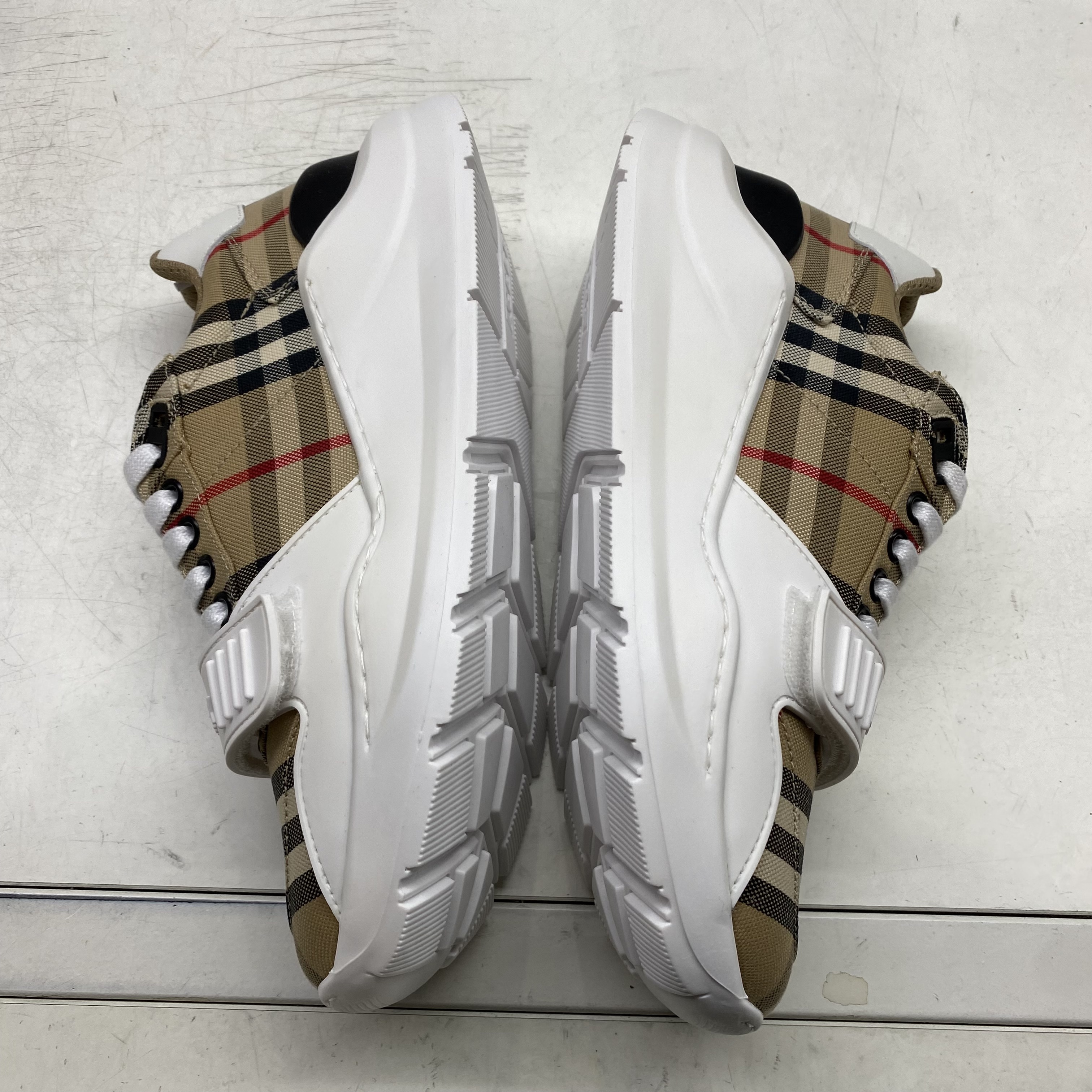 (W) 버버리 빈티지 체크 스웨이드 레더 스니커즈 화이트 아카이브 베이지