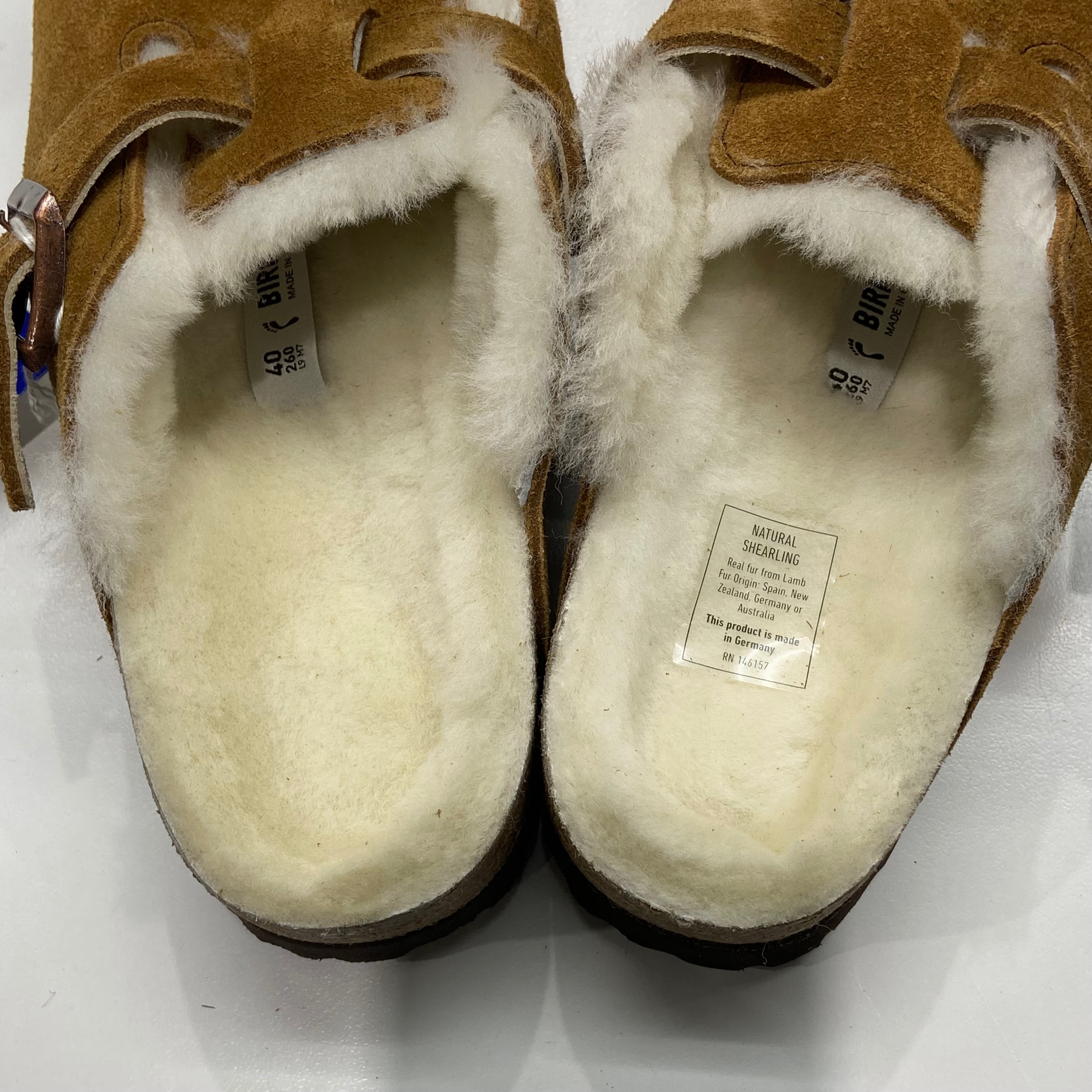 버켄스탁 보스턴 셔링 스웨이드 레더 밍크 - 내로우