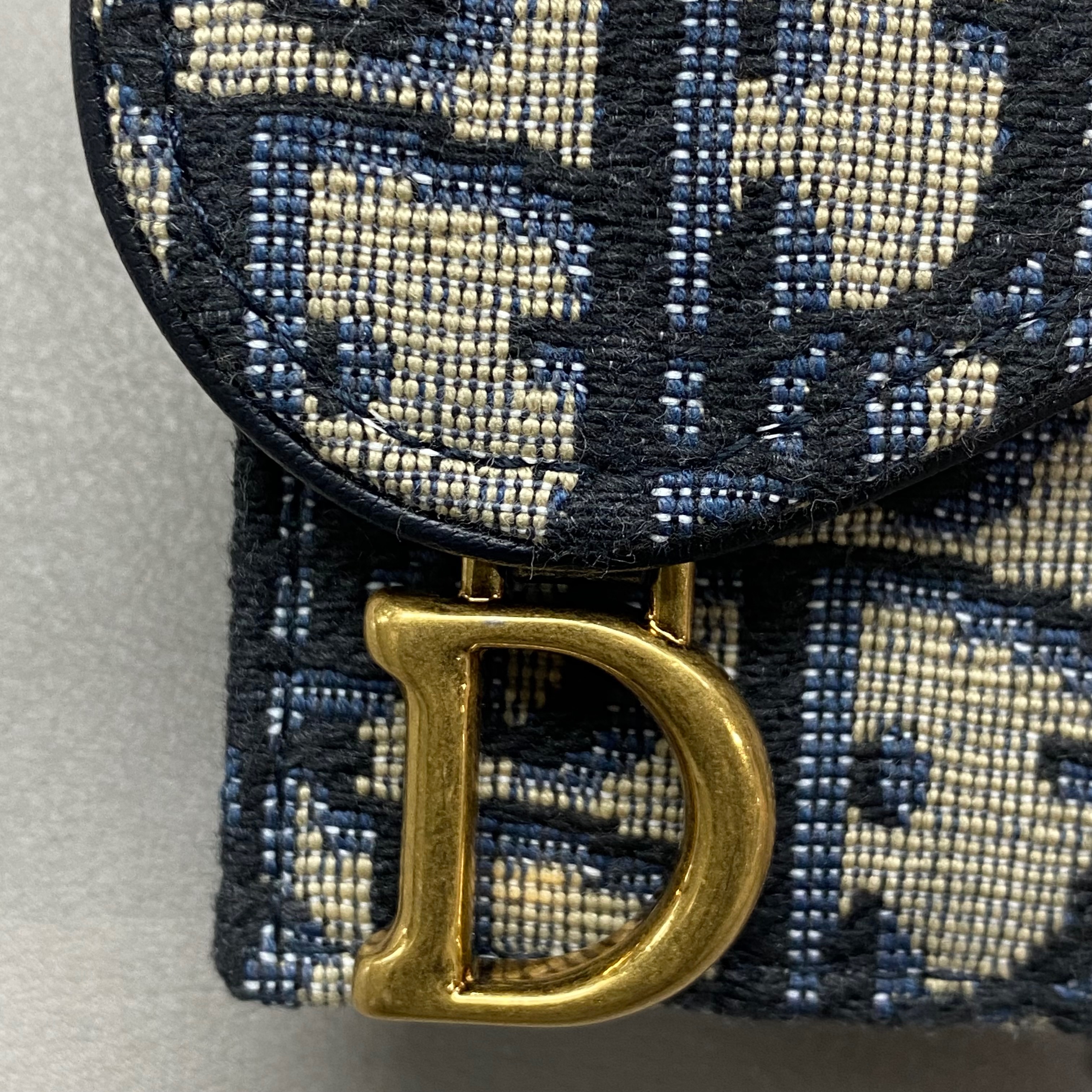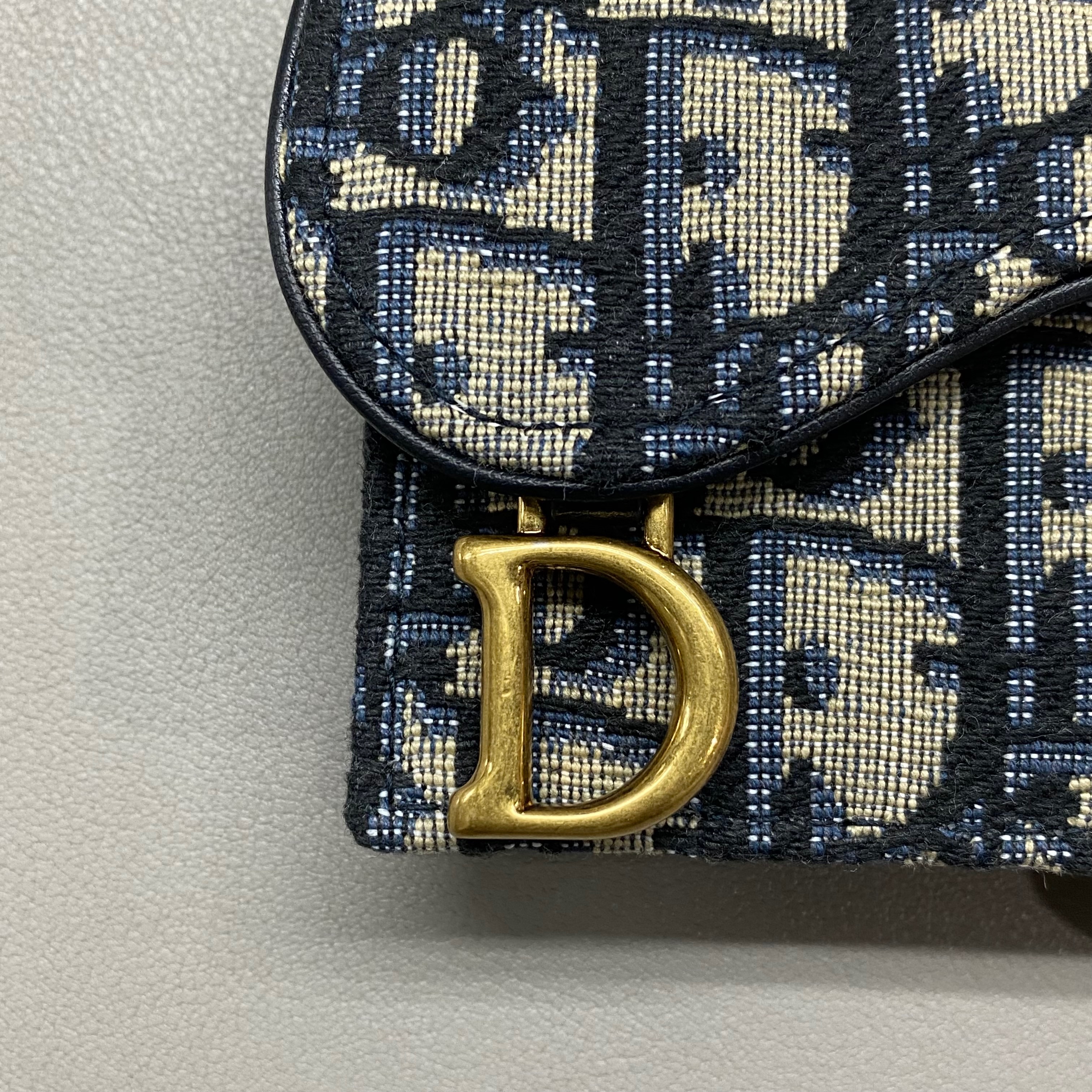 Dior Saddle Flap Card Holder Blue Dior Oblique Jacquard