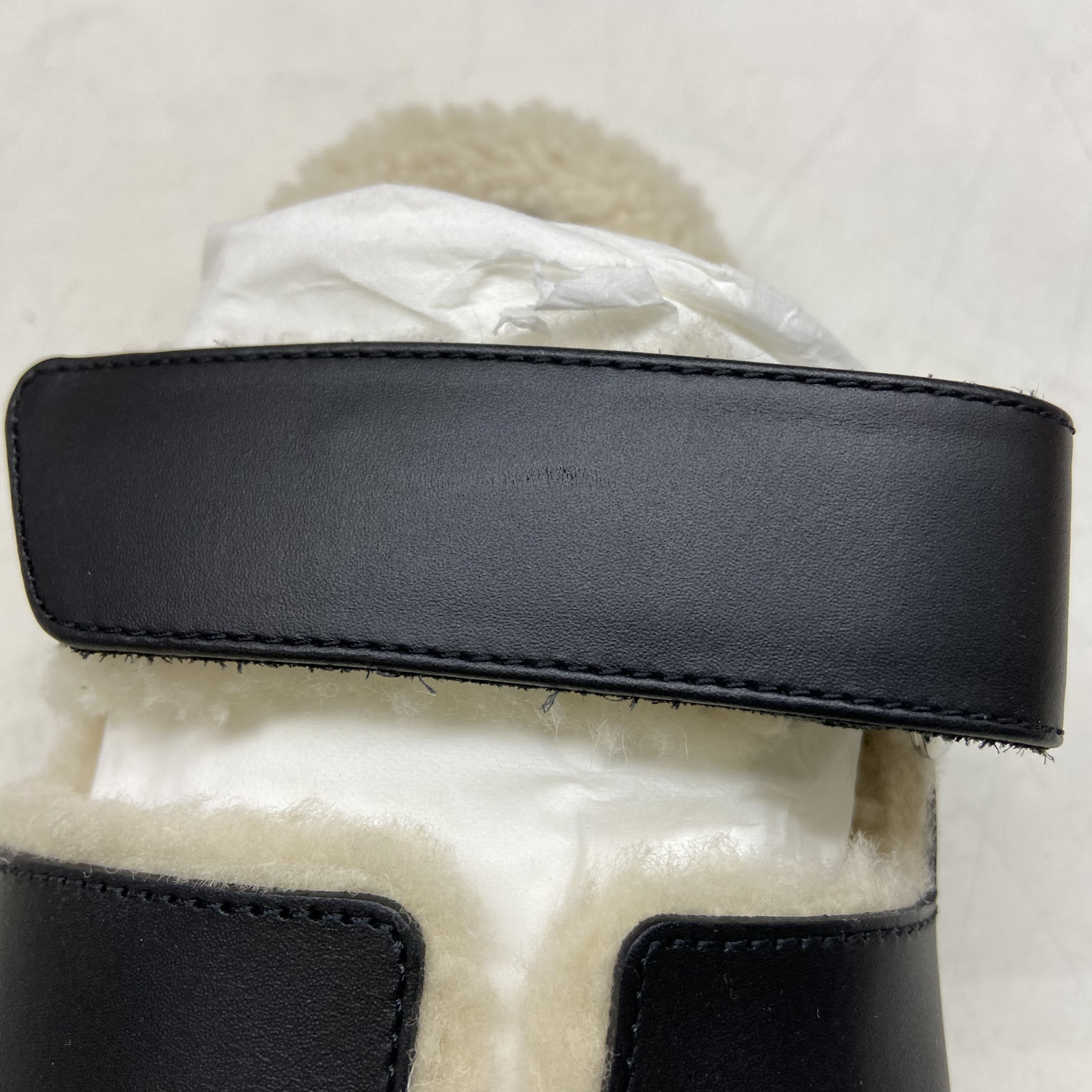 (W) Hermes Chypre Sandal Calfskin Woolskin & Noir Ecru