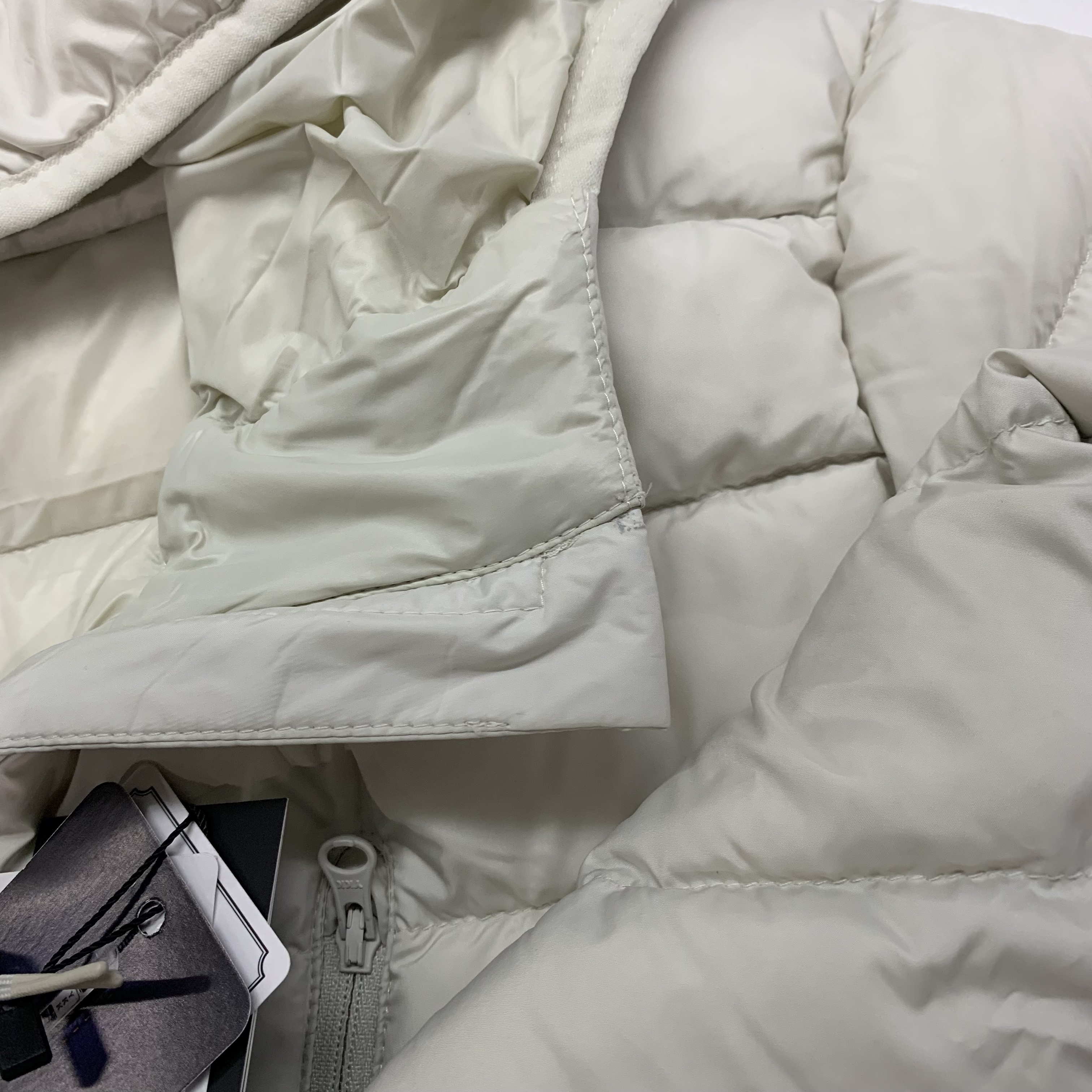 (W) 무신사 스탠다드 시티 레저 후디드 라이트 다운 재킷 스톤 화이트