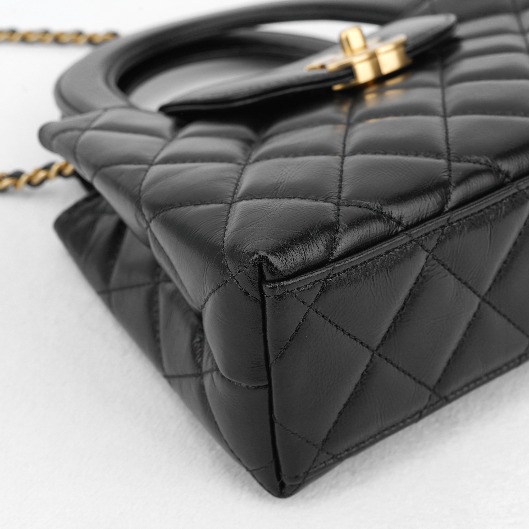 샤넬 미니 쇼핑백 샤이니 빈티지 카프스킨 & 골드 메탈 블랙