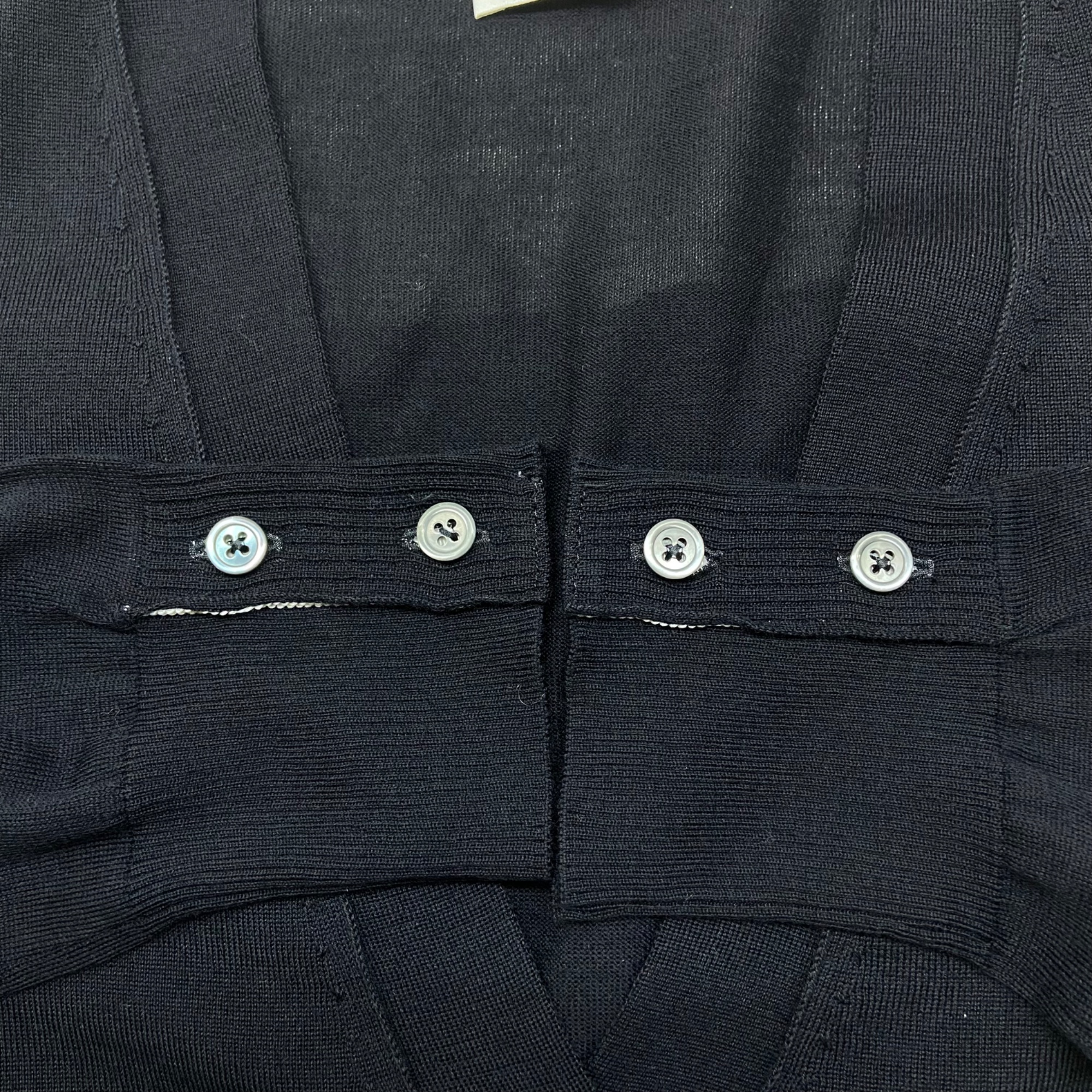 (W) 톰브라운 서스테이너블 파인 메리노 울 사선 릴렉스 핏 브이넥 가디건 네이비