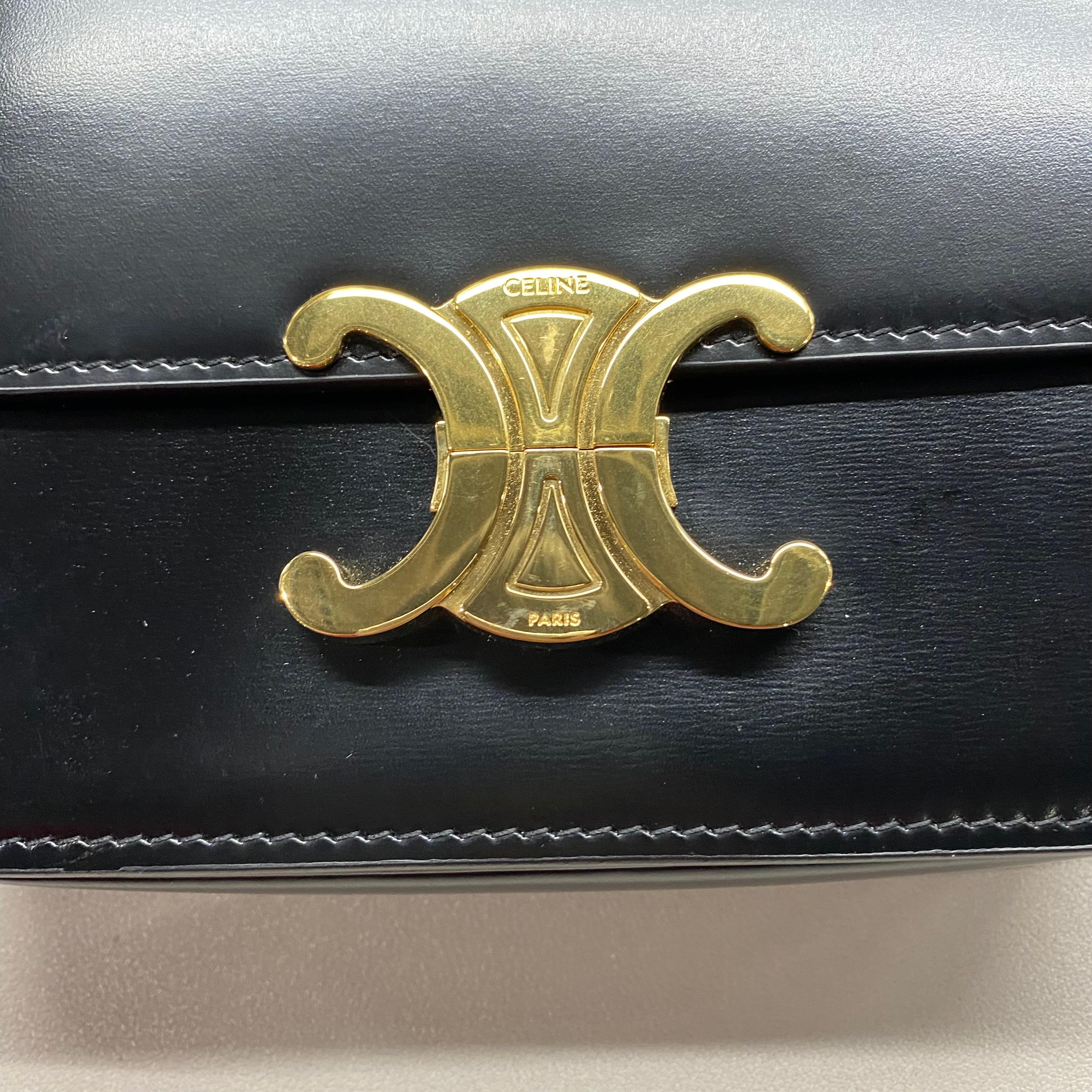 셀린느 샤이니 카프스킨 틴 트리옹프 백 블랙