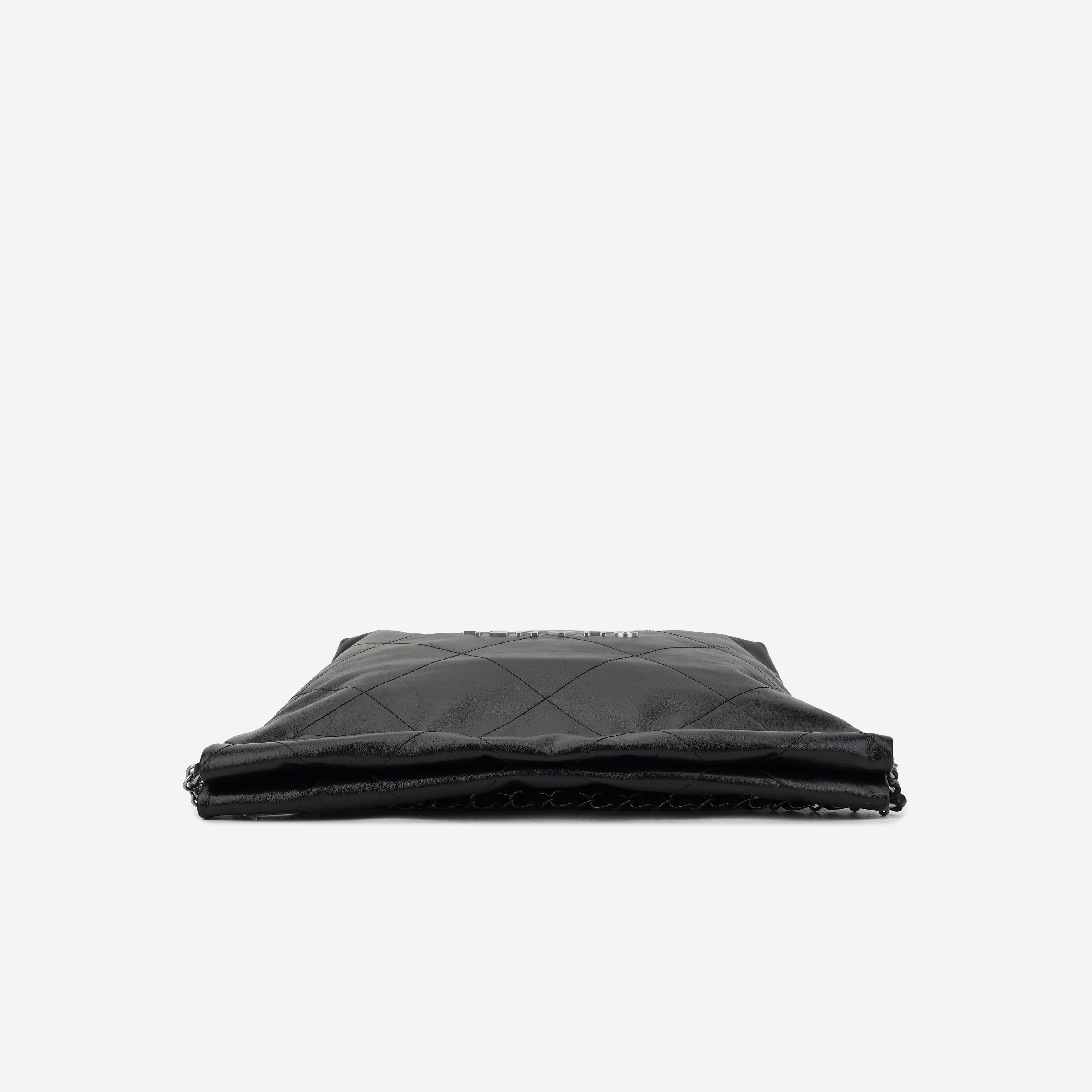 샤넬 22 스몰 핸드백 샤이니 카프스킨 & 실버 메탈 블랙