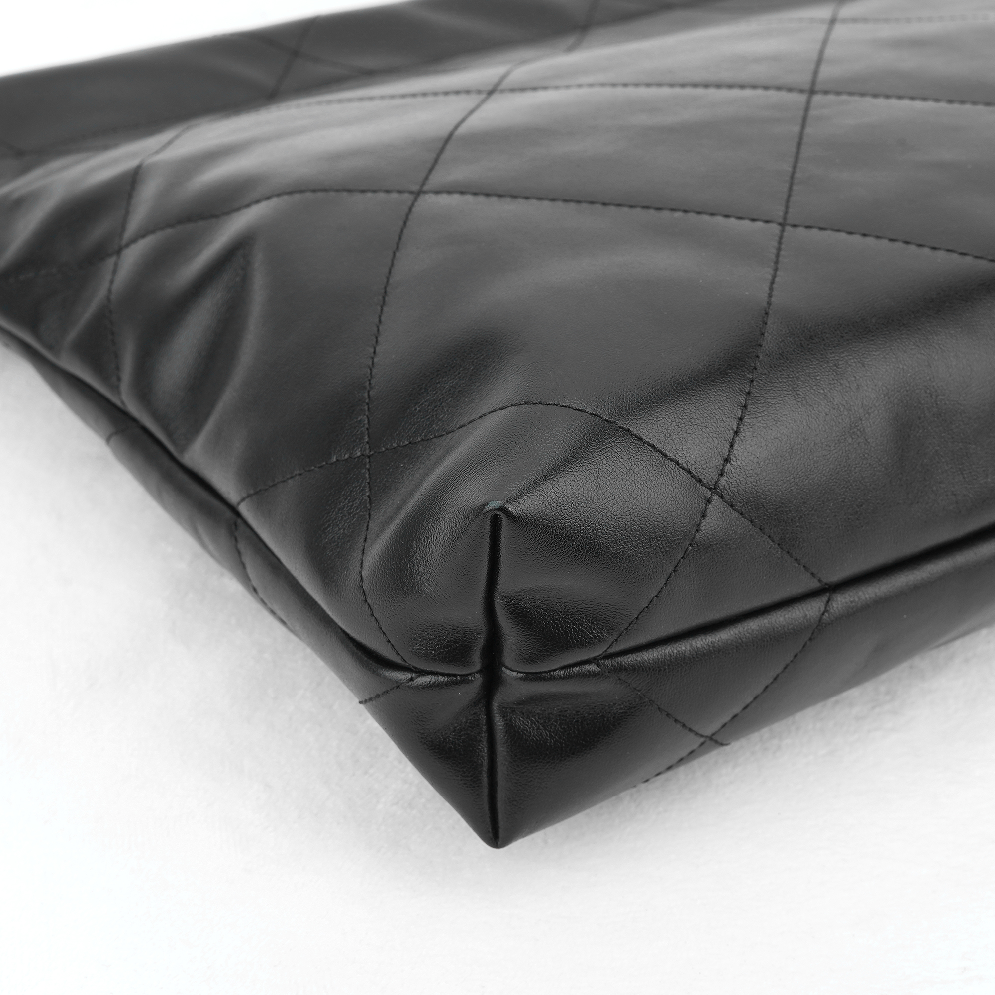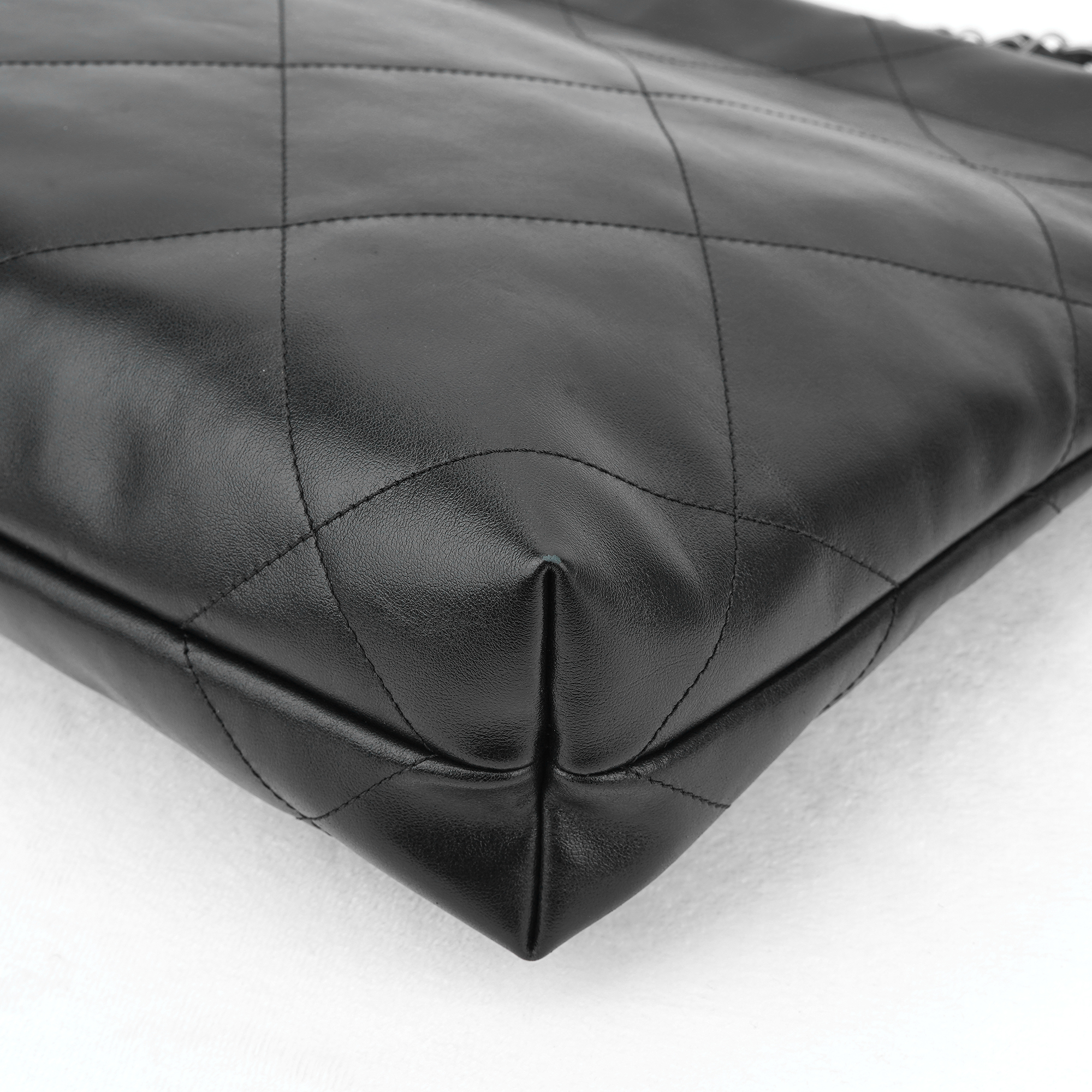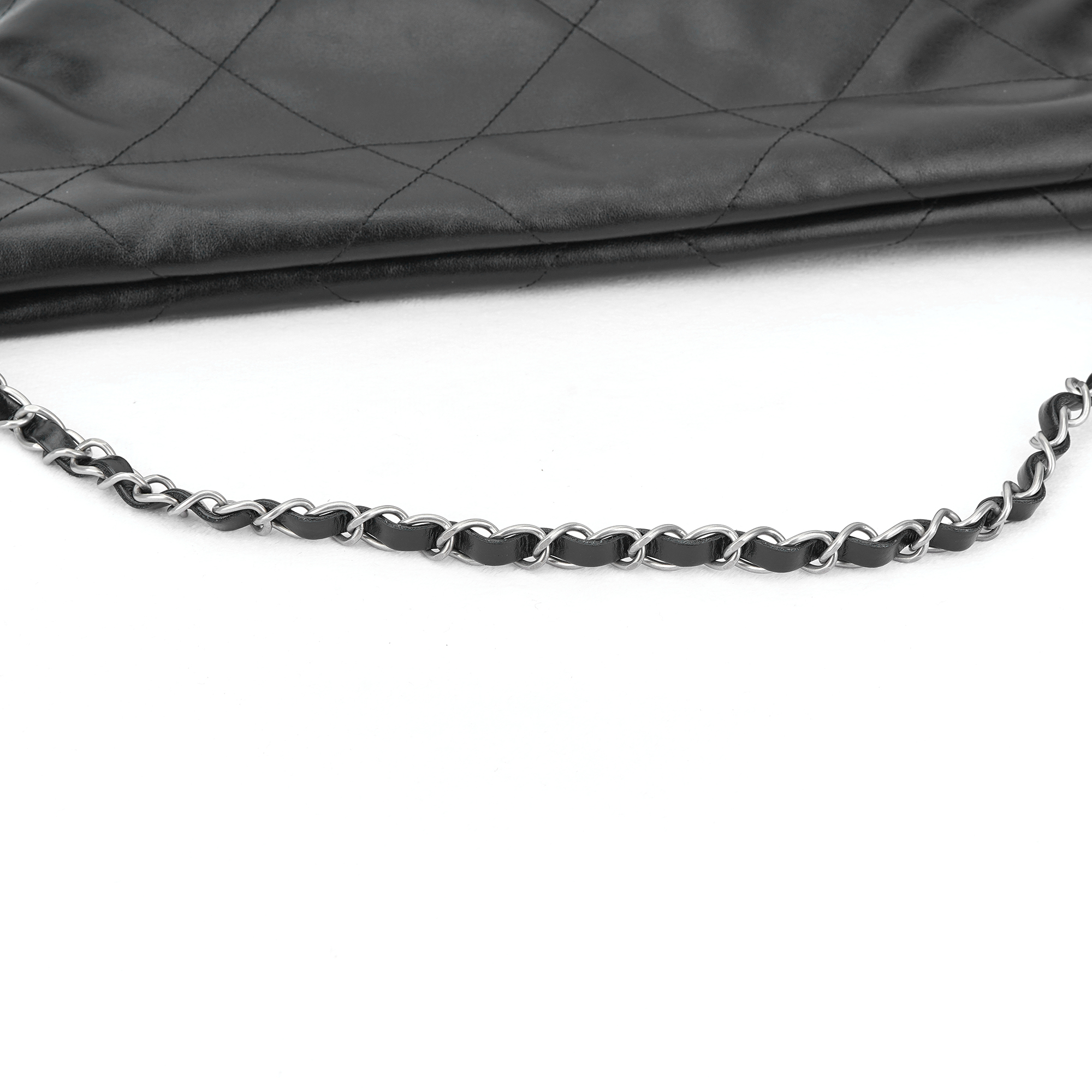 샤넬 22 스몰 핸드백 샤이니 카프스킨 & 실버 메탈 블랙