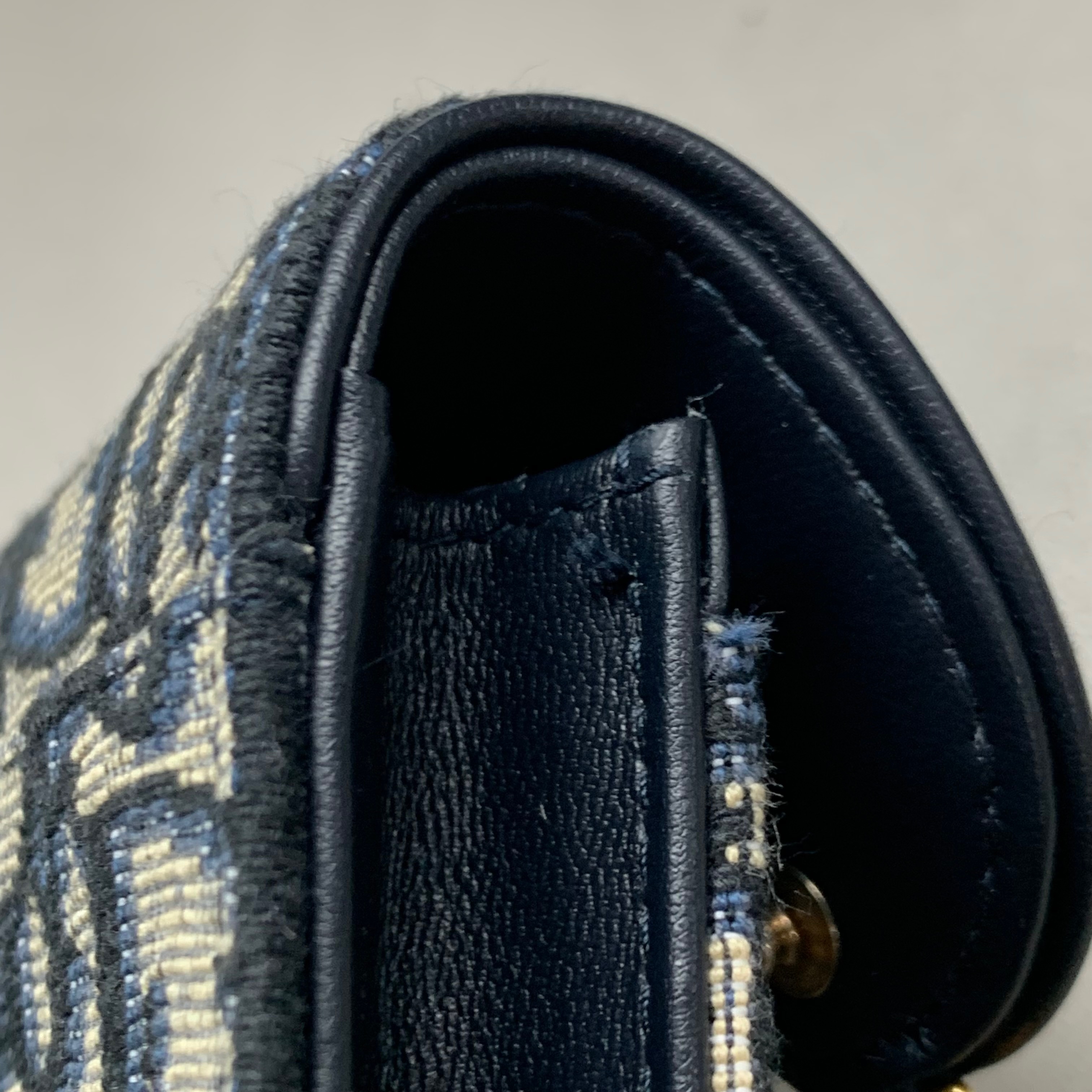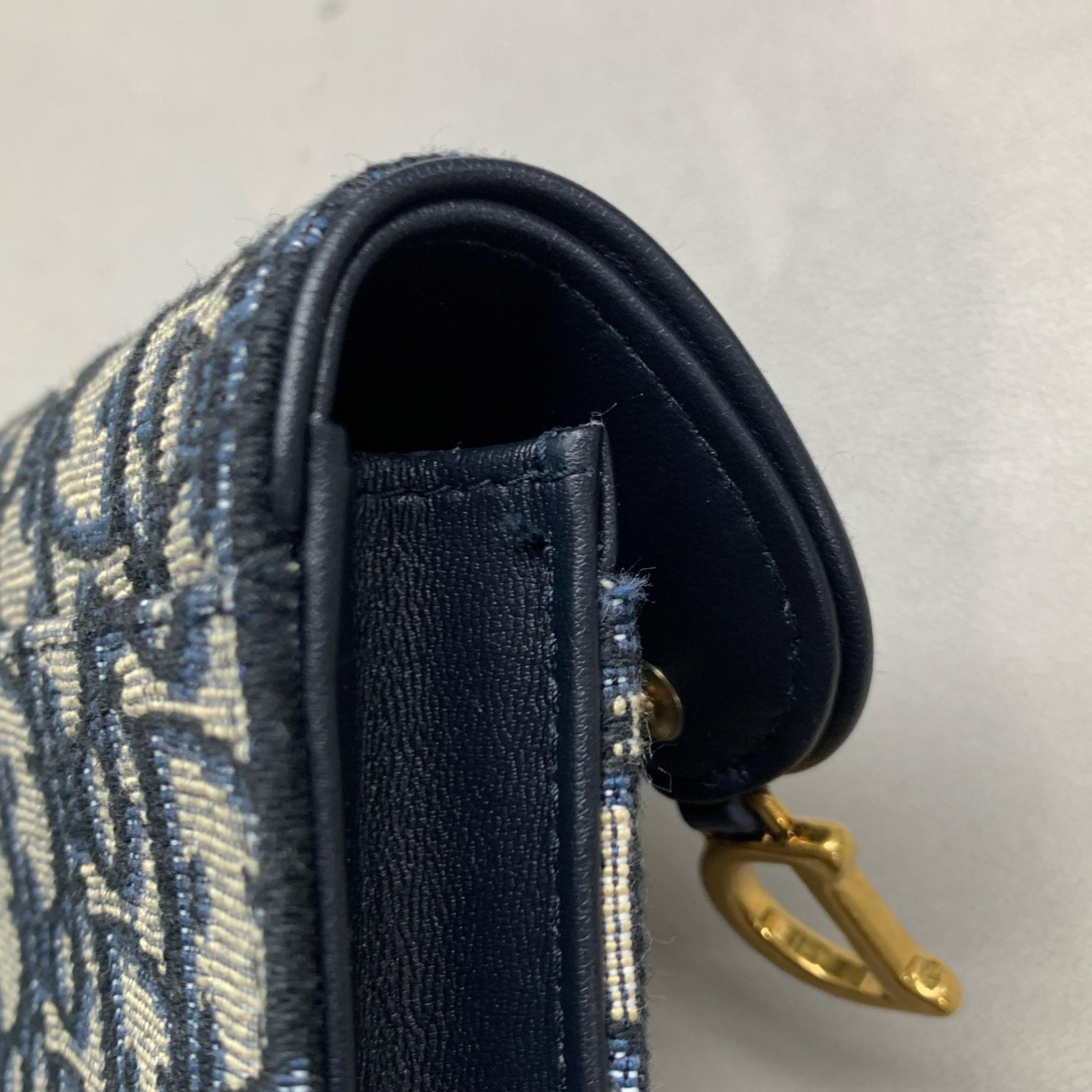 디올 새들 플랩 카드 홀더 블루 디올 오블리크 자카드