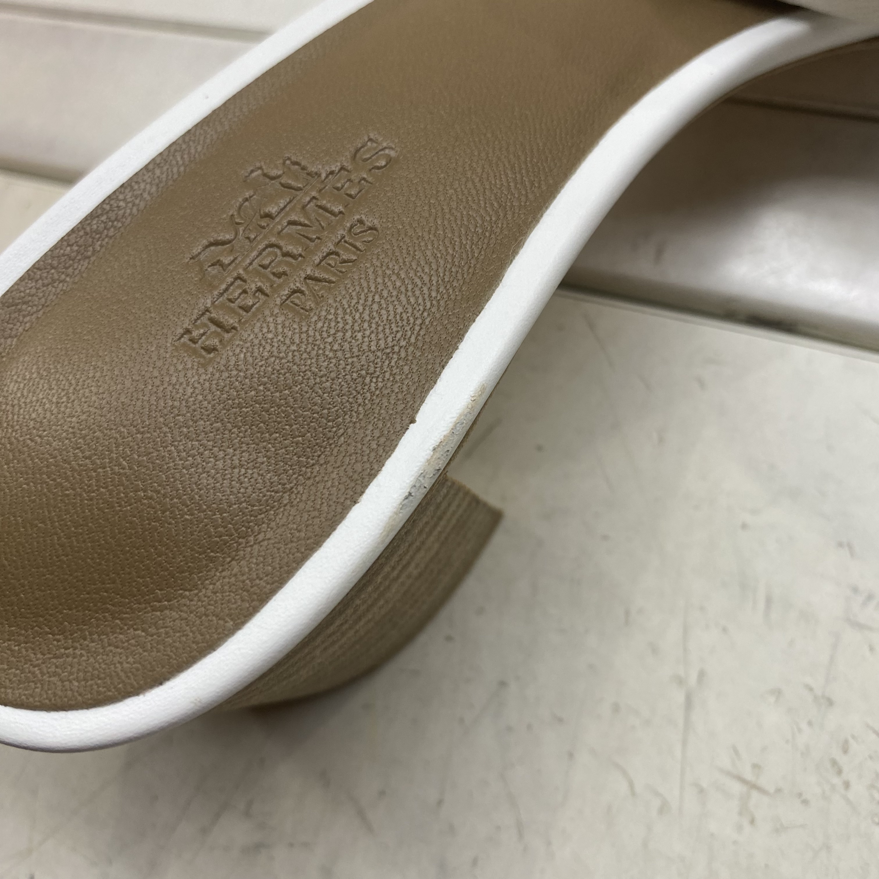 (W) Hermes Oasis Sandal Calfskin & Blanc Piqures Havane