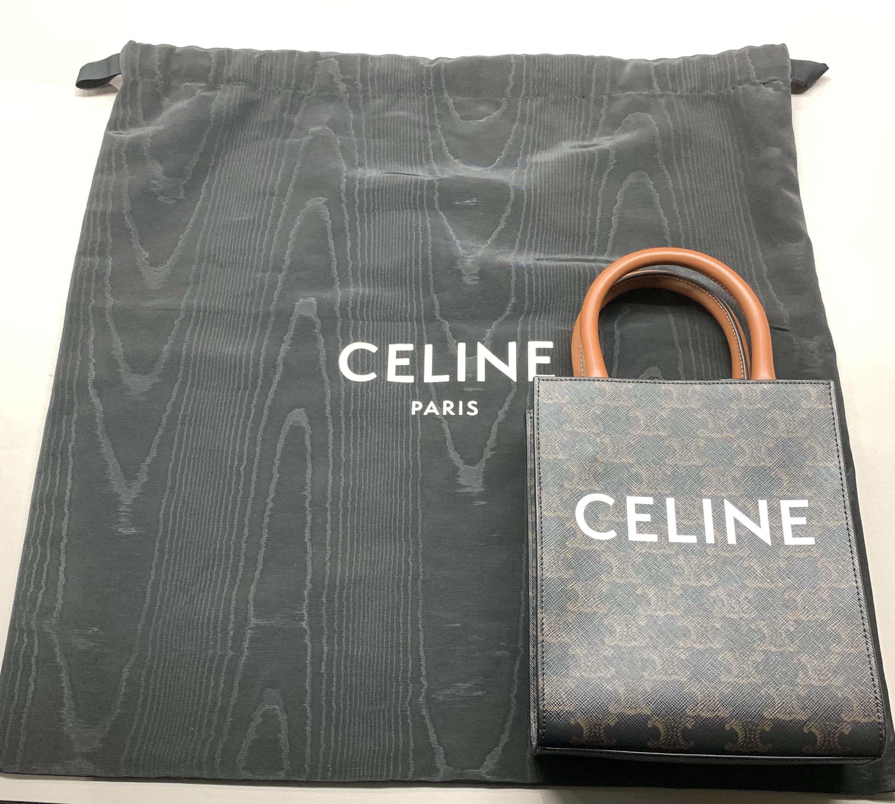 셀린느 트리옹프 캔버스 & 셀린느 프린트 카프스킨 미니 버티컬 카바스 탄