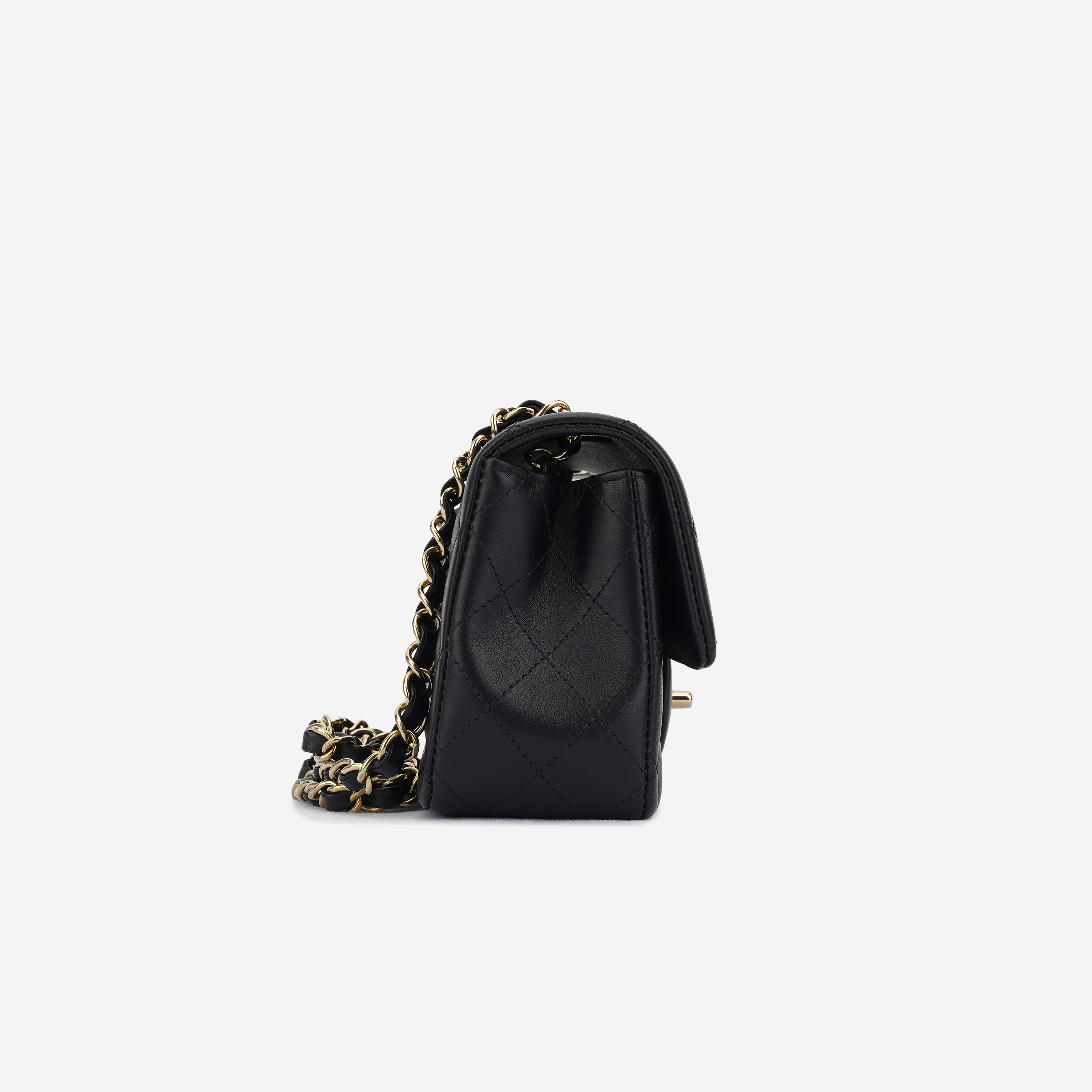 샤넬 미니 플랩백 램스킨 & 골드 메탈 블랙