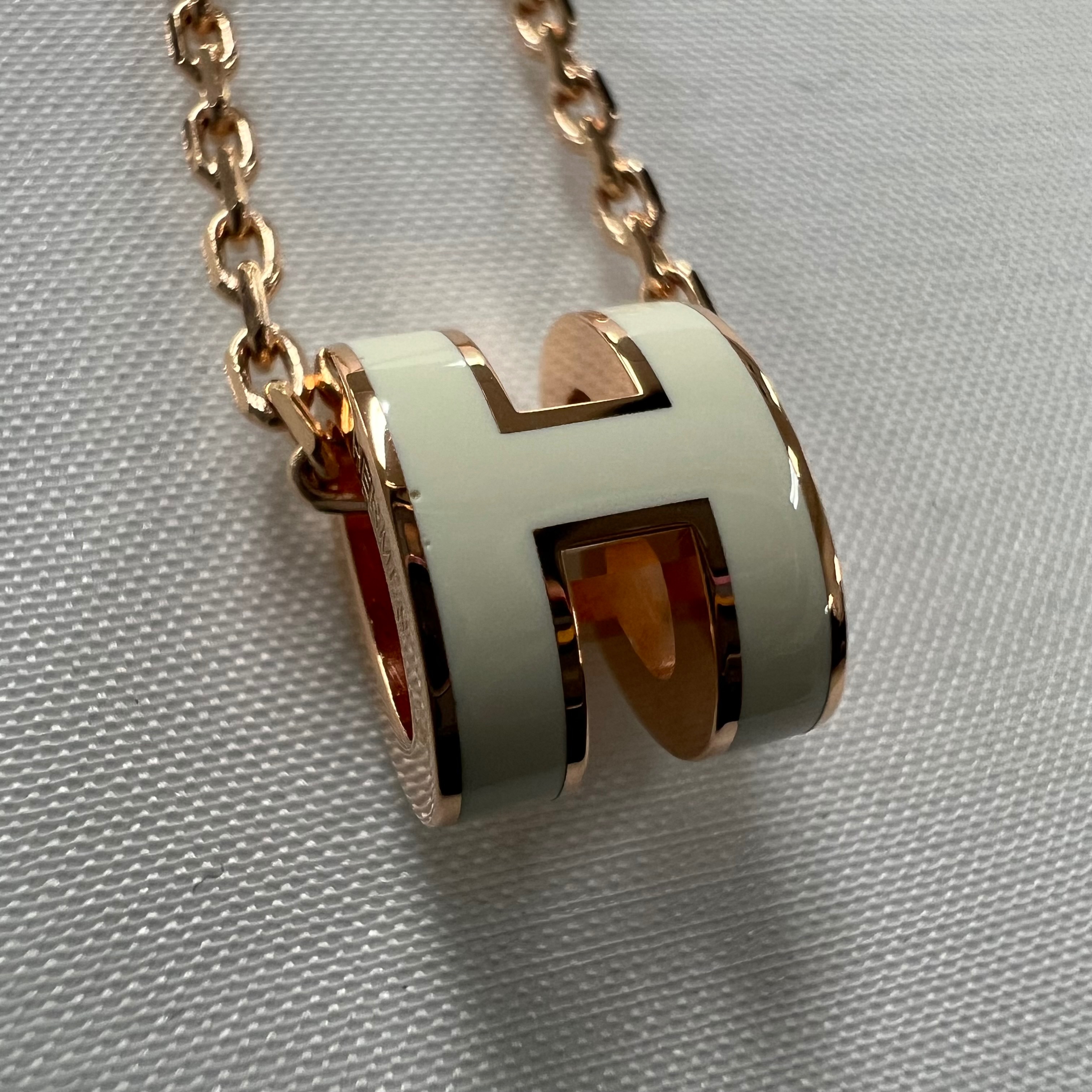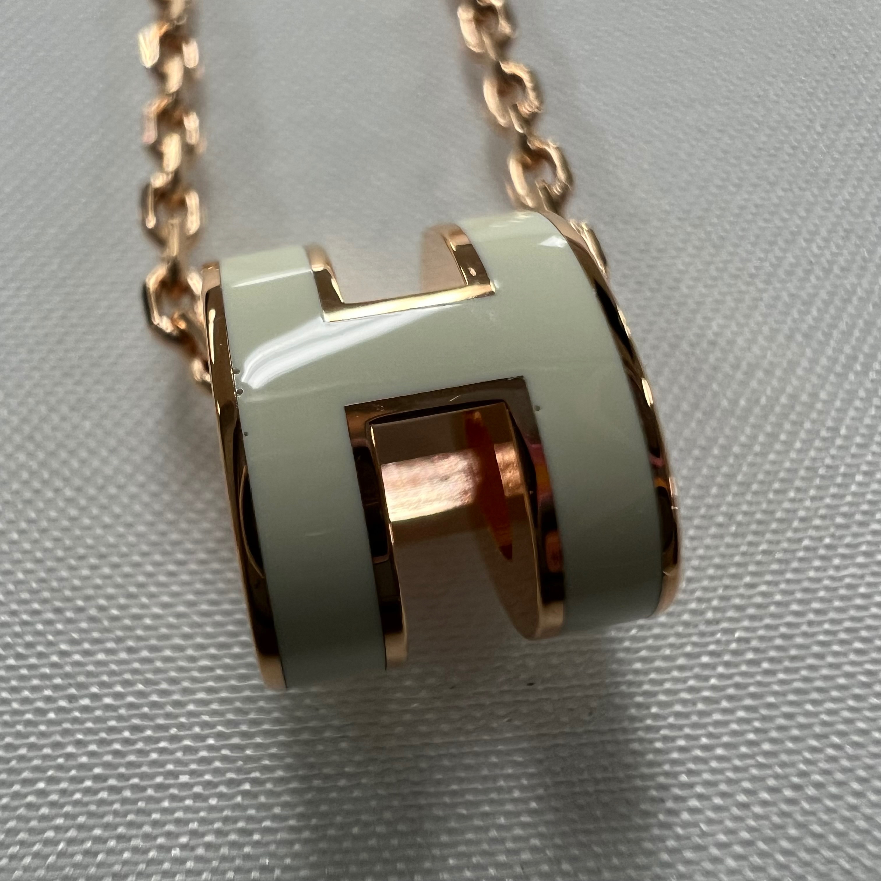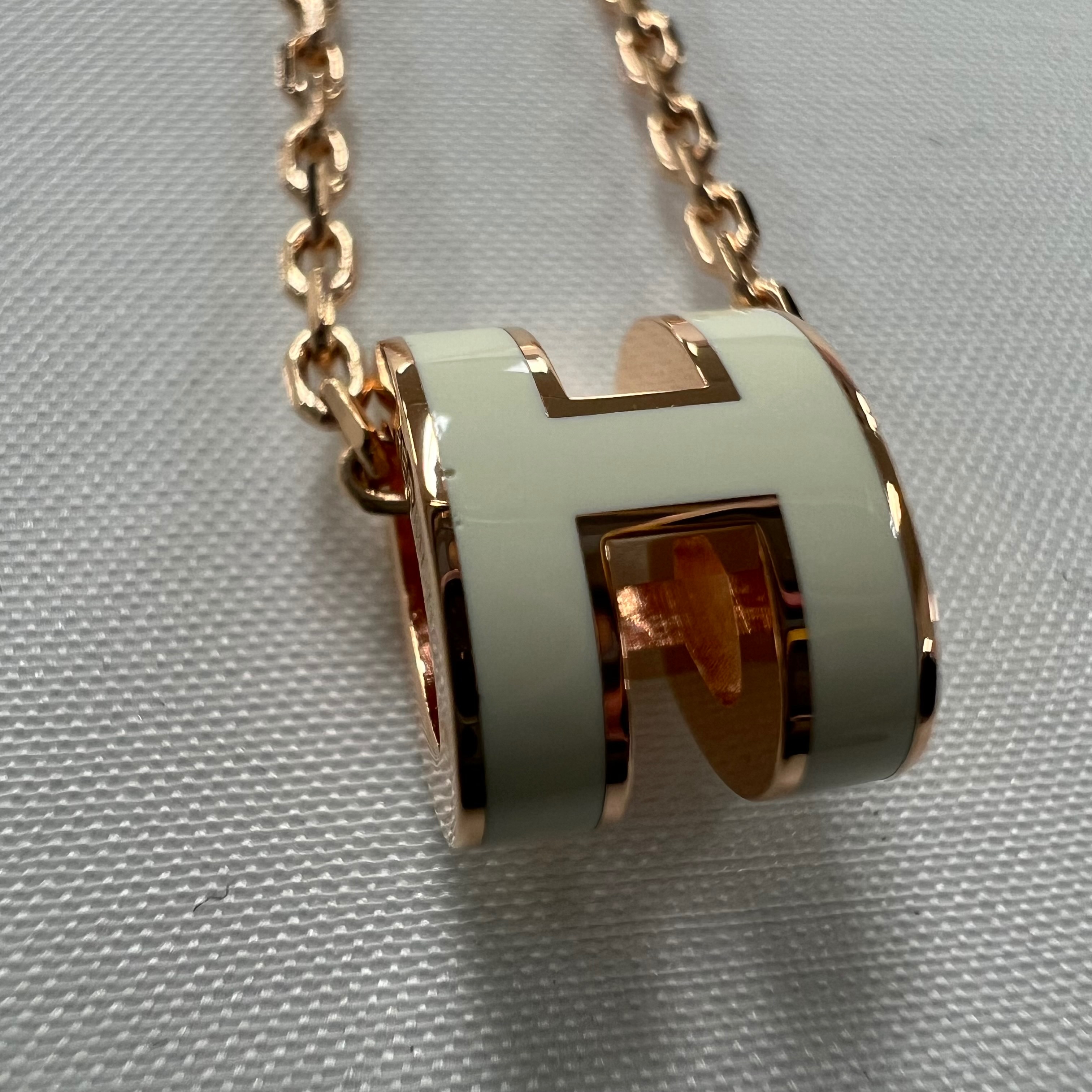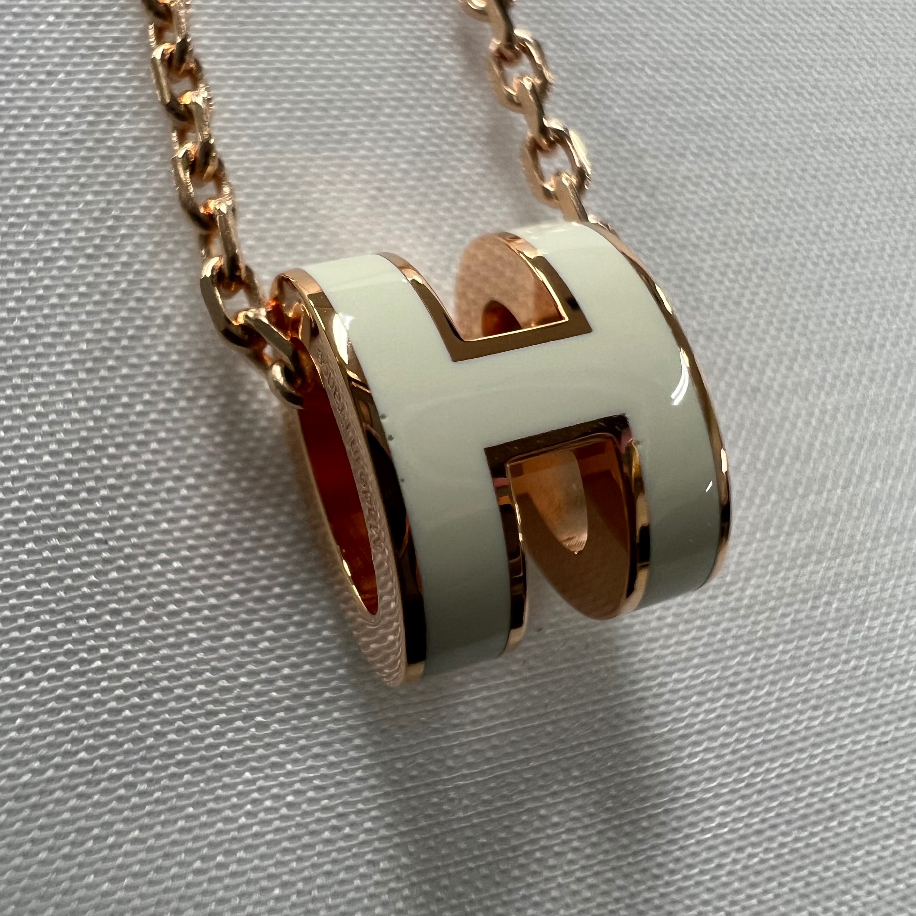 (W) Hermes Mini Pop H Pendant Rose Gold & Blanc