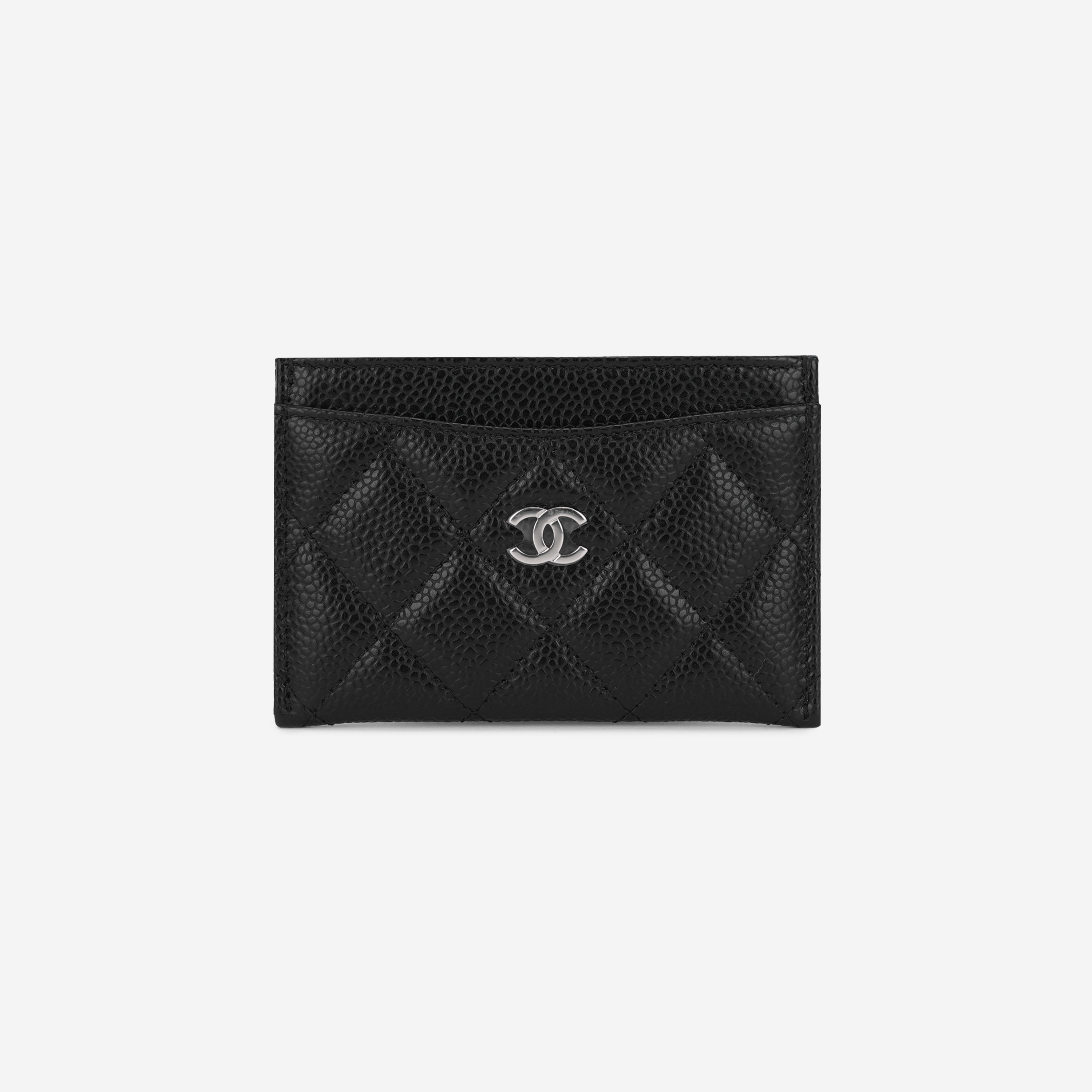 샤넬 클래식 카드 홀더 그레인드 카프스킨 & 실버 메탈 블랙