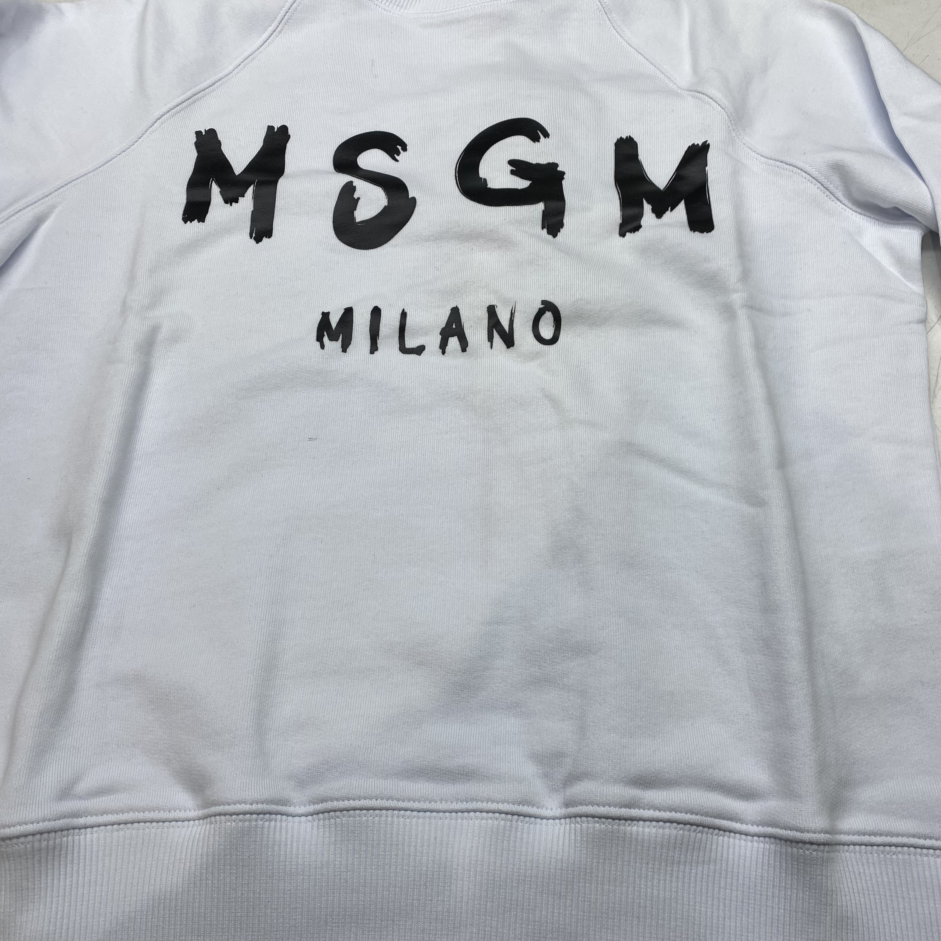 (W) 엠에스지엠 브러쉬드 로고 코튼 크루넥 스웨트셔츠 화이트