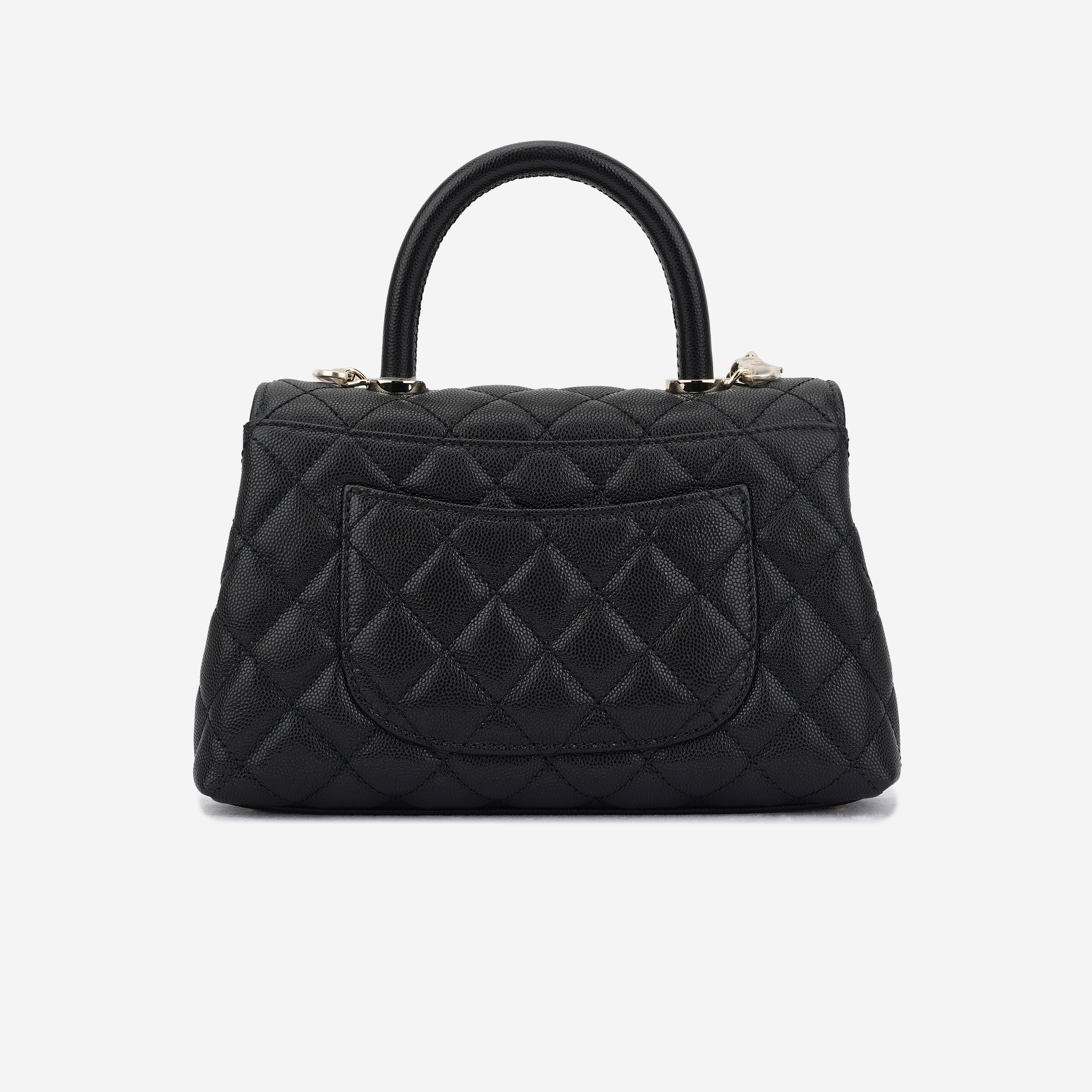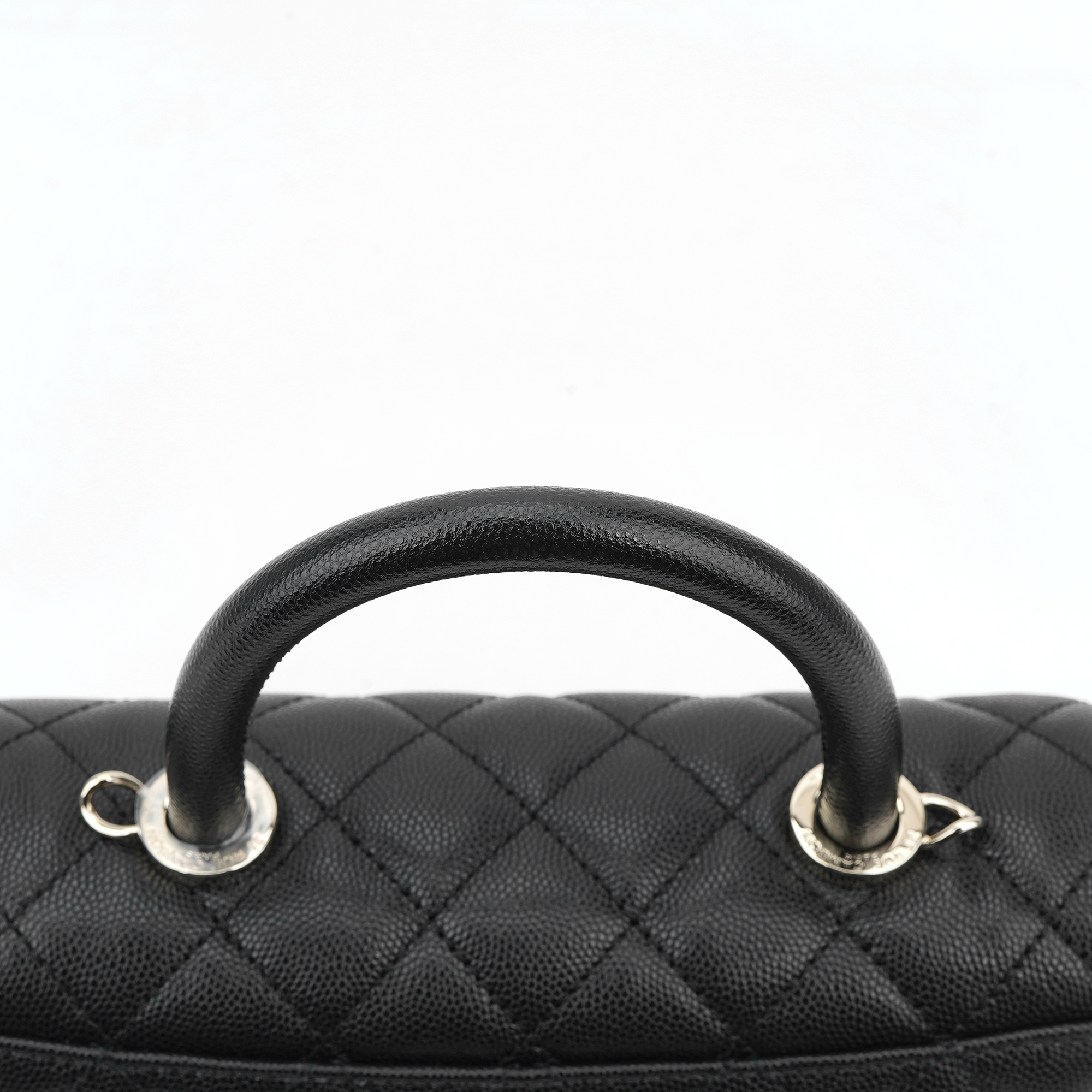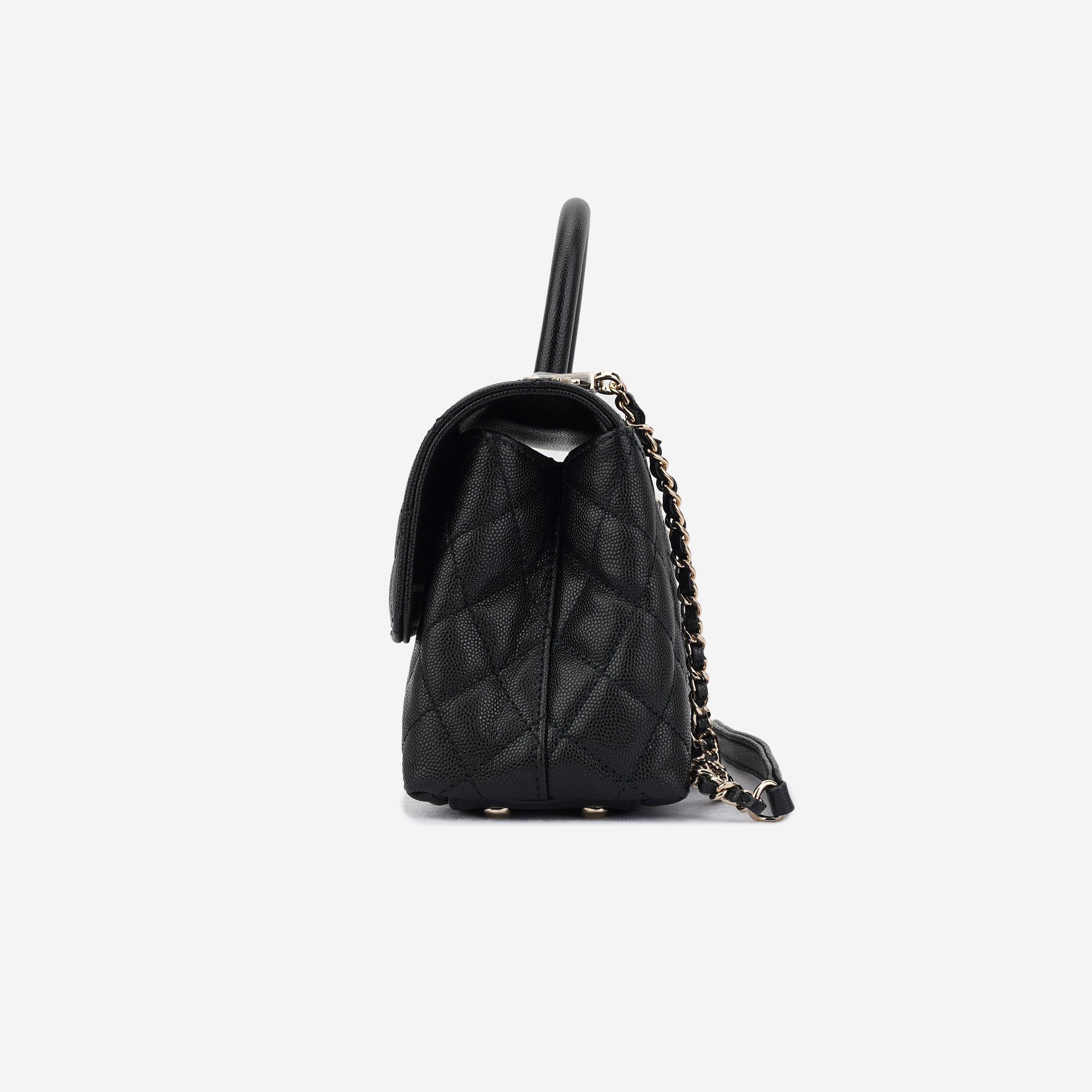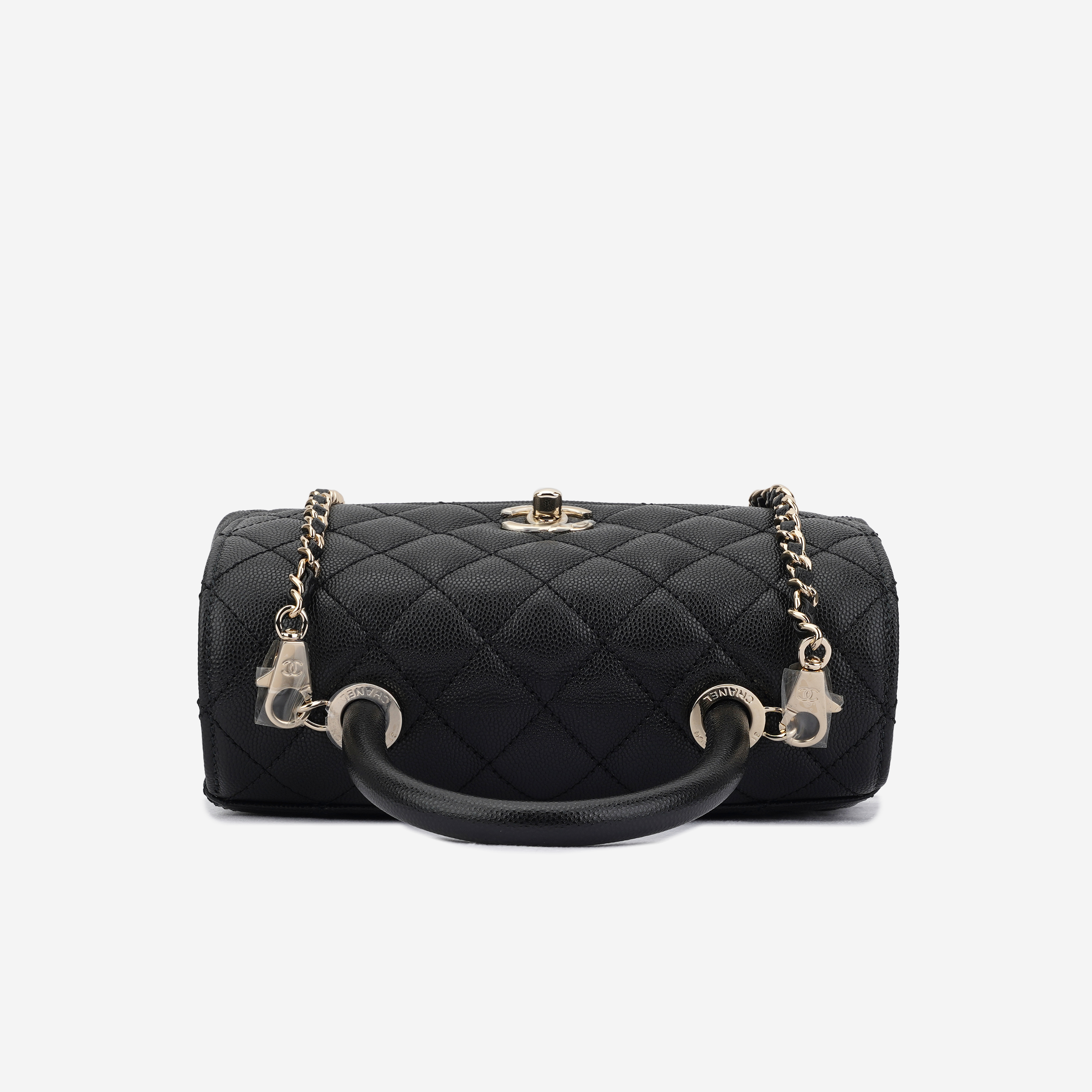 샤넬 핸들 장식의 플랩백 그레인드 카프스킨 & 골드 메탈 블랙