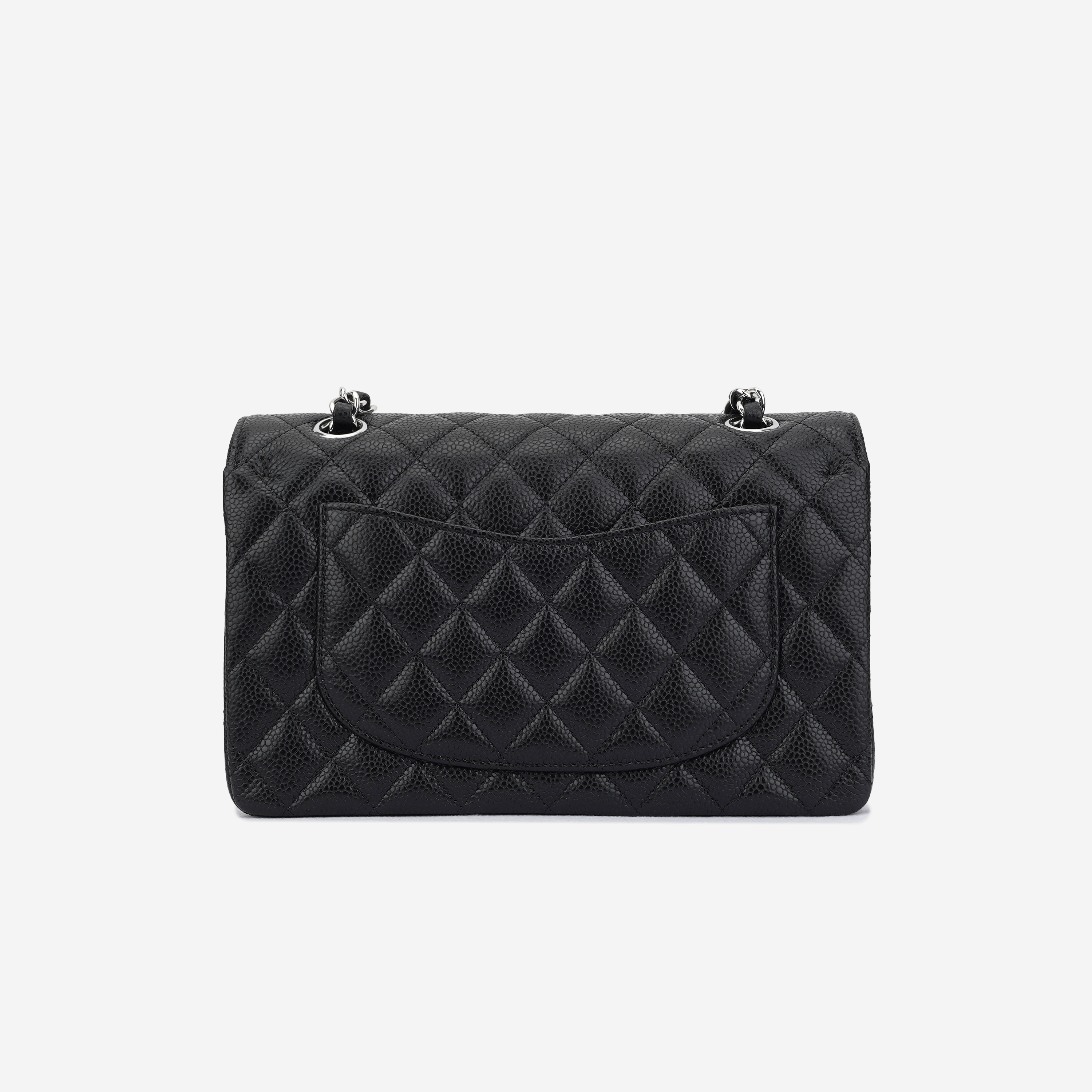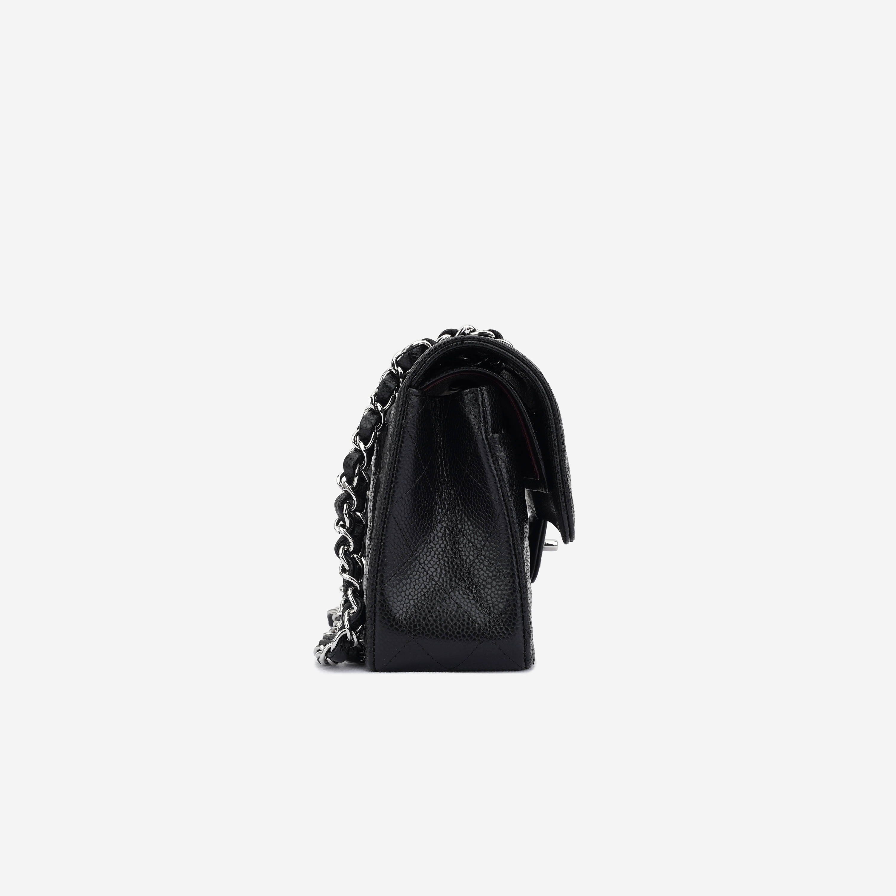 샤넬 클래식 스몰 플랩백 그레인드 카프스킨 & 실버 메탈 블랙