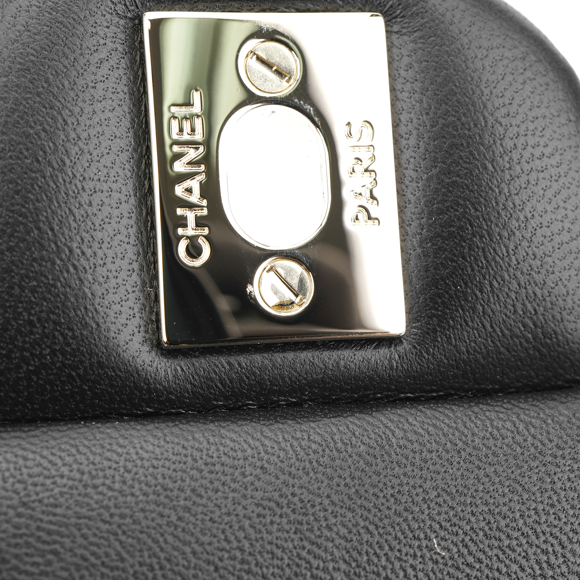 샤넬 핸들 장식의 미니 플랩백 램스킨 & 골드 메탈 블랙