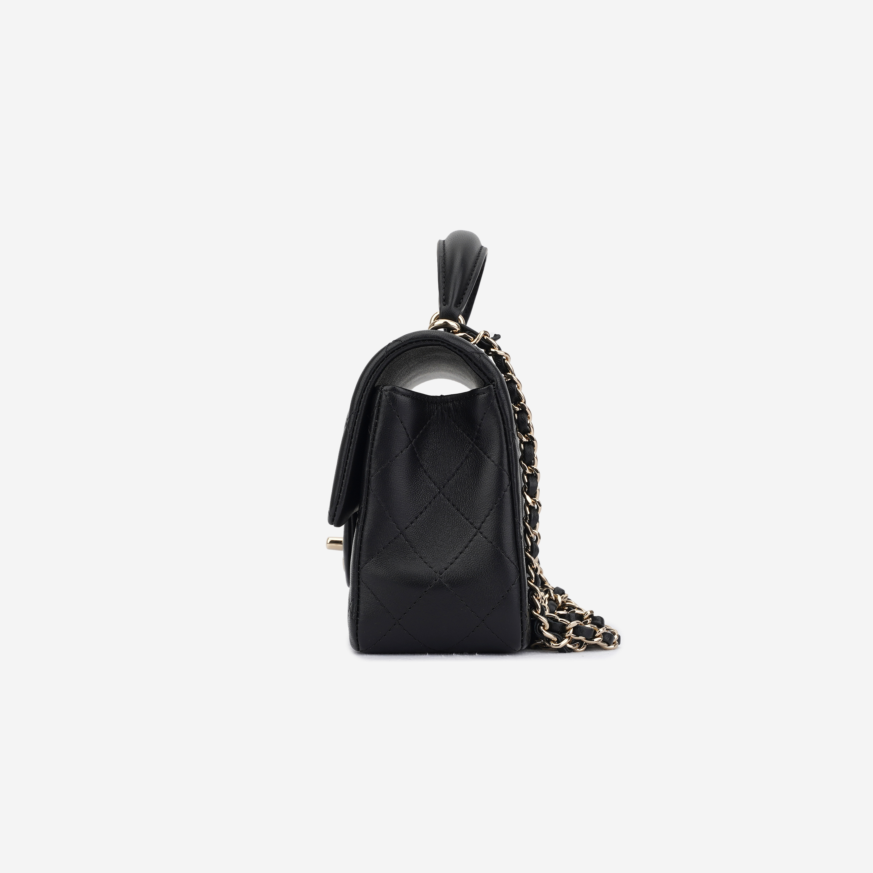 Chanel Mini Flap Bag with Top Handle Lambskin & Gold Black