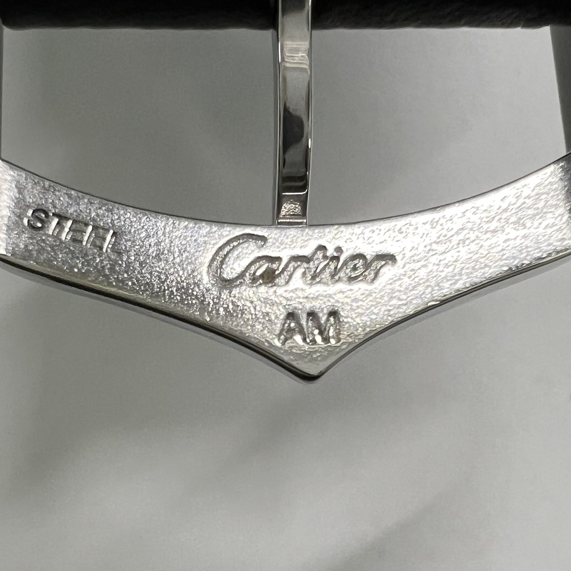 까르띠에 탱크 머스트 워치 라지 쿼츠 스틸 카프스킨 블랙