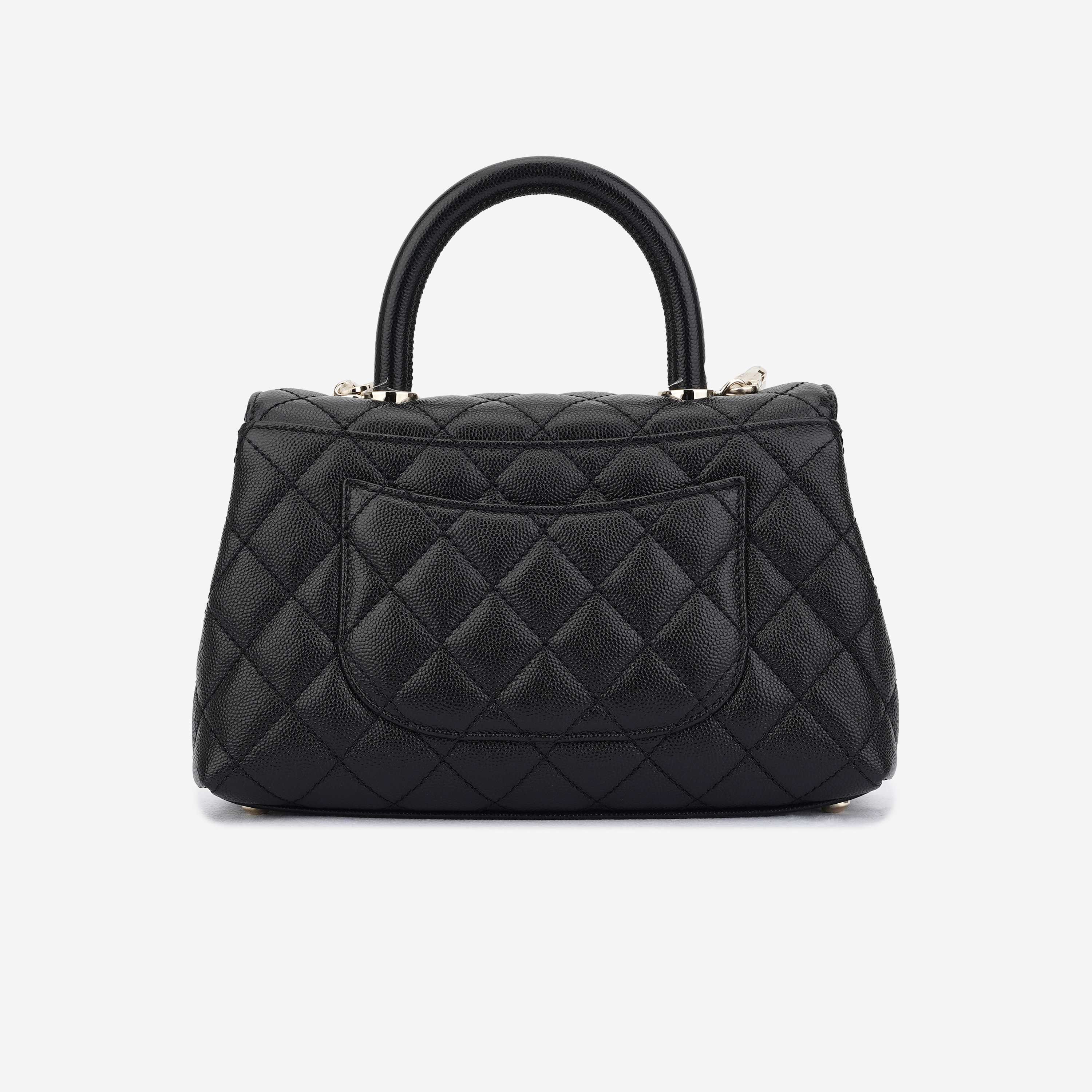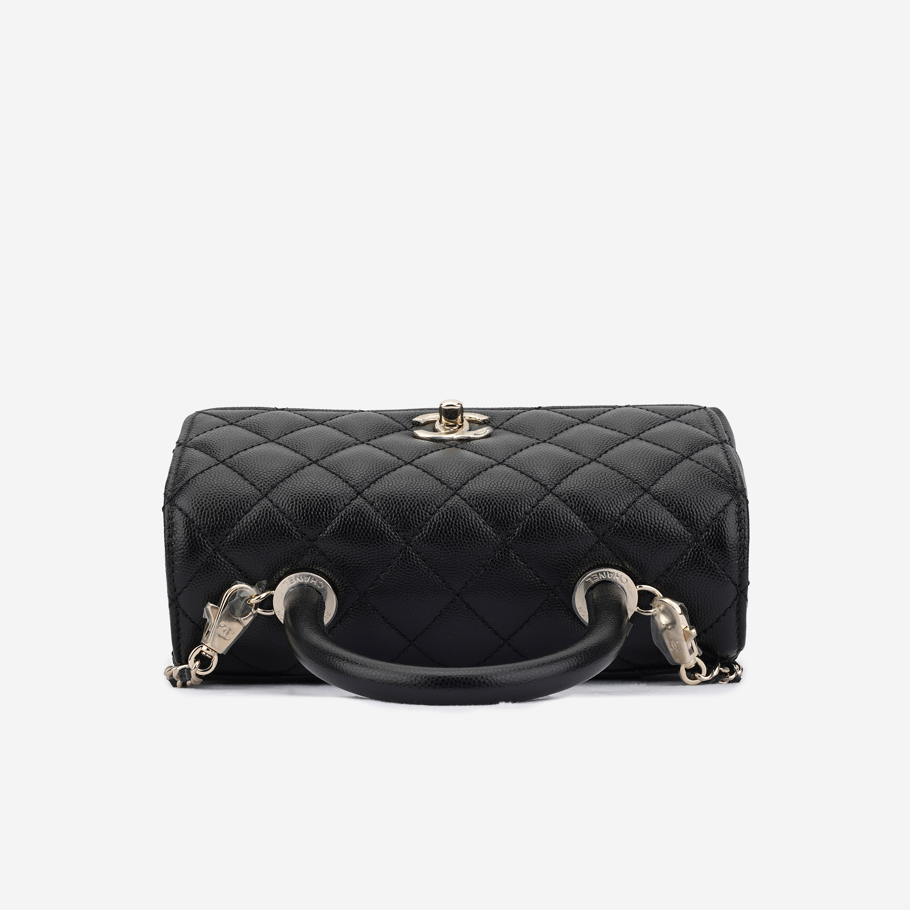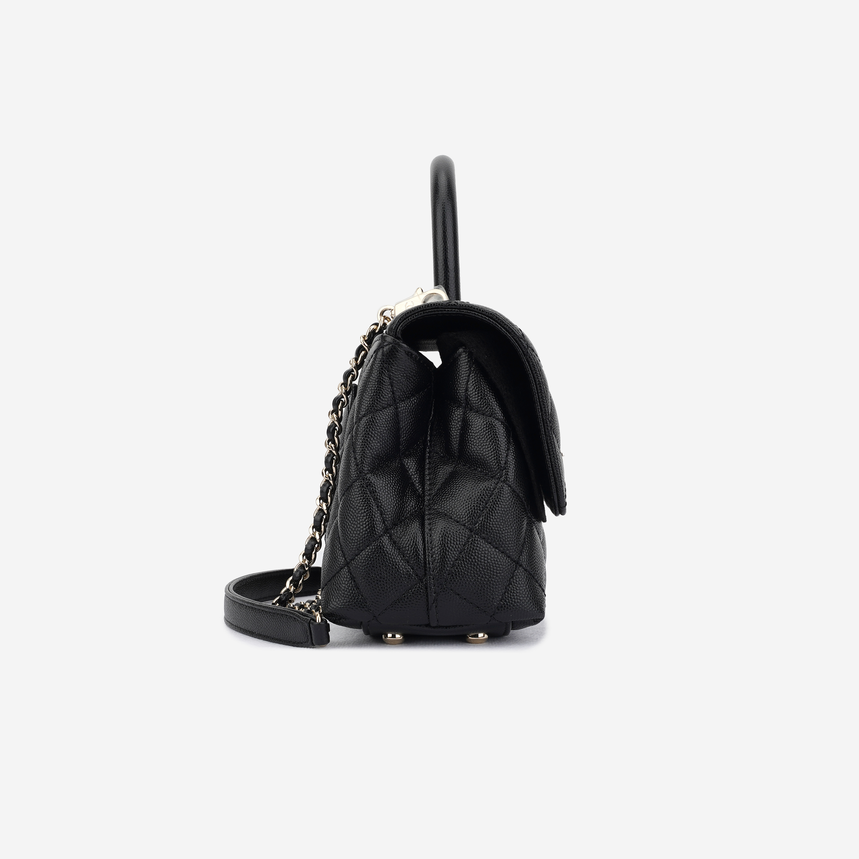 샤넬 핸들 장식의 스몰 플랩백 그레인드 카프스킨 & 골드 메탈 블랙