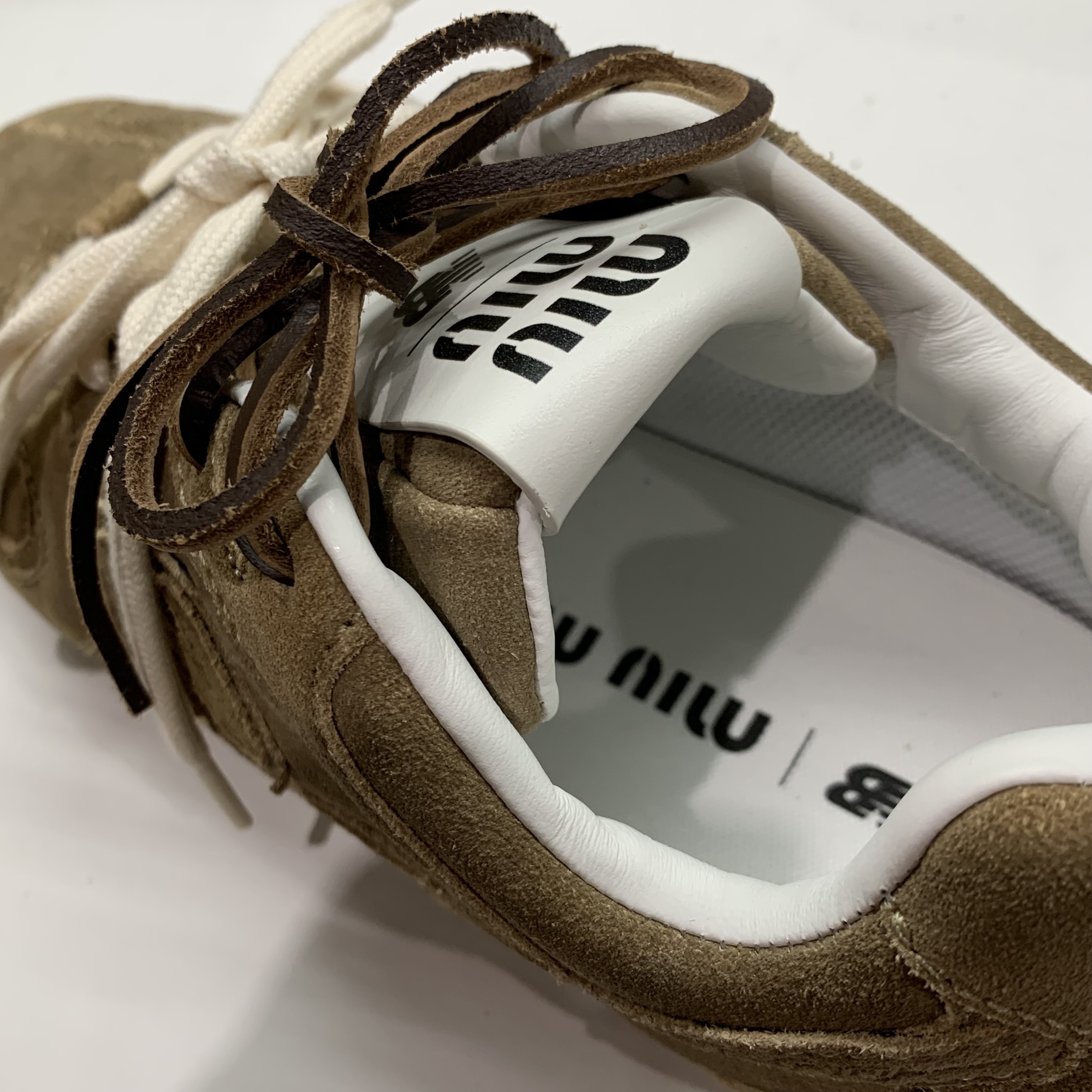 (W) New Balance x Miu Miu 530 Suede Mesh Sneakers Ecru