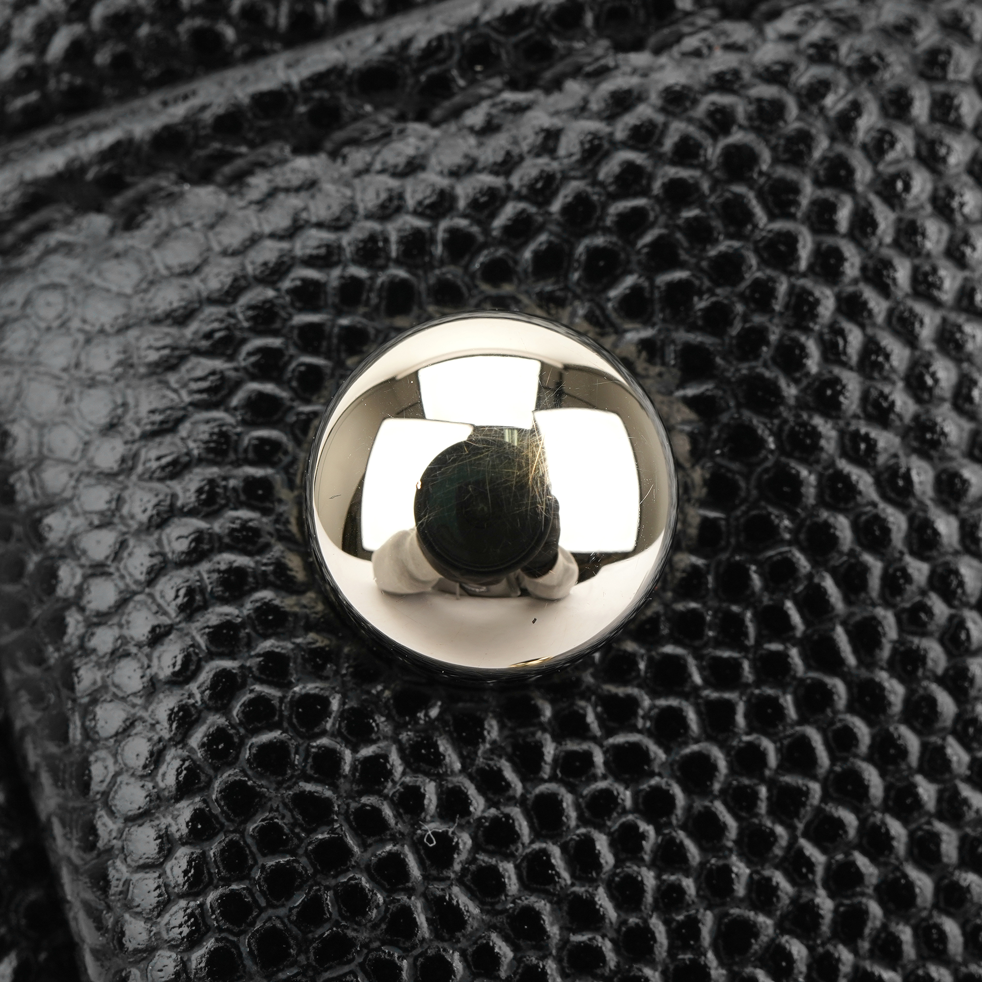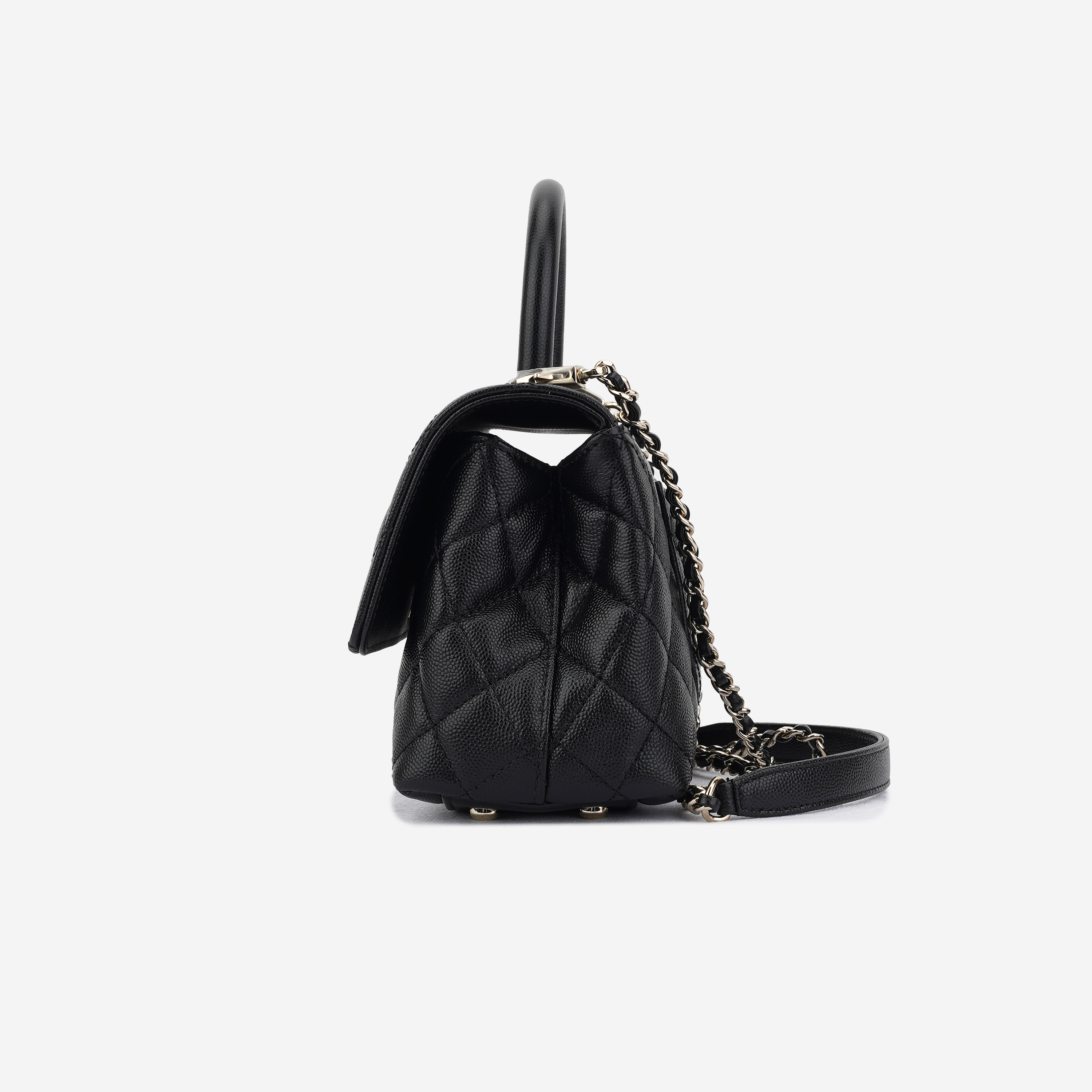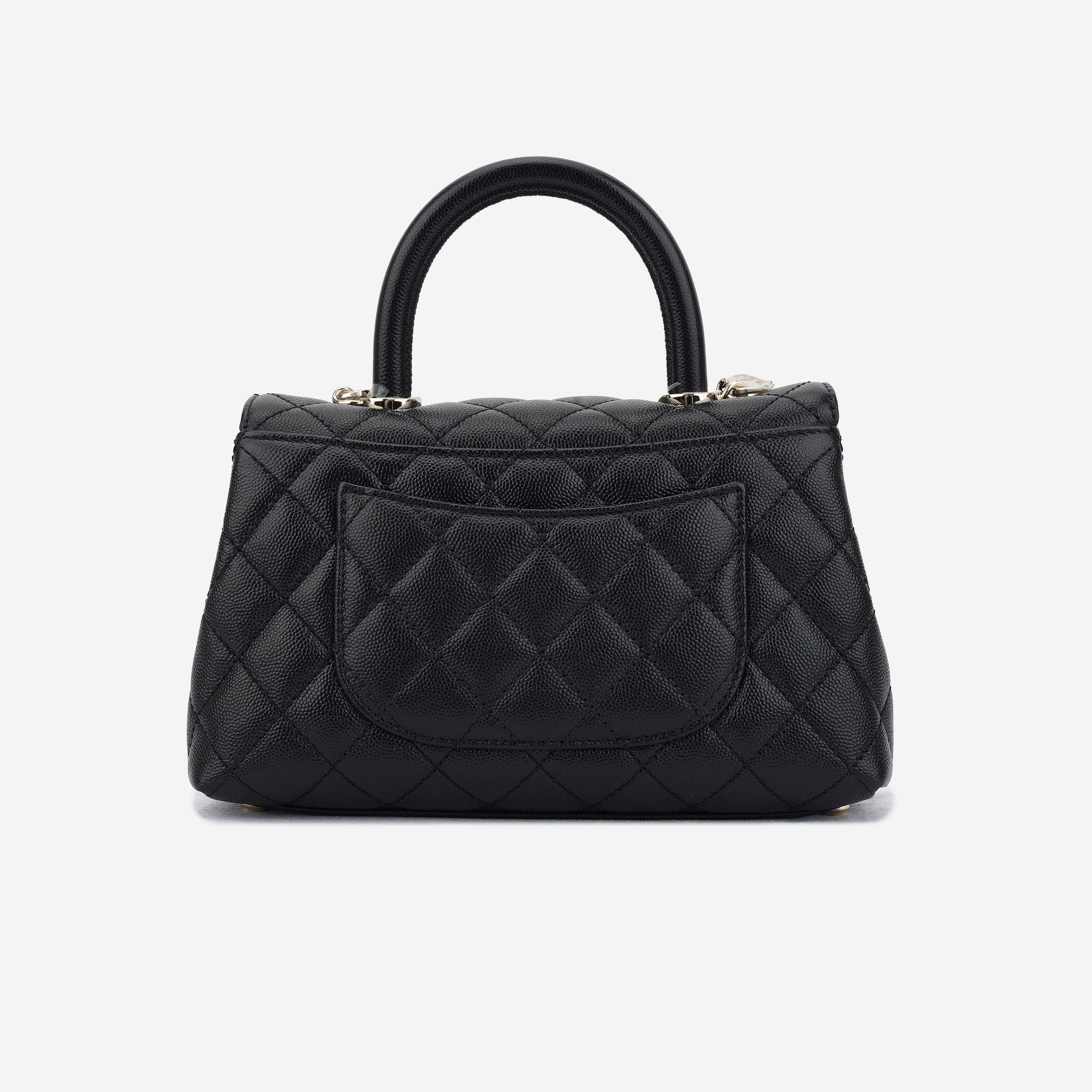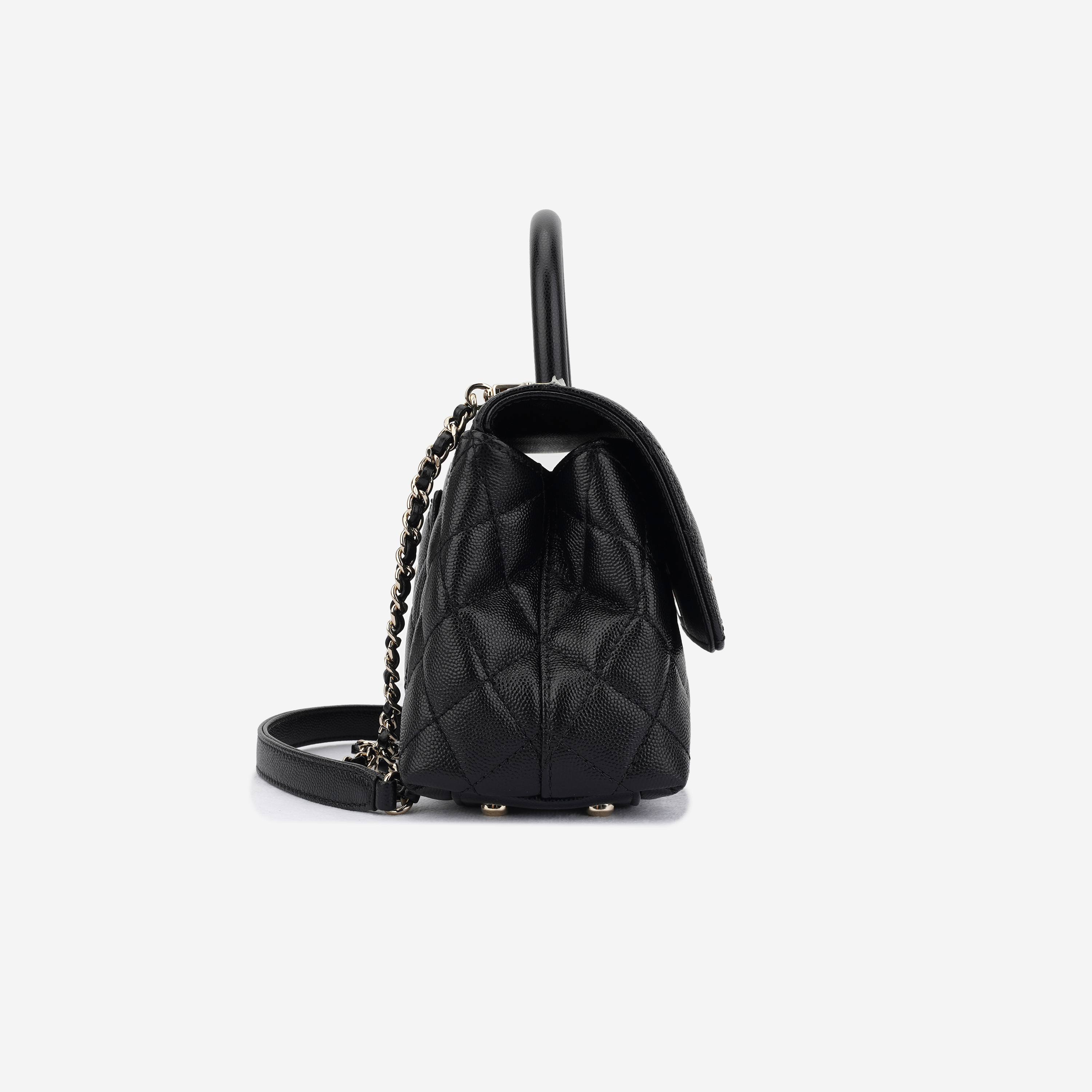 샤넬 핸들 장식의 스몰 플랩백 그레인드 카프스킨 & 골드 메탈 블랙