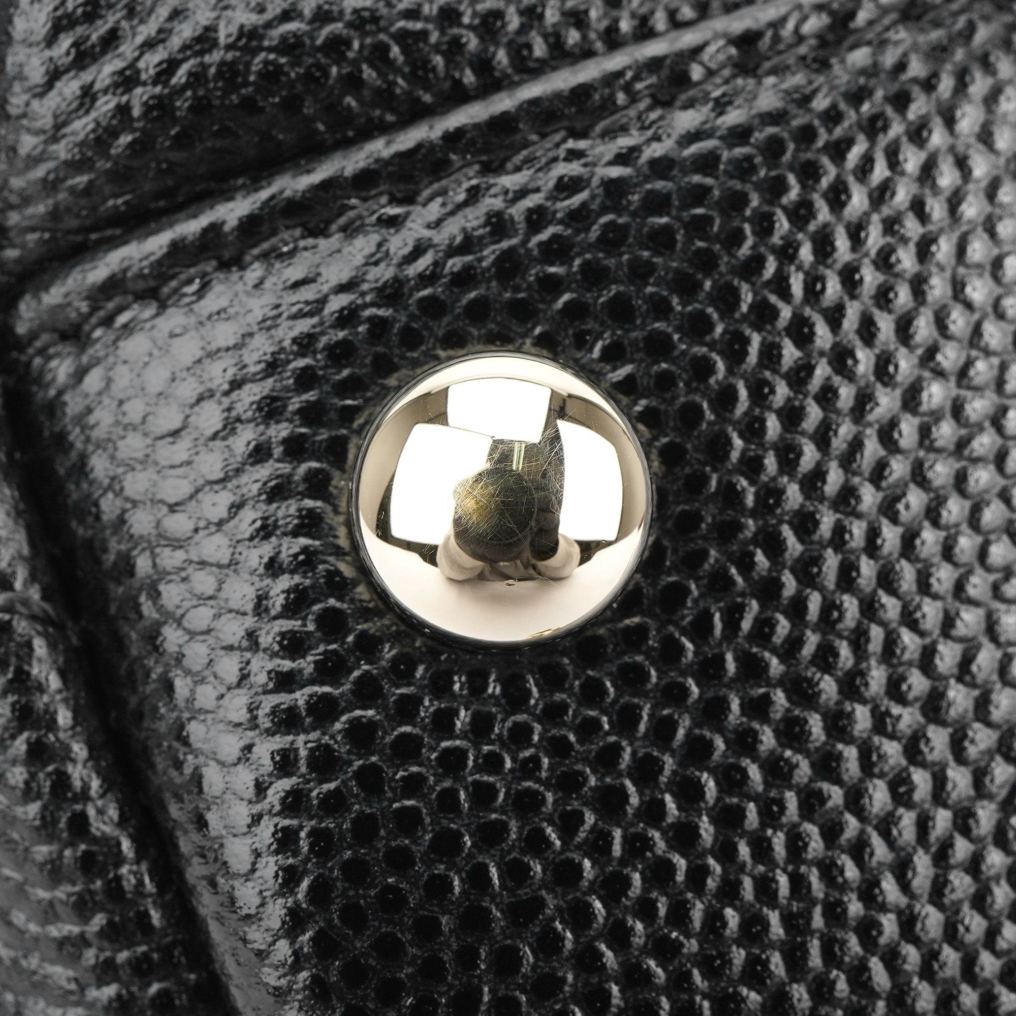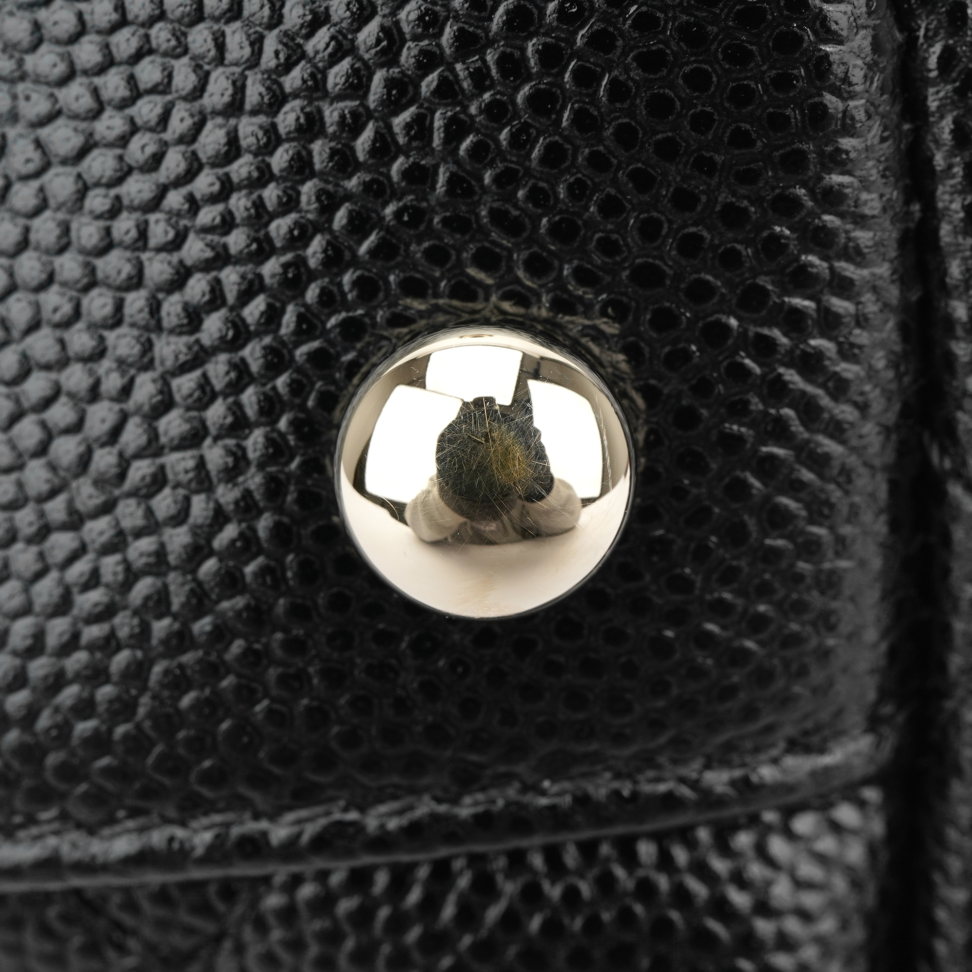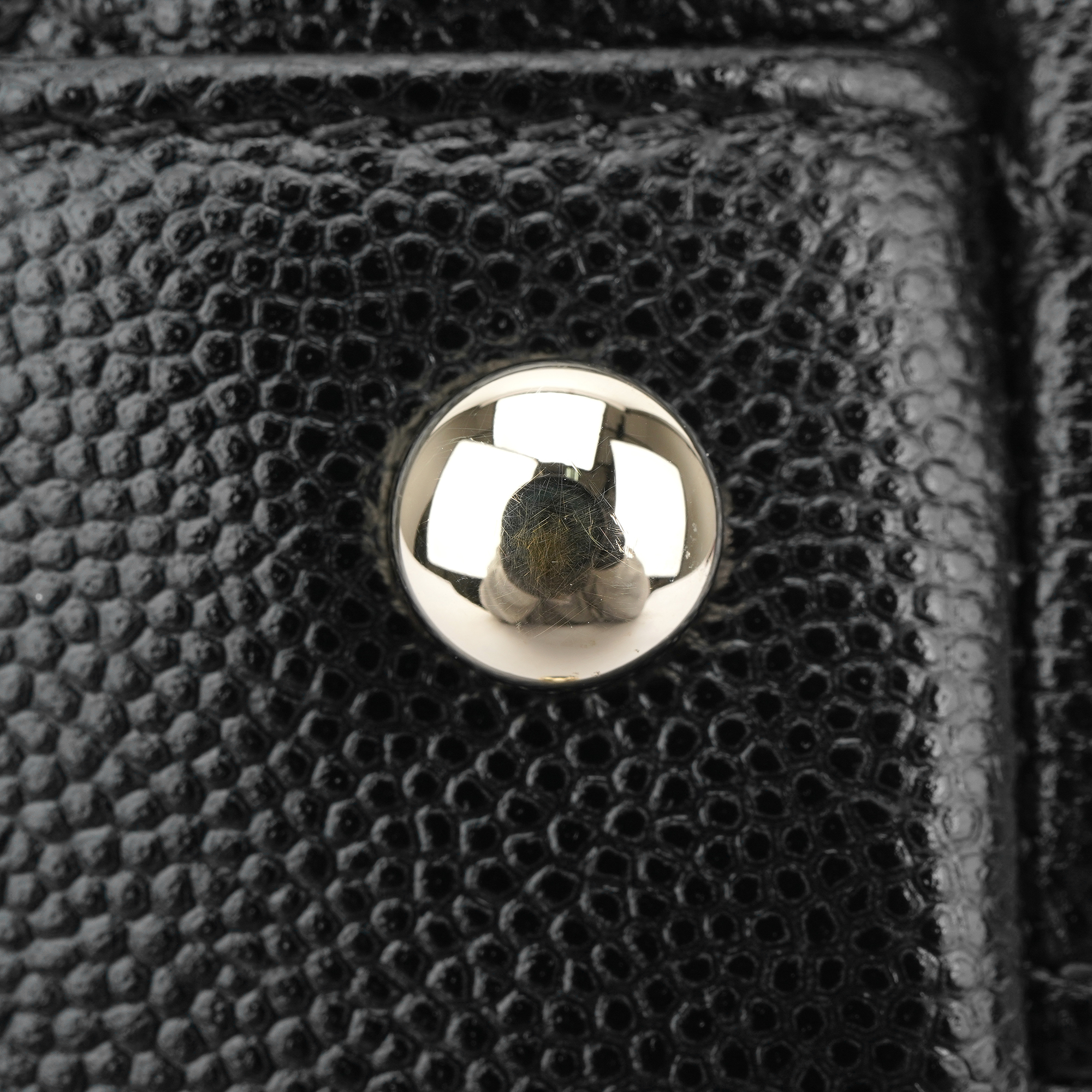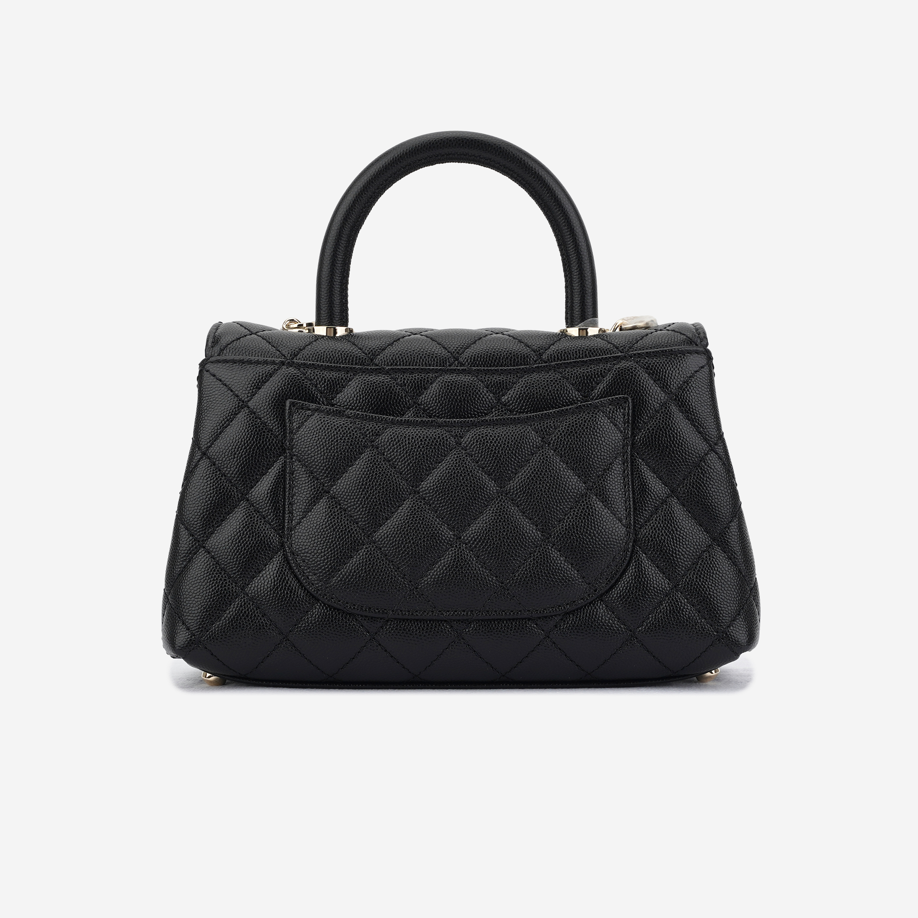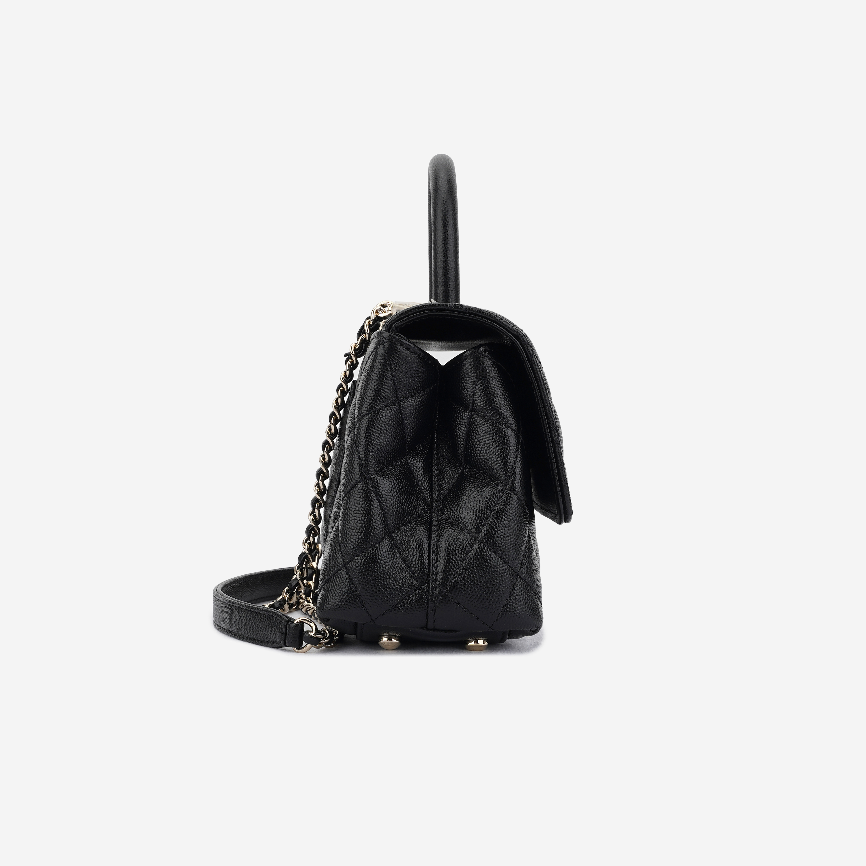 샤넬 핸들 장식의 스몰 플랩백 그레인드 카프스킨 & 골드 메탈 블랙