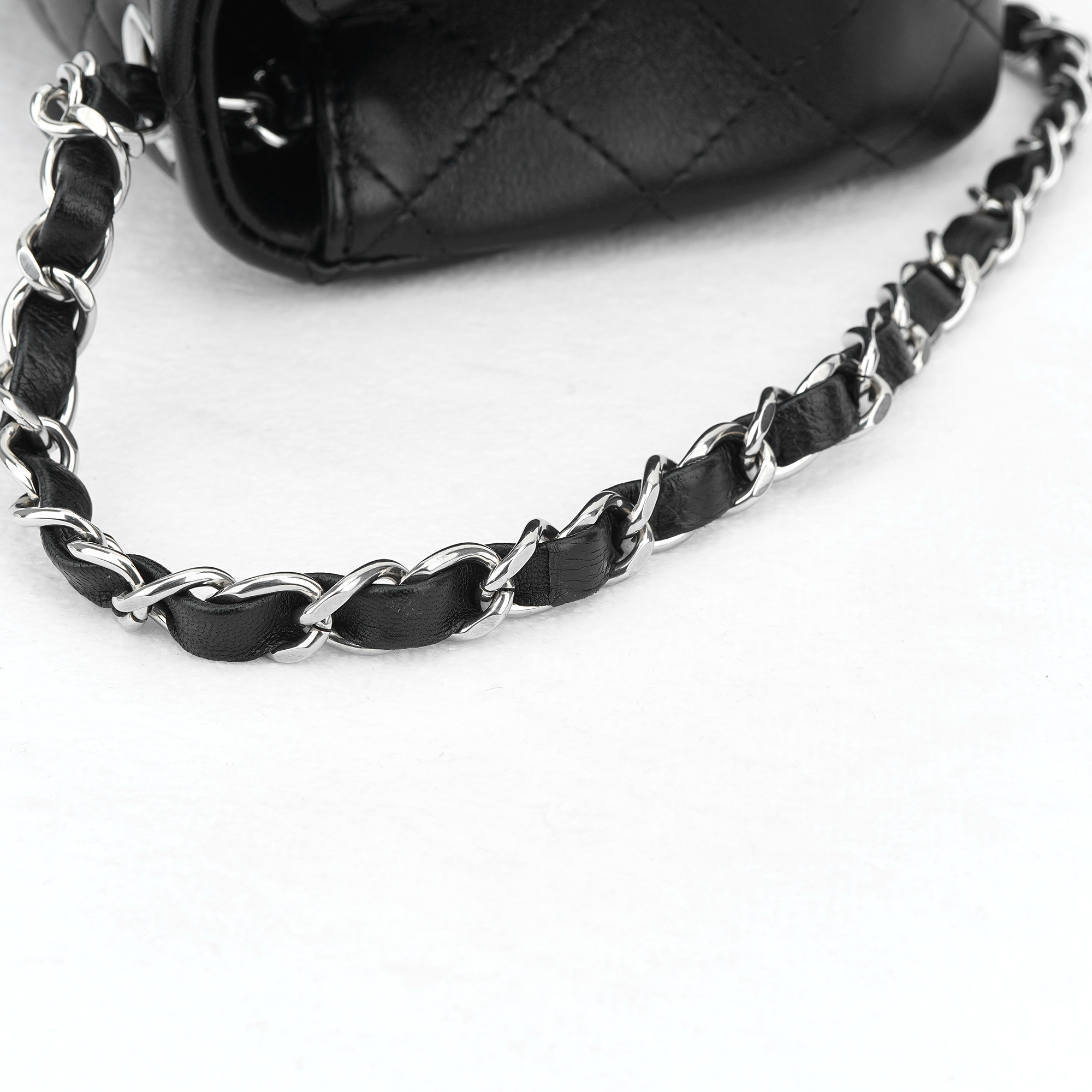 샤넬 미니 플랩백 램스킨 & 실버 메탈 블랙