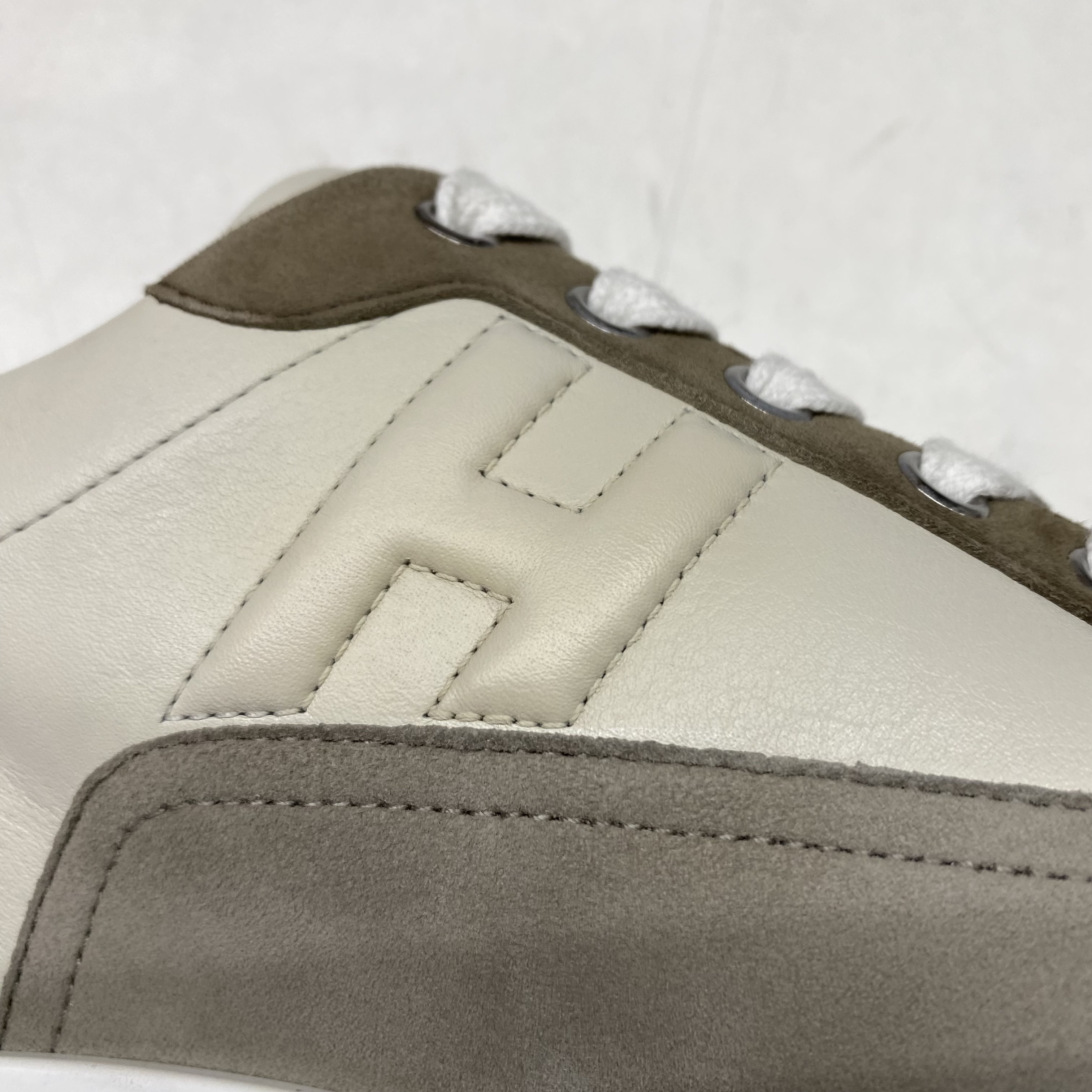 Hermes Trail Sneakers Calfskin Suede Goatskin & Multicolore Beige Glaise