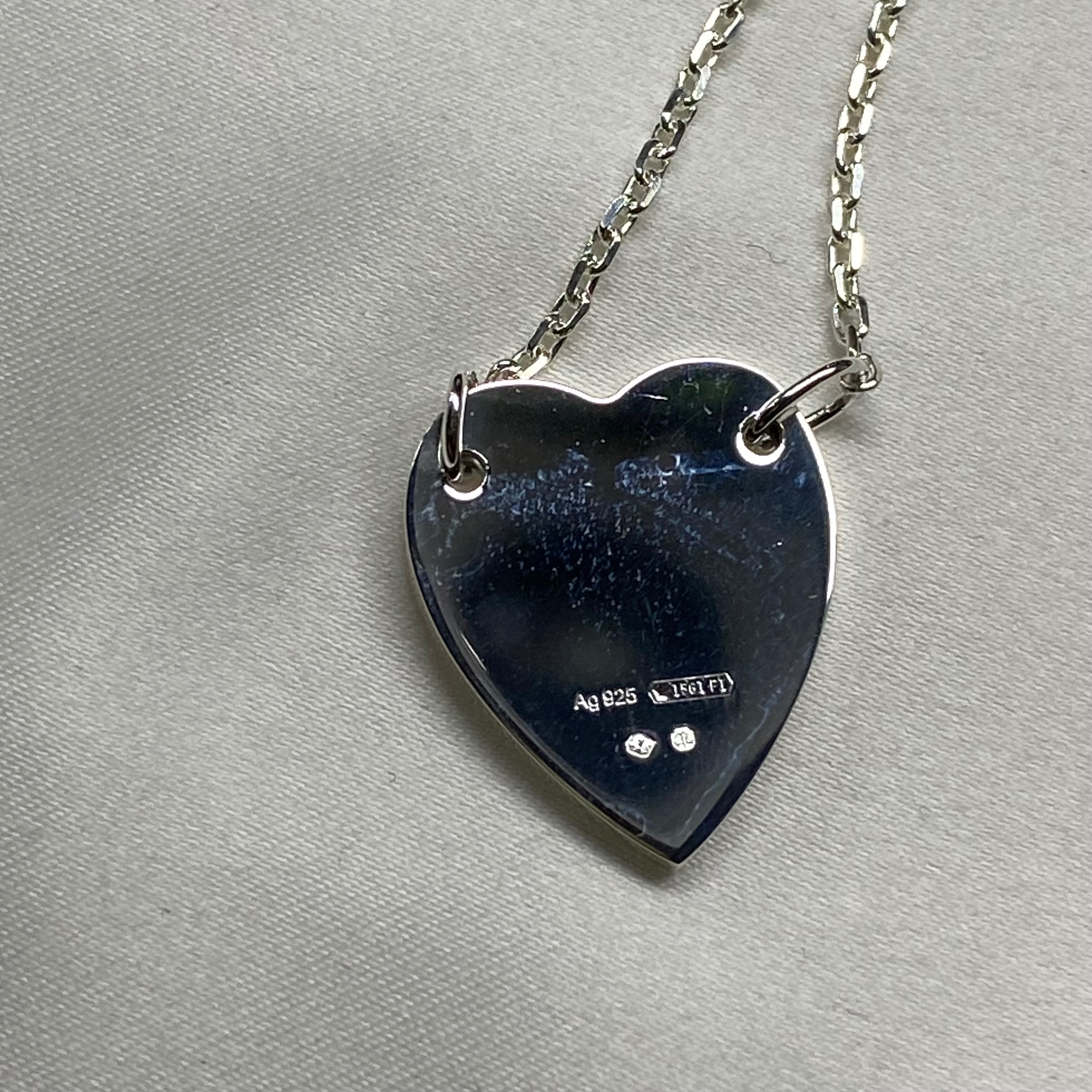 구찌 트레이드마크 하트 펜던트 네클리스 실버
