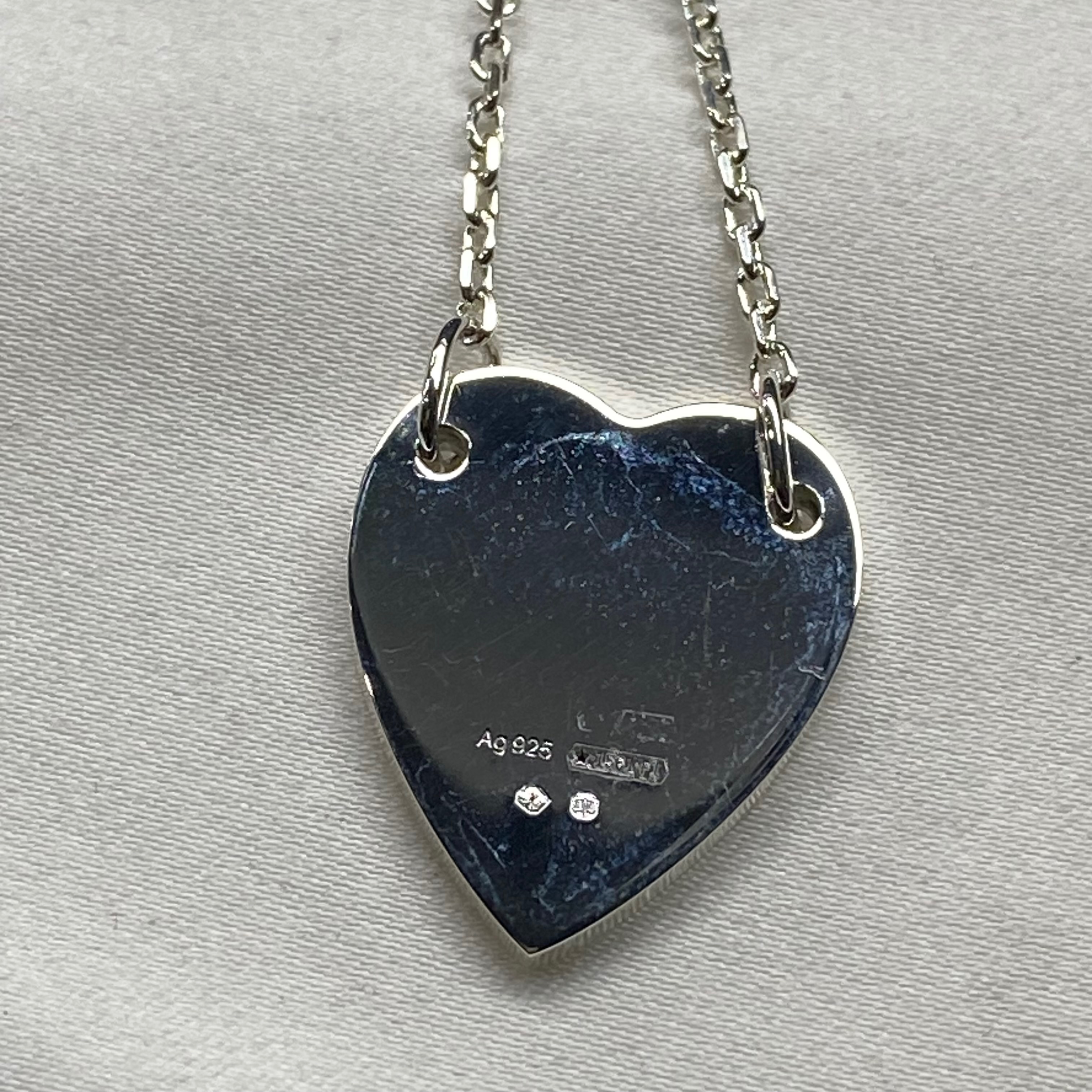 구찌 트레이드마크 하트 펜던트 네클리스 실버
