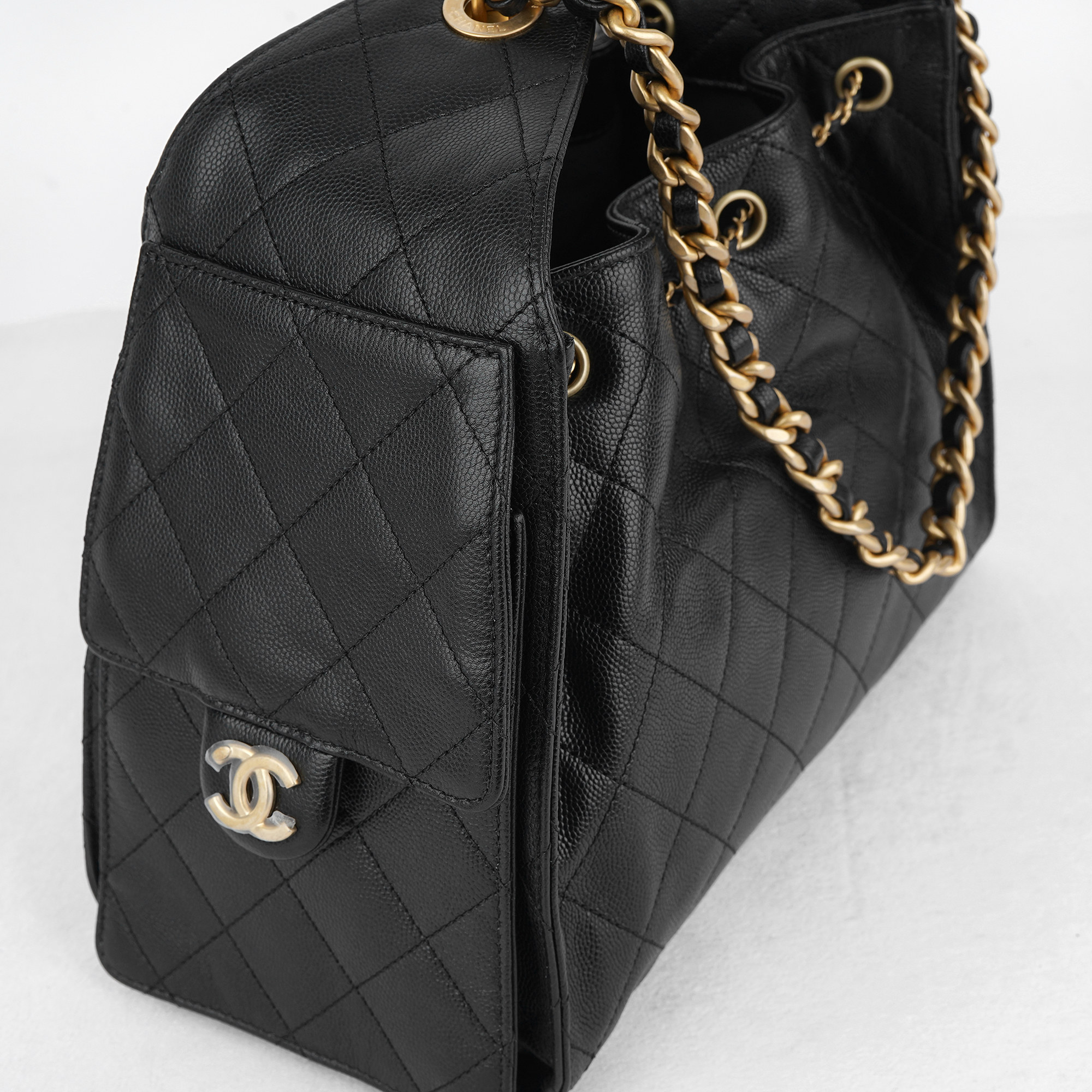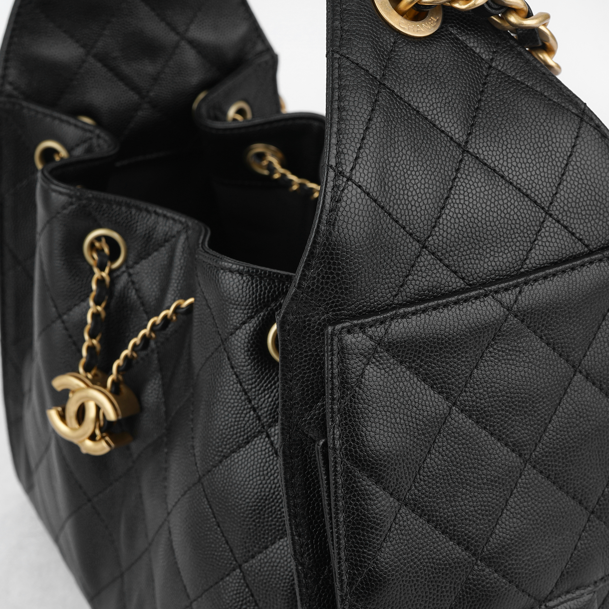 샤넬 25 스몰 핸드백 그레인드 카프스킨 & 골드 메탈 블랙