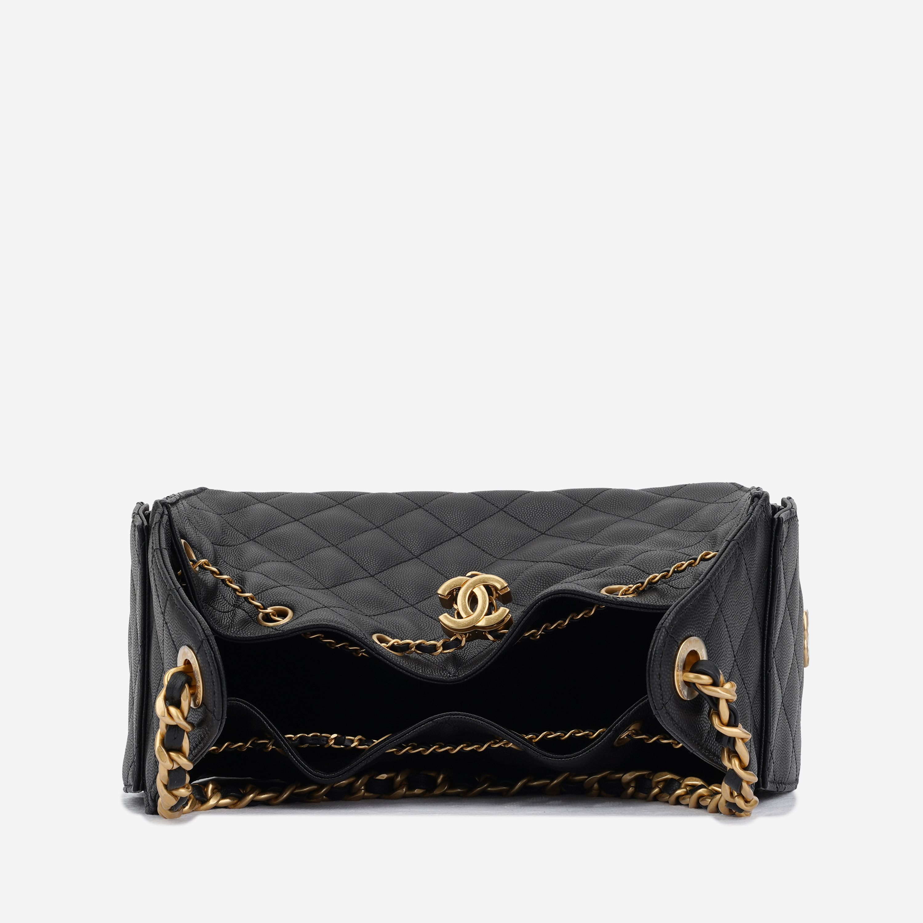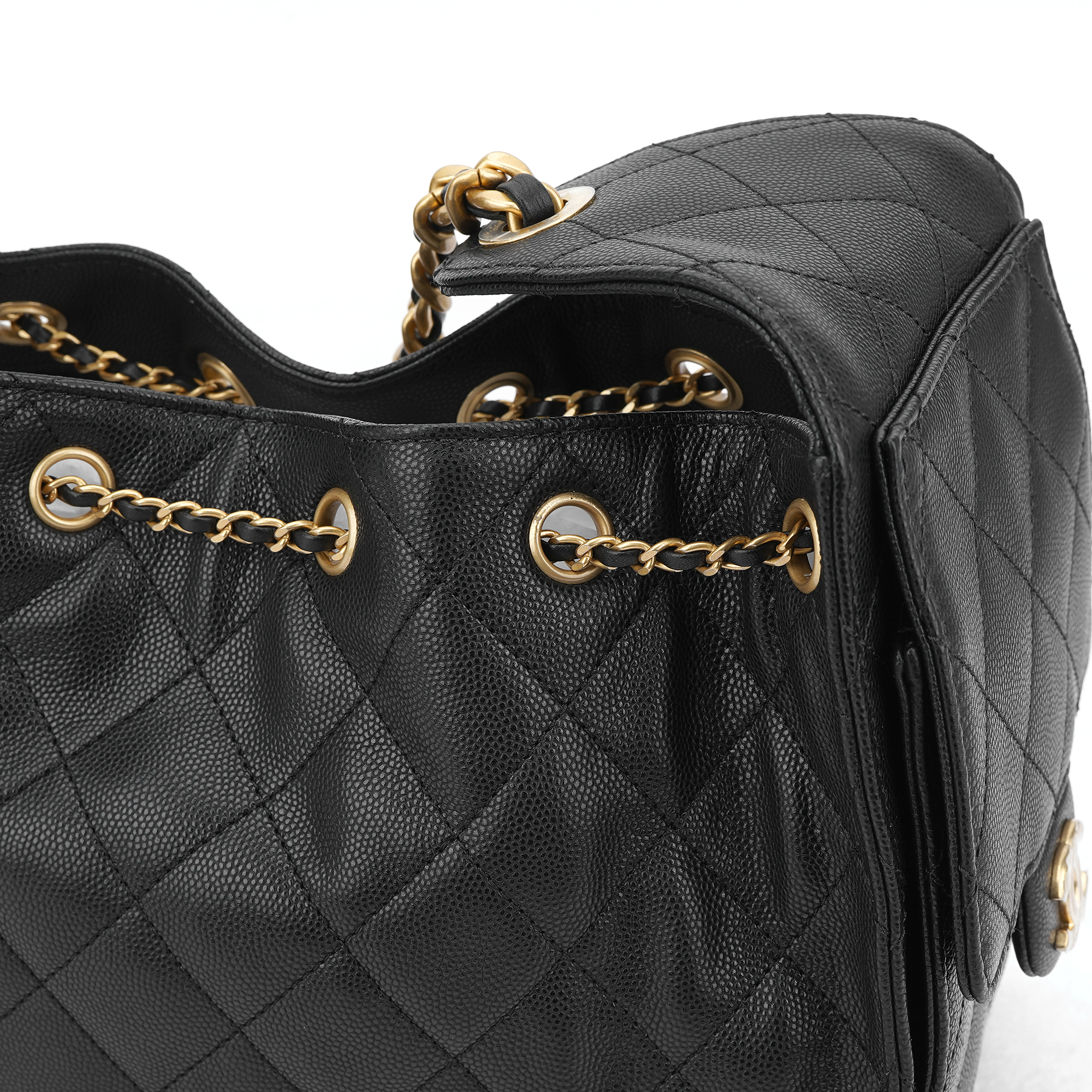 샤넬 25 스몰 핸드백 그레인드 카프스킨 & 골드 메탈 블랙