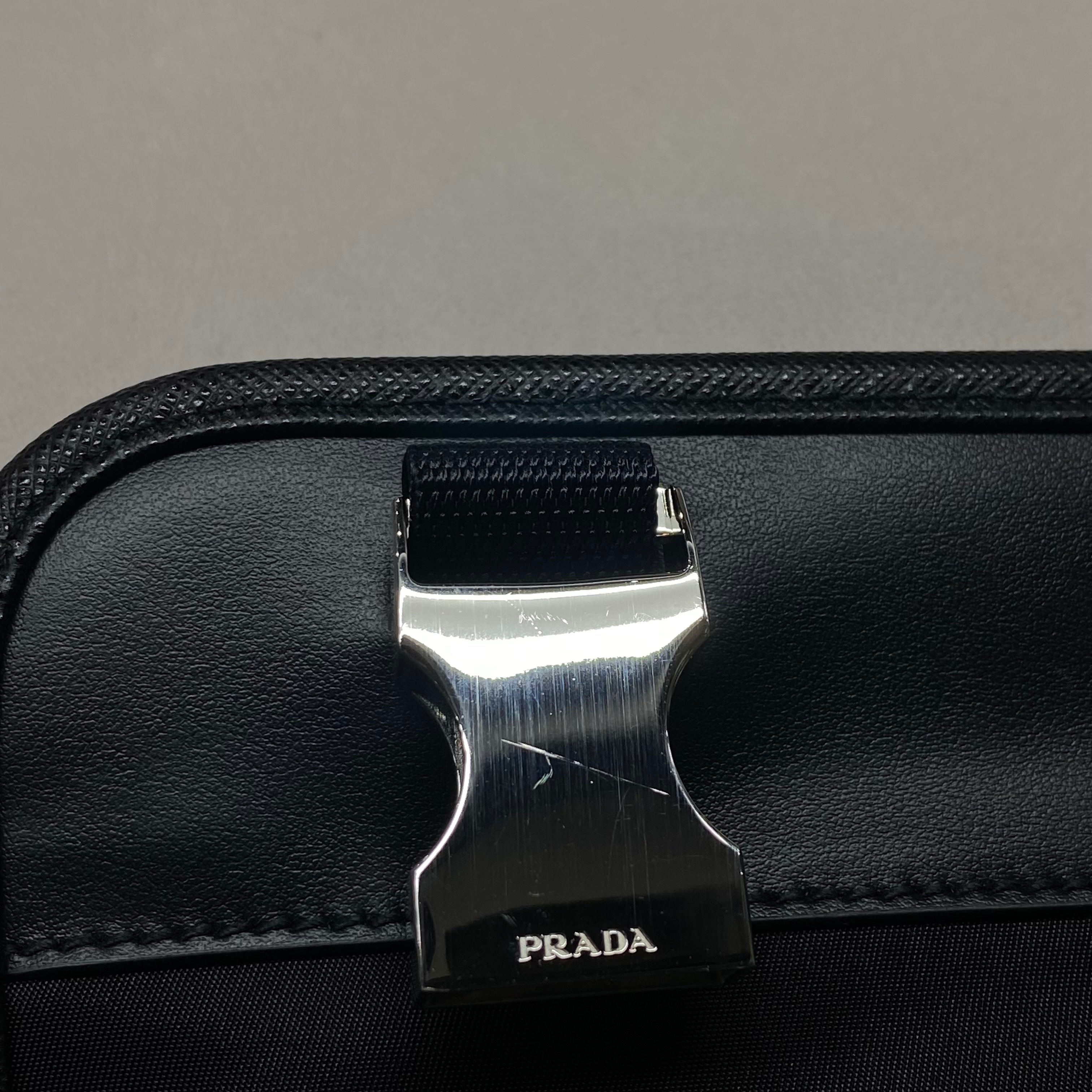 프라다 리나일론 앤 사피아노 레더 숄더백 블랙