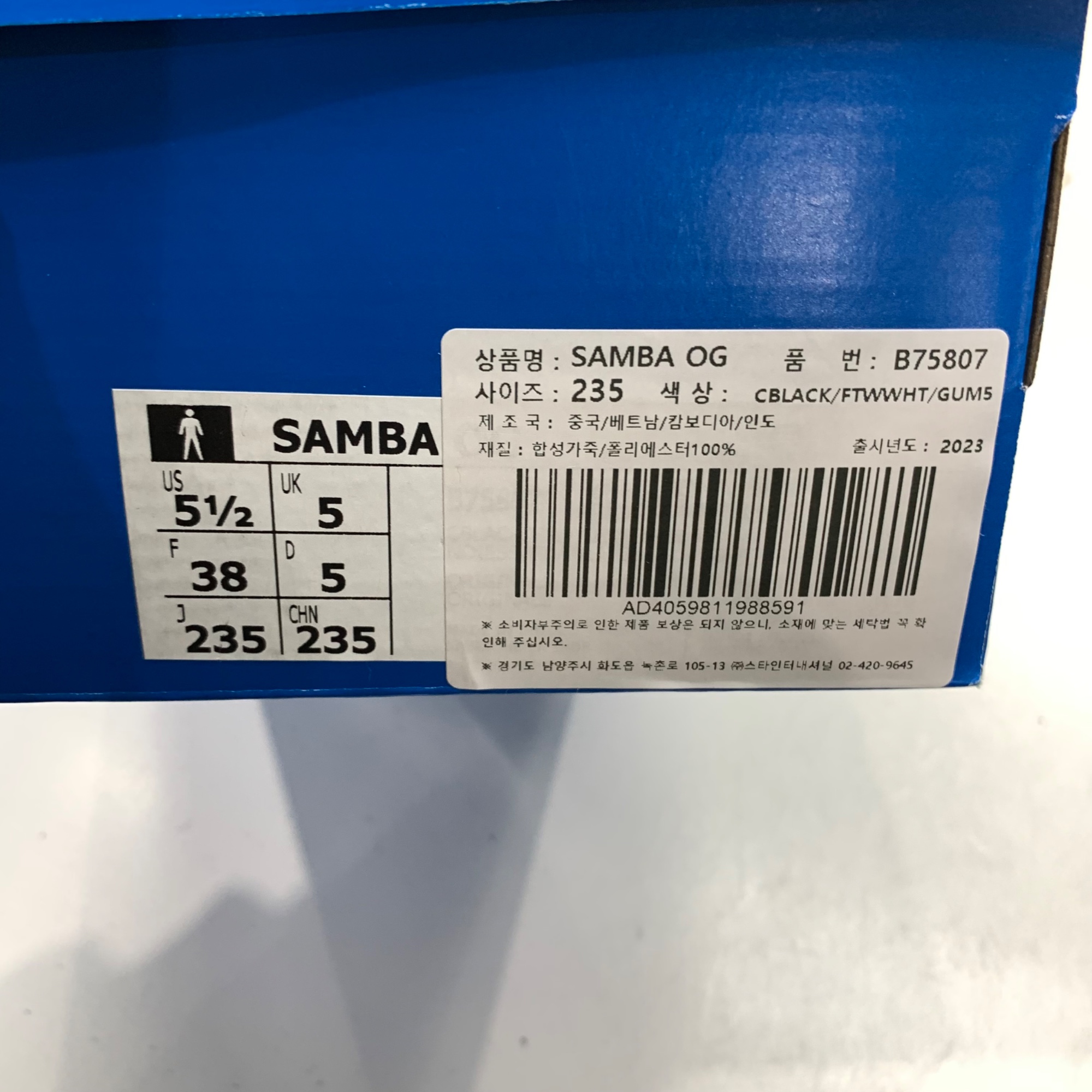 아디다스 삼바 OG 블랙 화이트 검