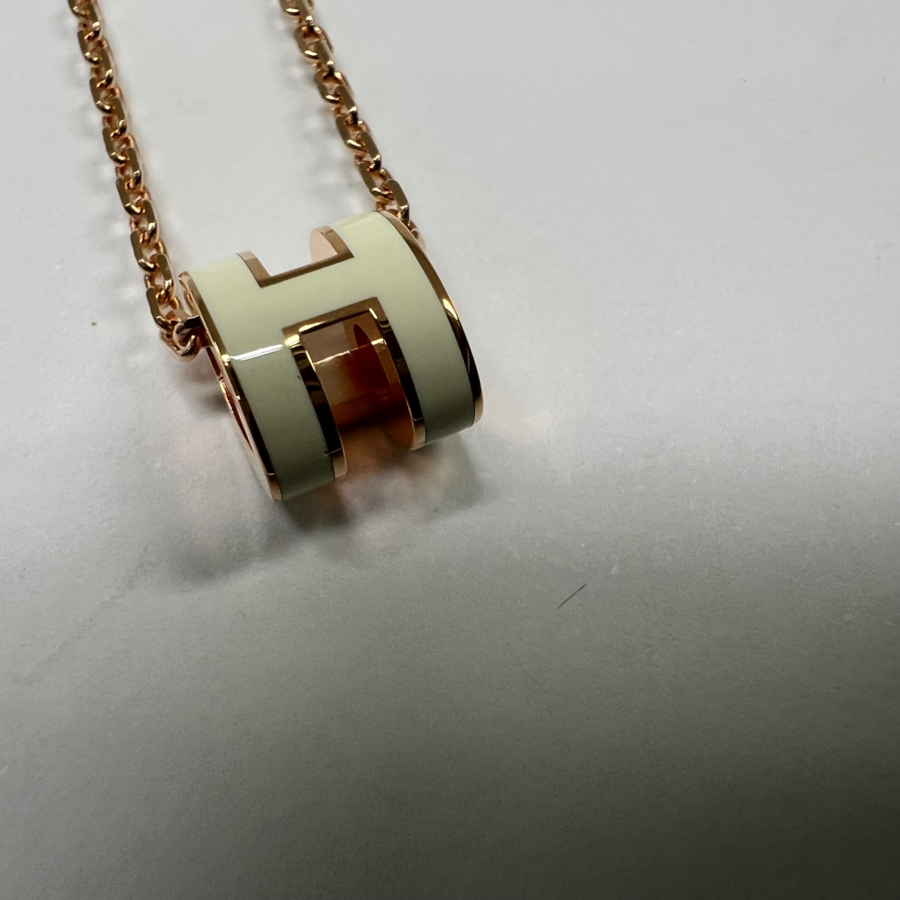 (W) Hermes Mini Pop H Pendant Rose Gold & Blanc