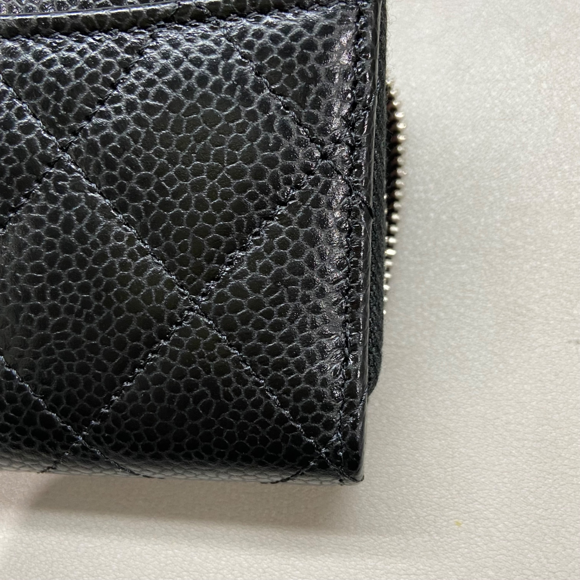 샤넬 클래식 지퍼 동전 지갑 그레인드 카프스킨 & 실버 메탈 블랙