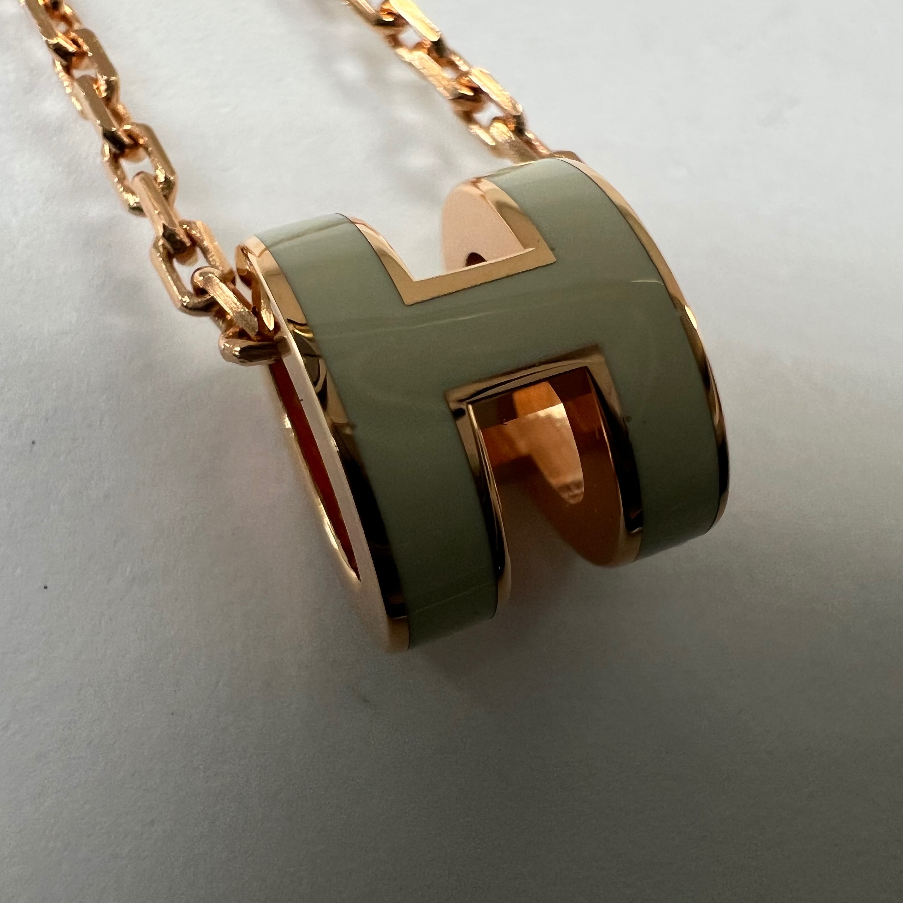 (W) Hermes Mini Pop H Pendant Rose Gold & Blanc