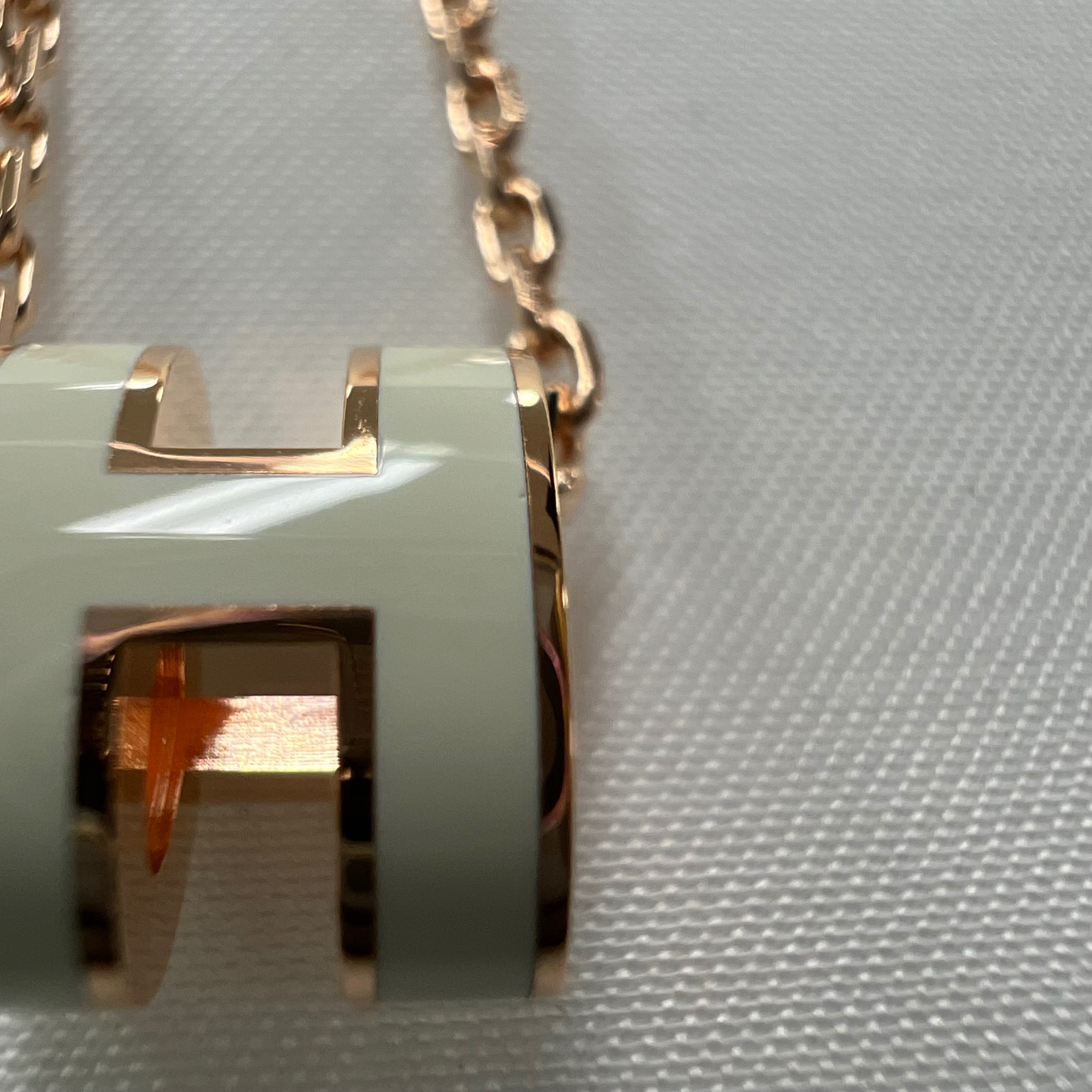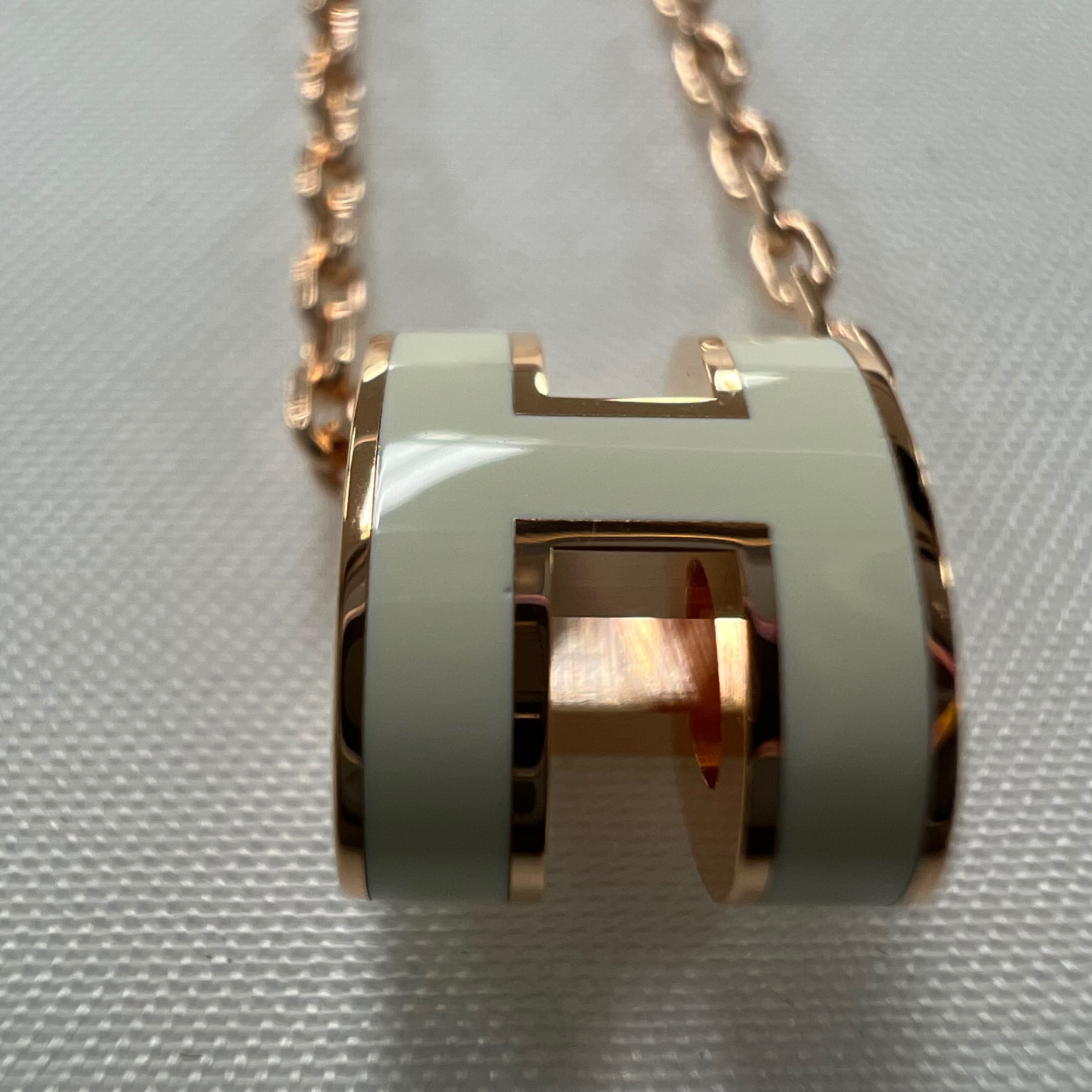 (W) Hermes Mini Pop H Pendant Rose Gold & Blanc