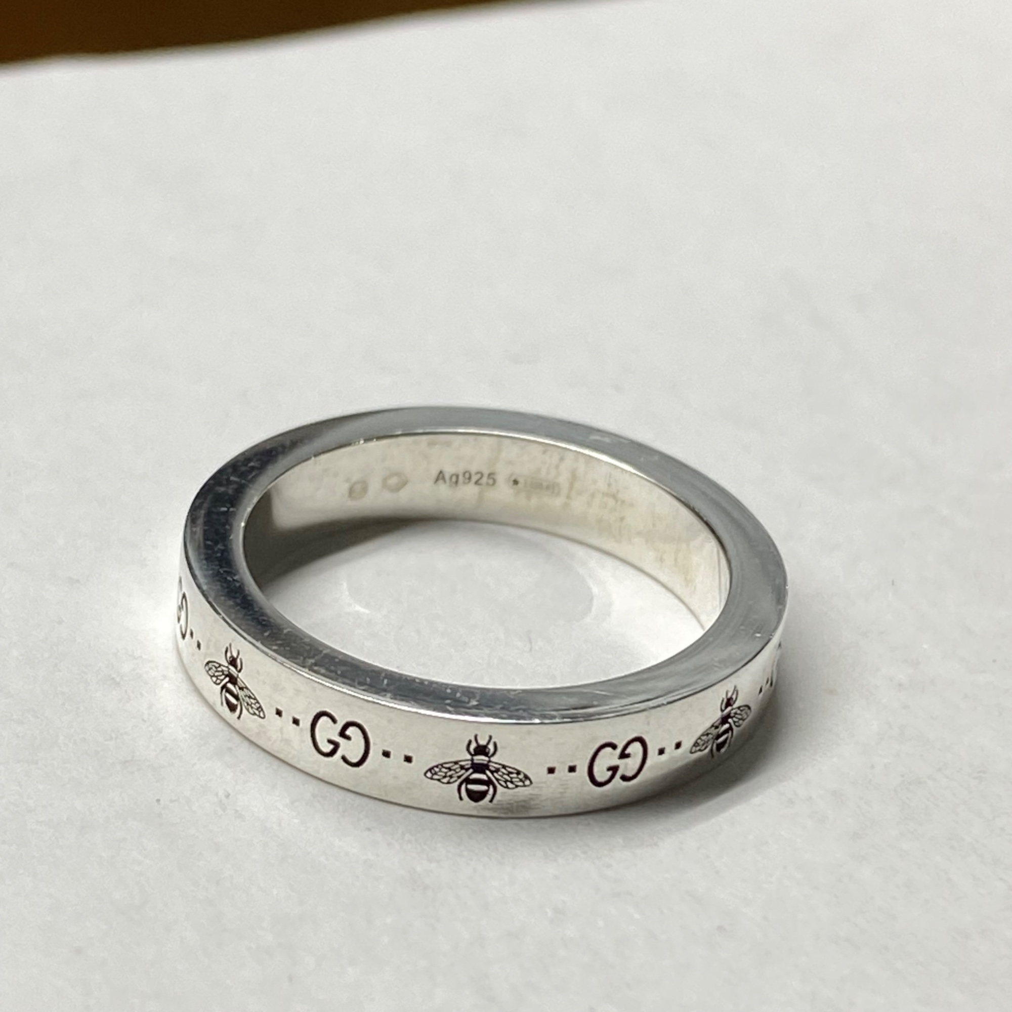 Gucci GG Bee Engraved Thin Ring Silver