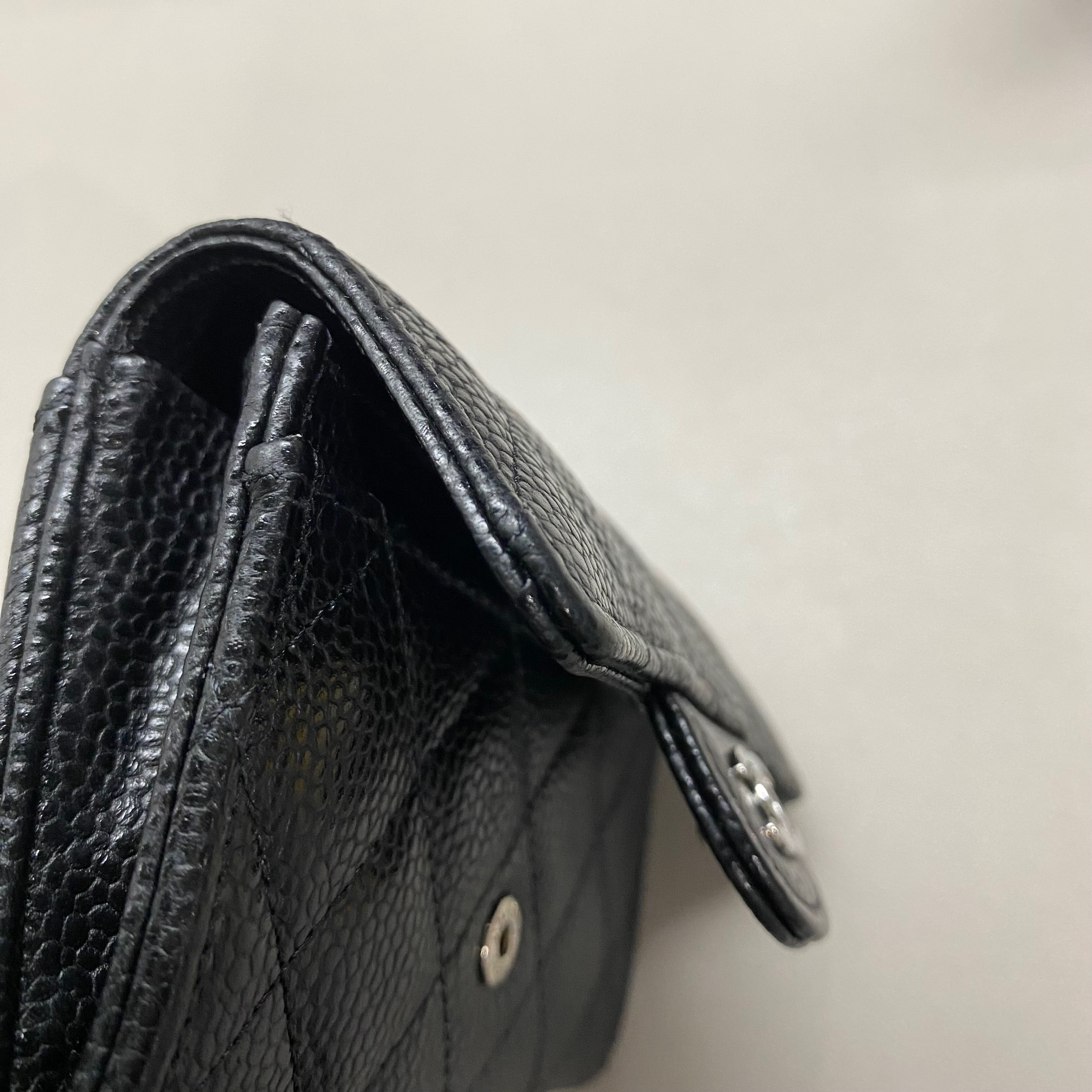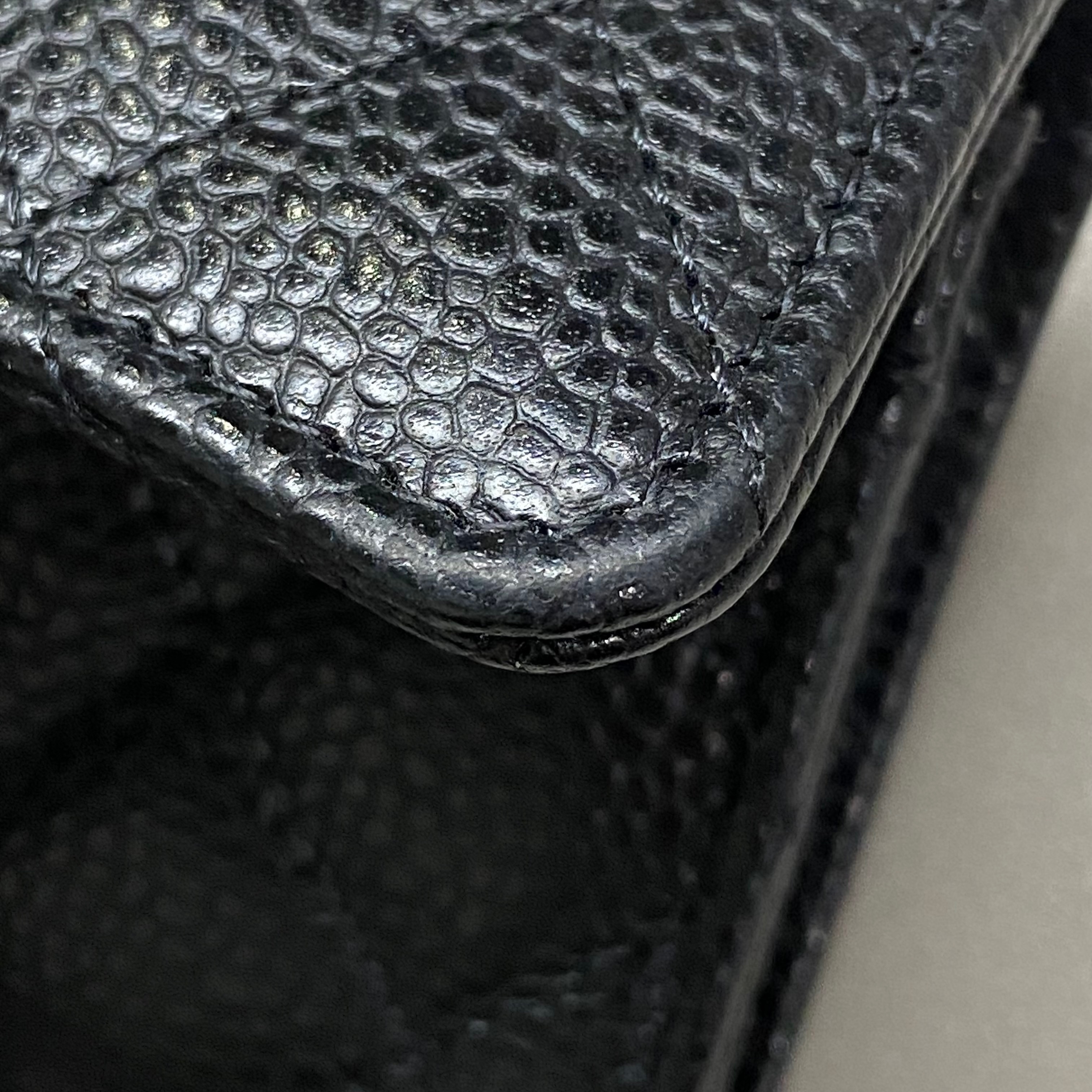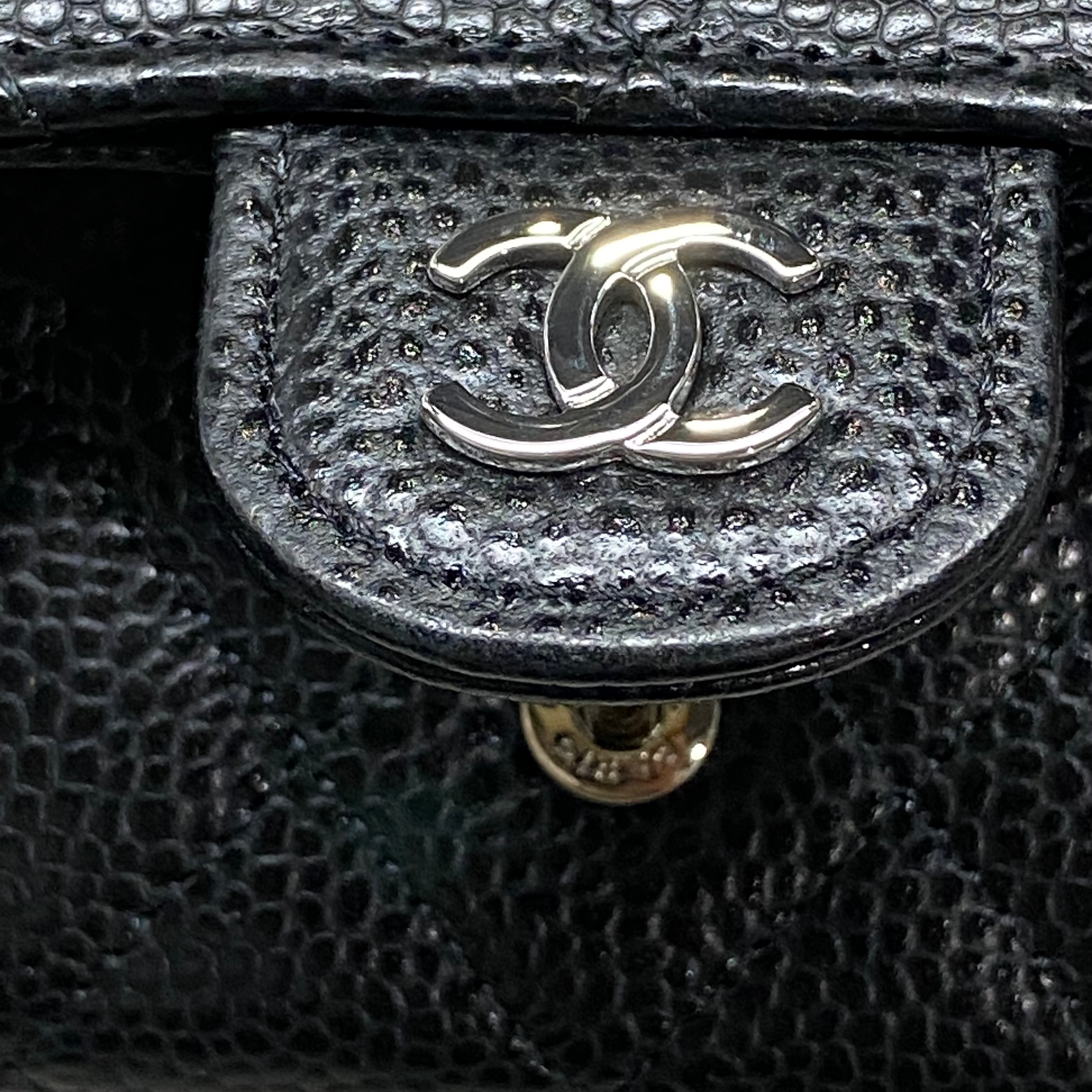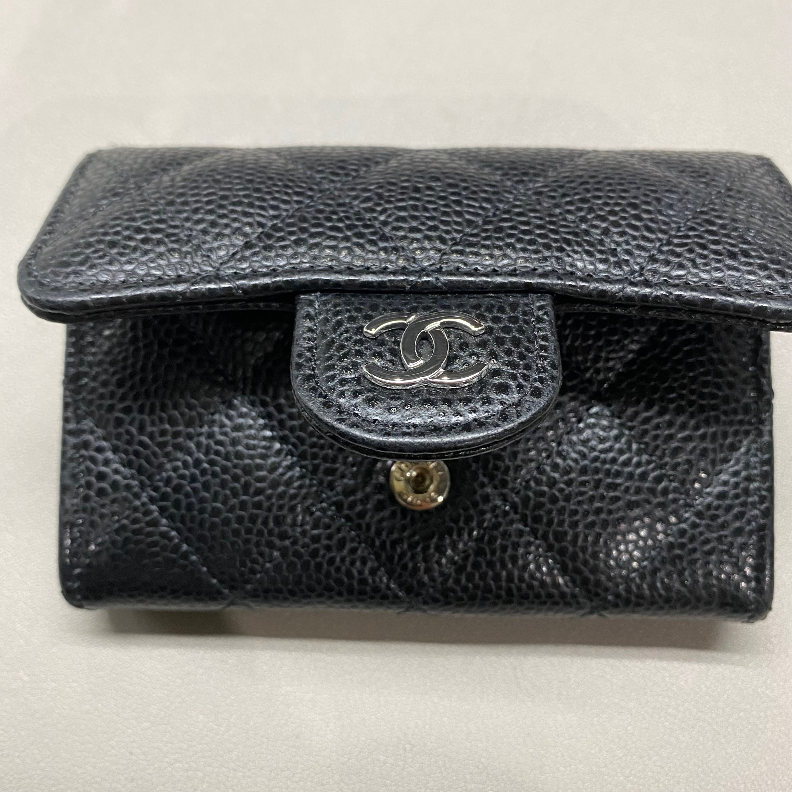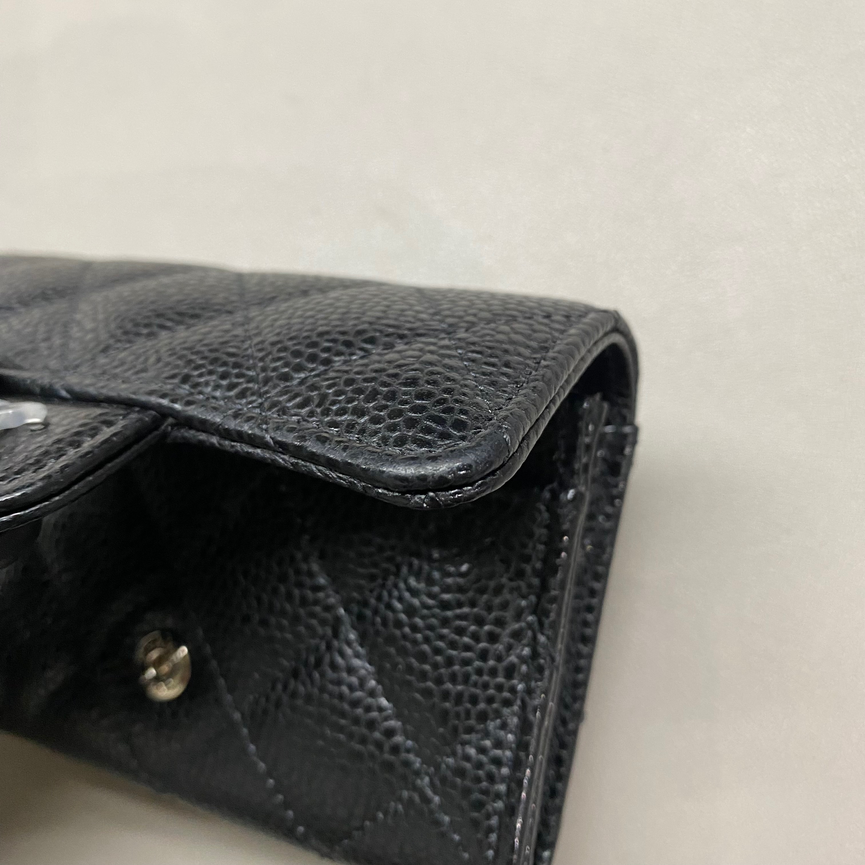 샤넬 클래식 카드 홀더 그레인드 카프스킨 & 실버 메탈 블랙