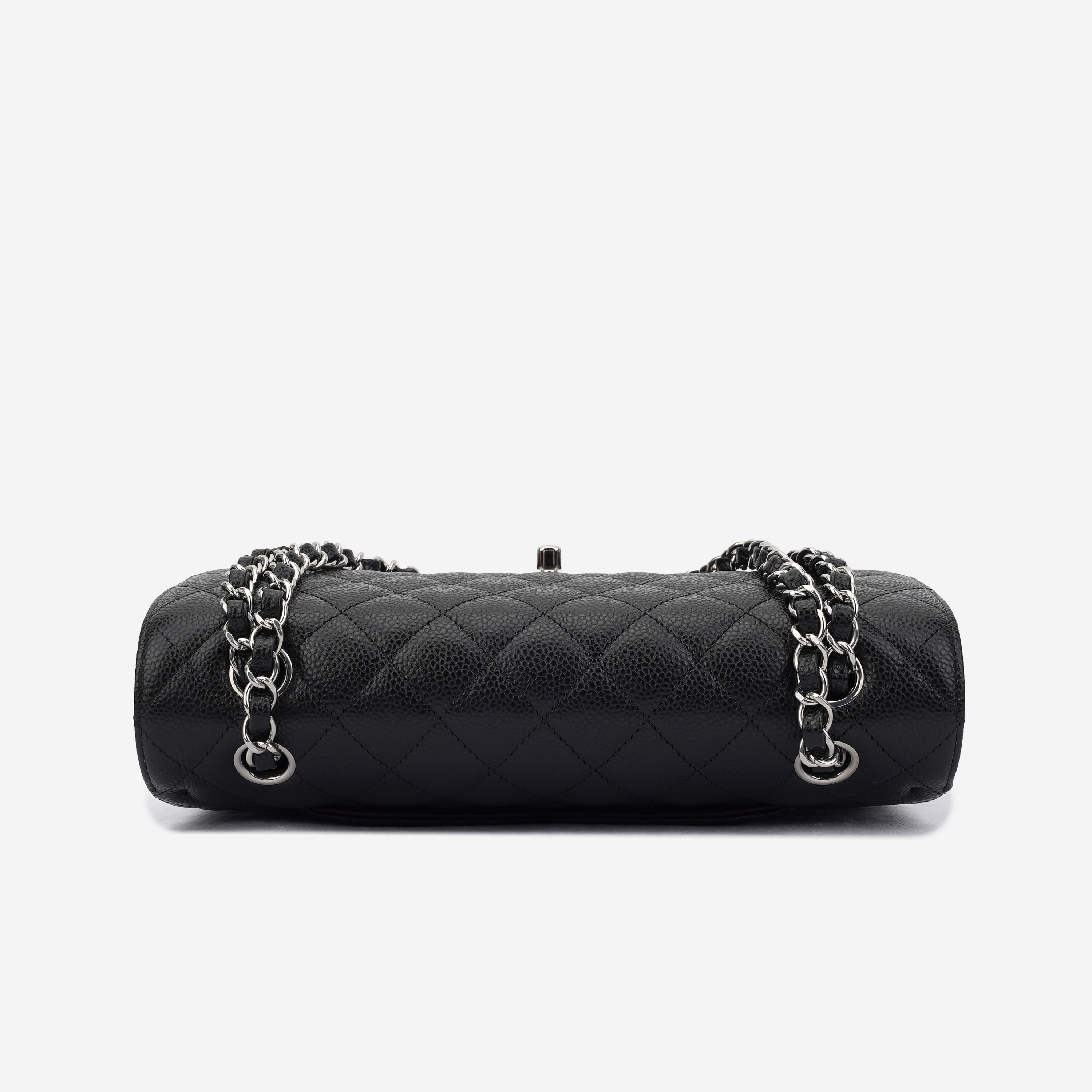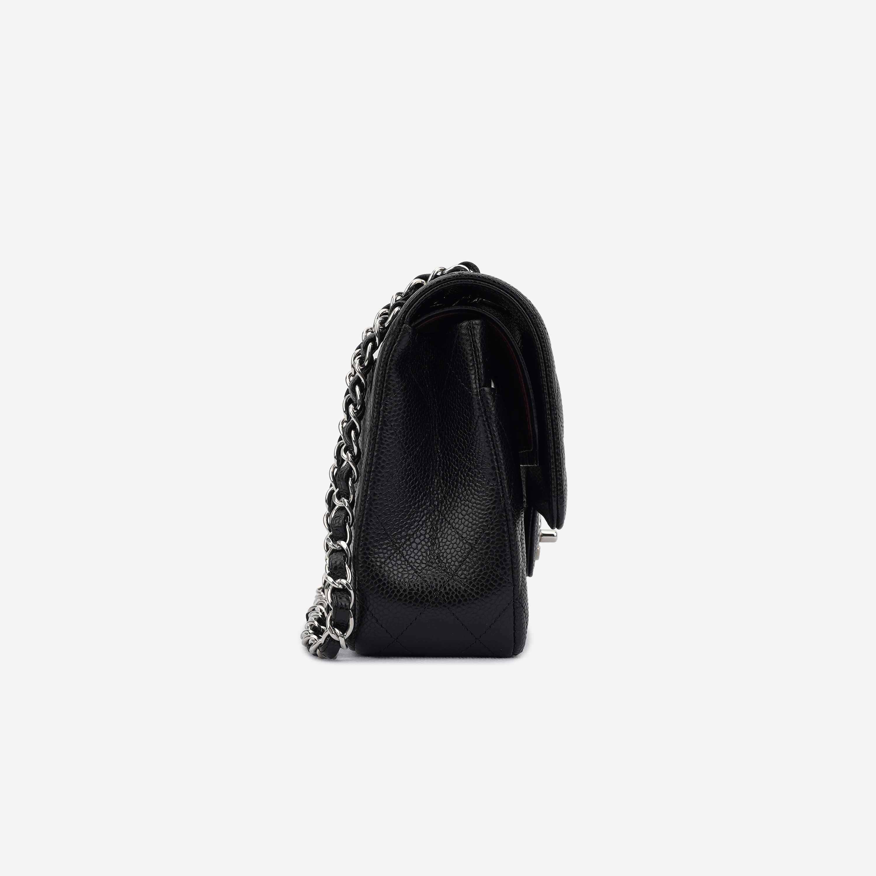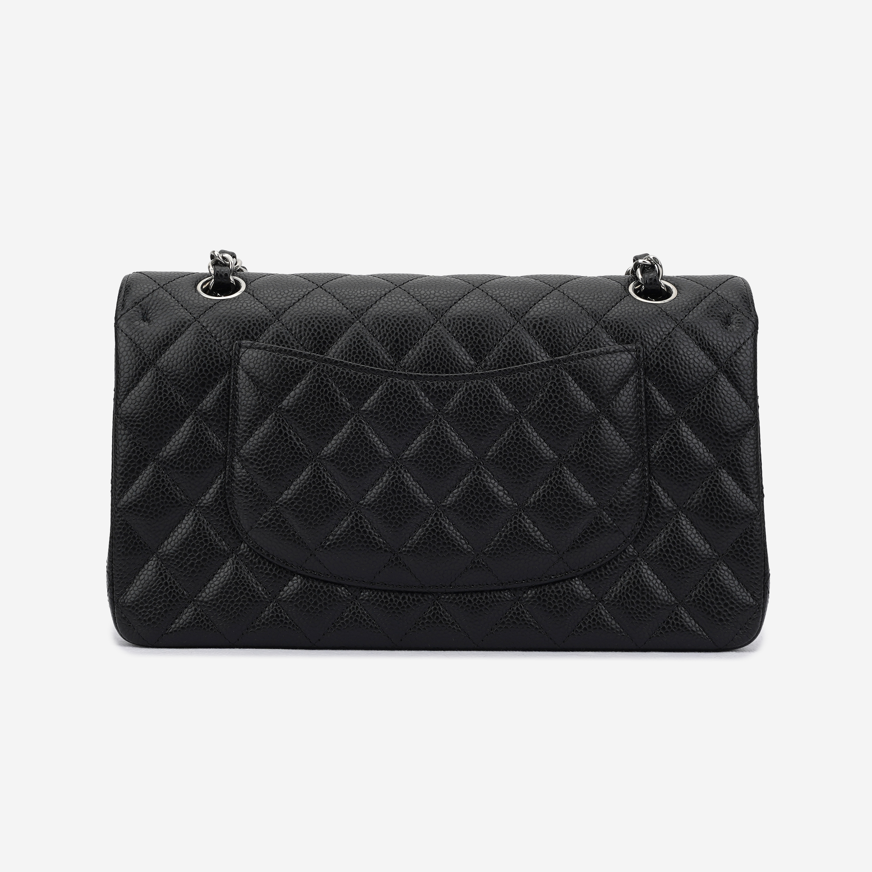 샤넬 클래식 미디움 플랩백 그레인드 카프스킨 & 실버 메탈 블랙