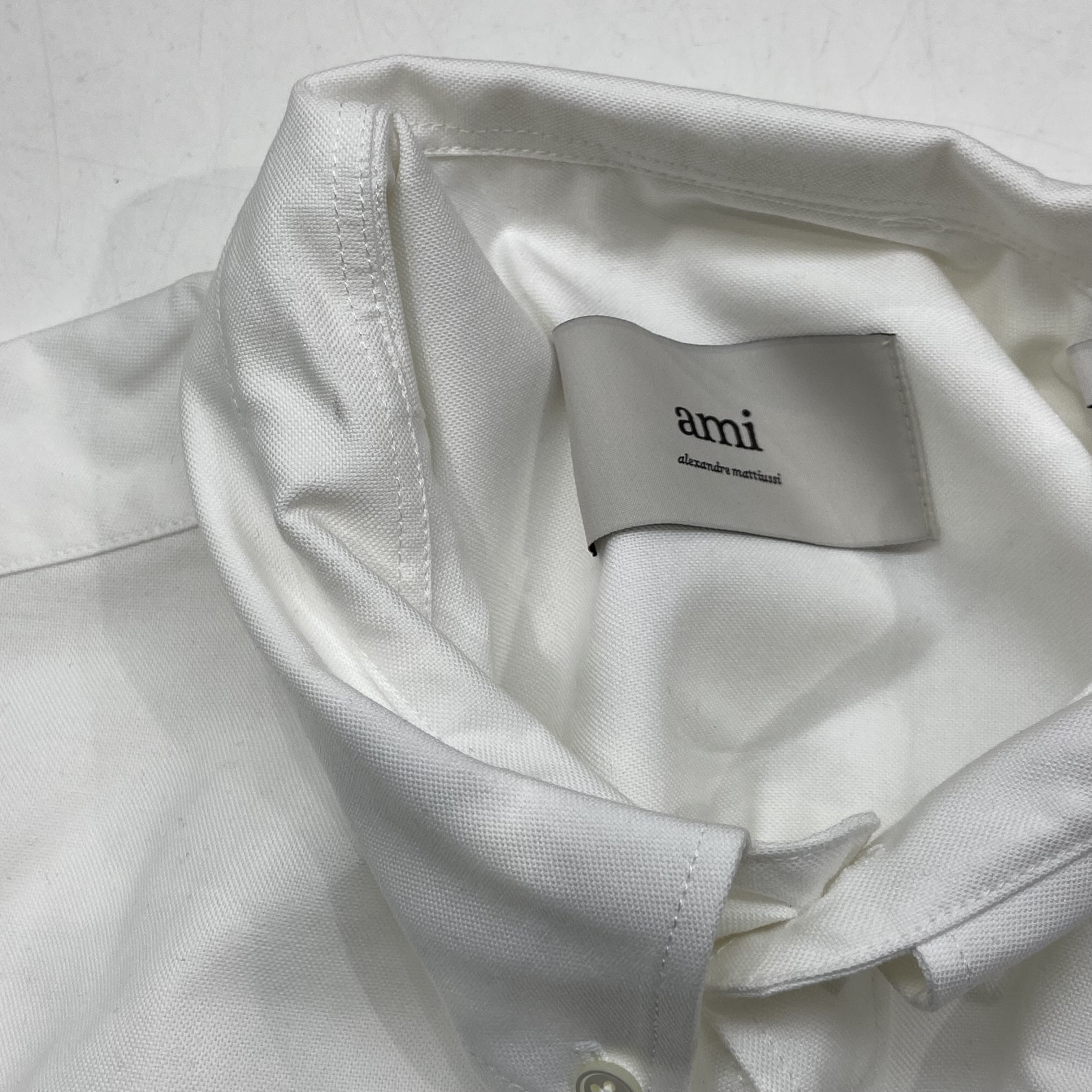아미 스몰 하트 로고 코튼 옥스포드 버튼 다운 셔츠 내츄럴 화이트