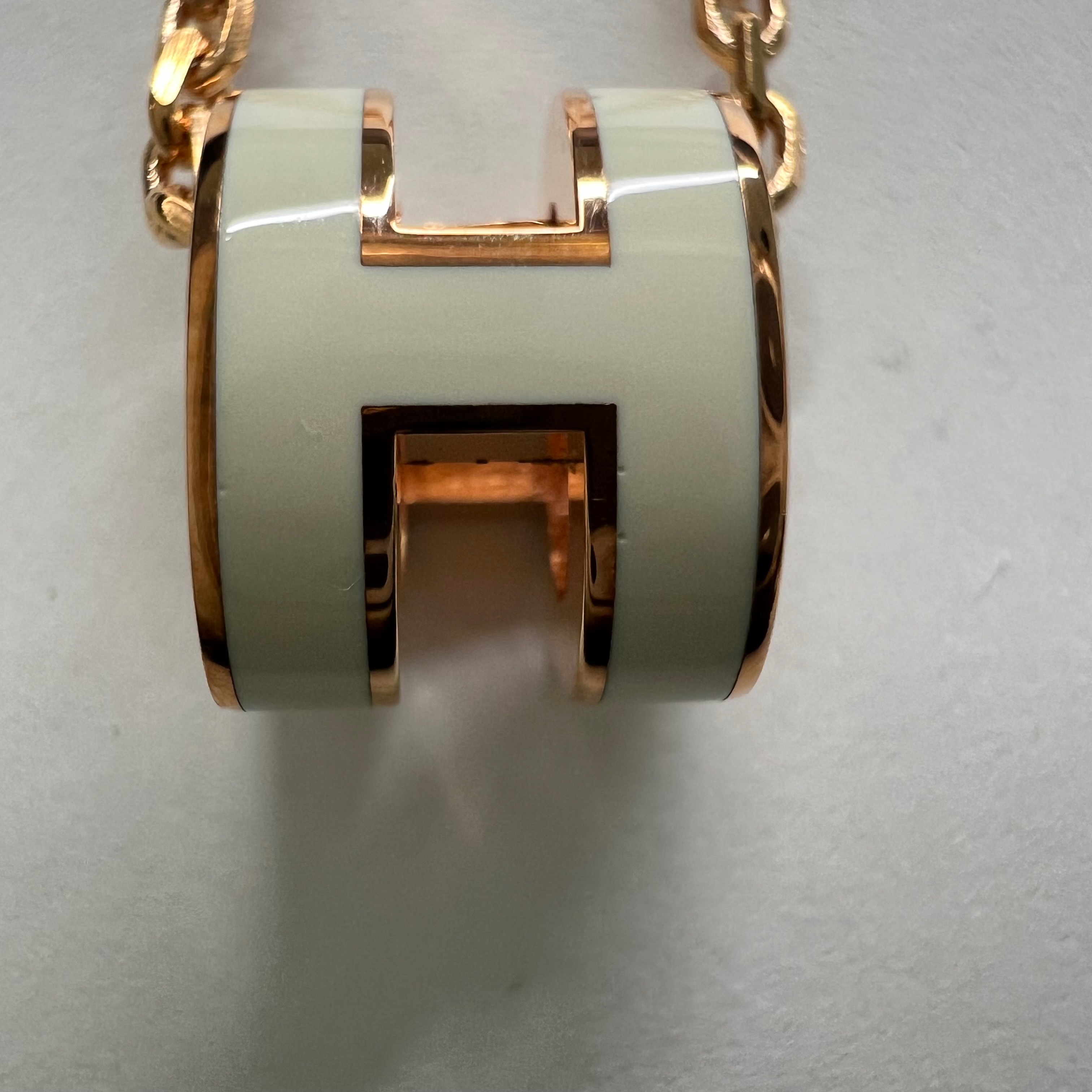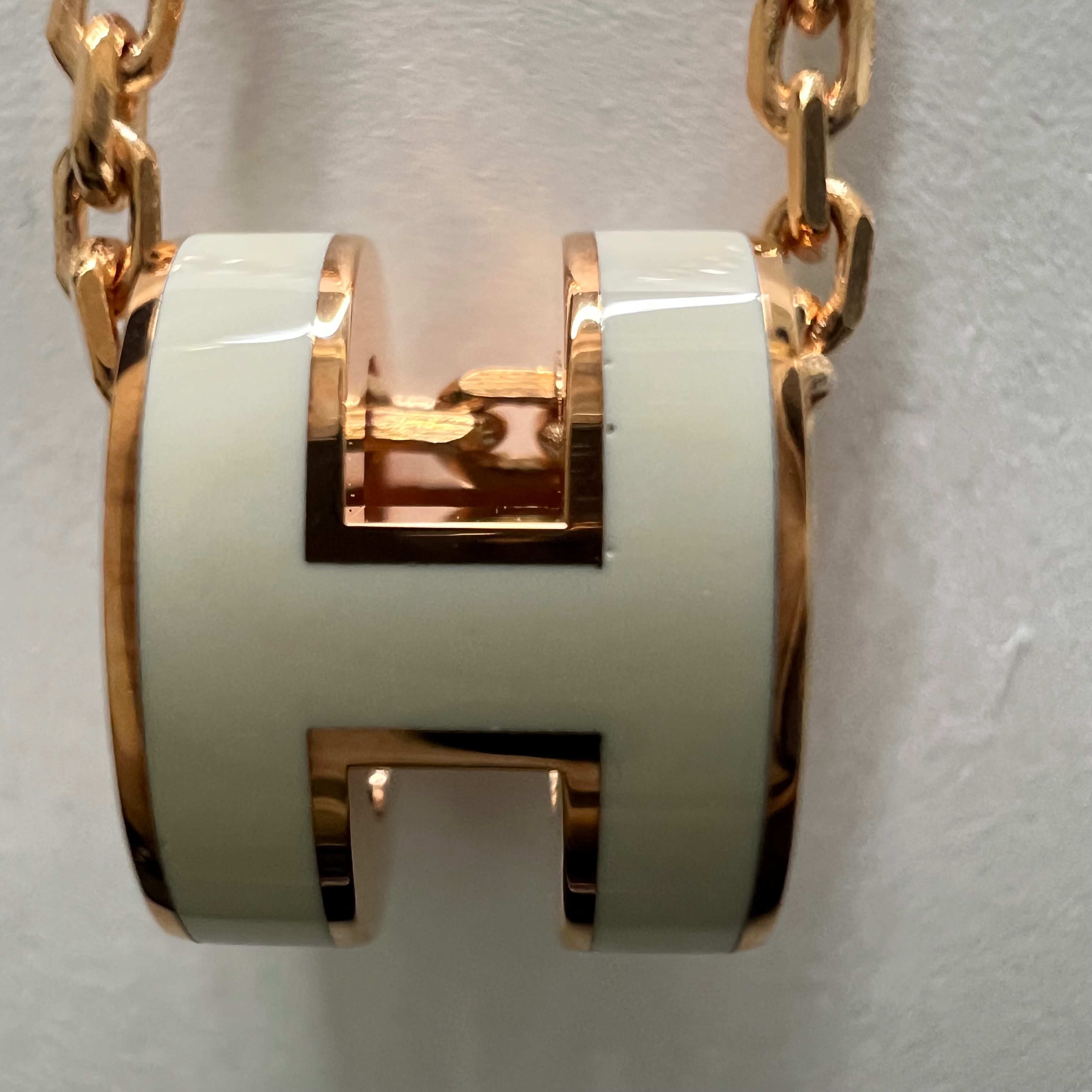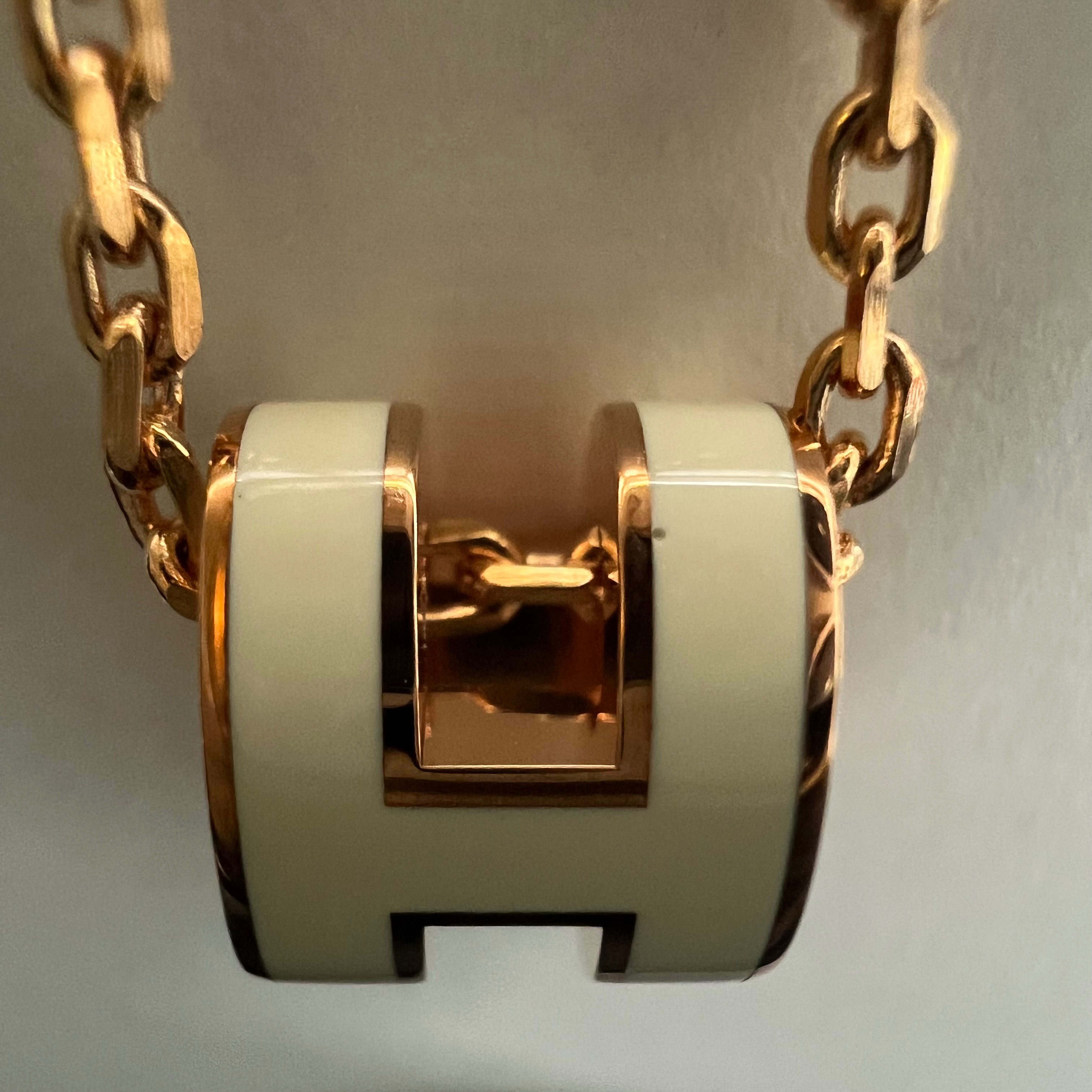 (W) Hermes Mini Pop H Pendant Rose Gold & Blanc