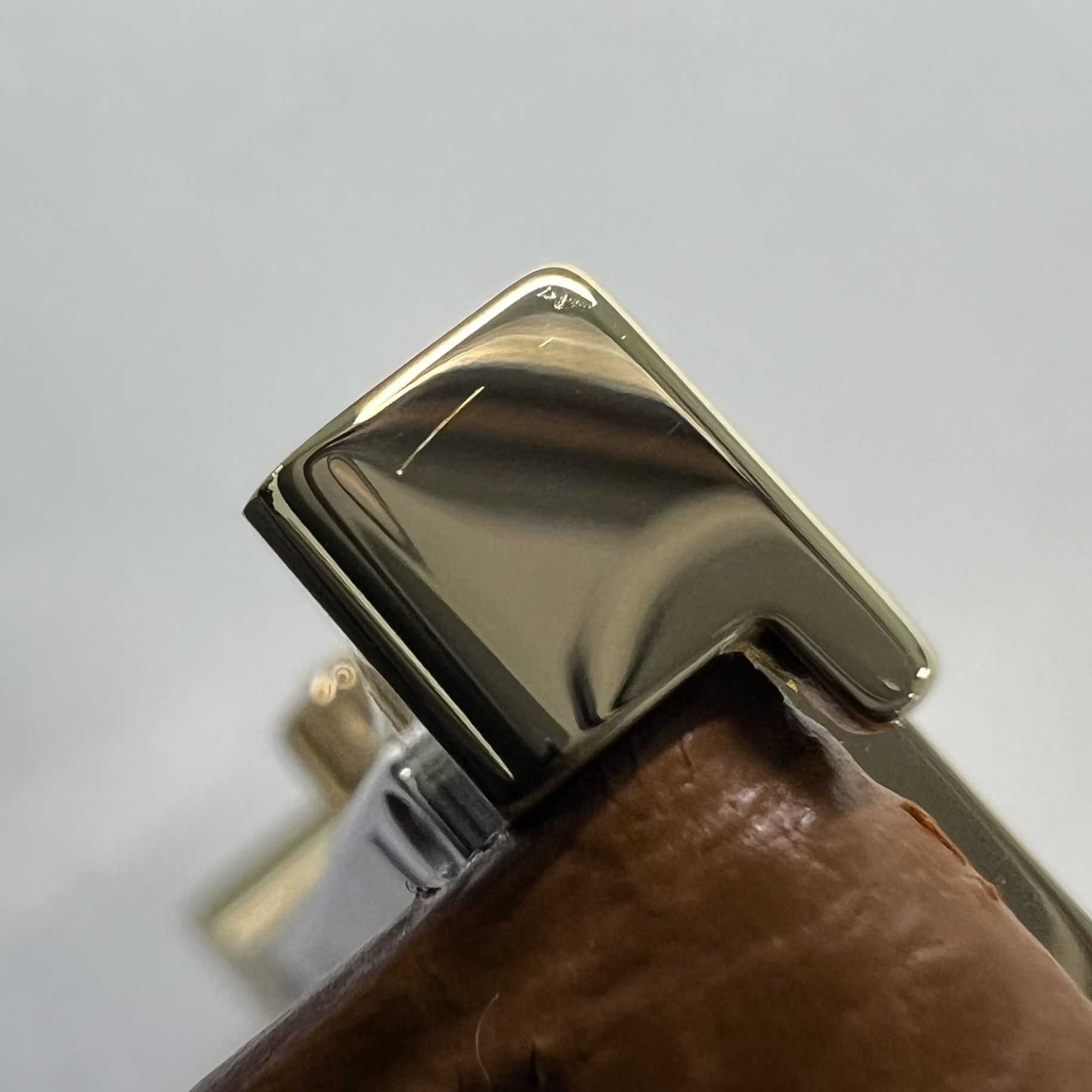 에르메스 H 아워 워치 스몰 골드 체스트넛 앱송 카프스킨 스트랩 & 옐로우 골드 스틸