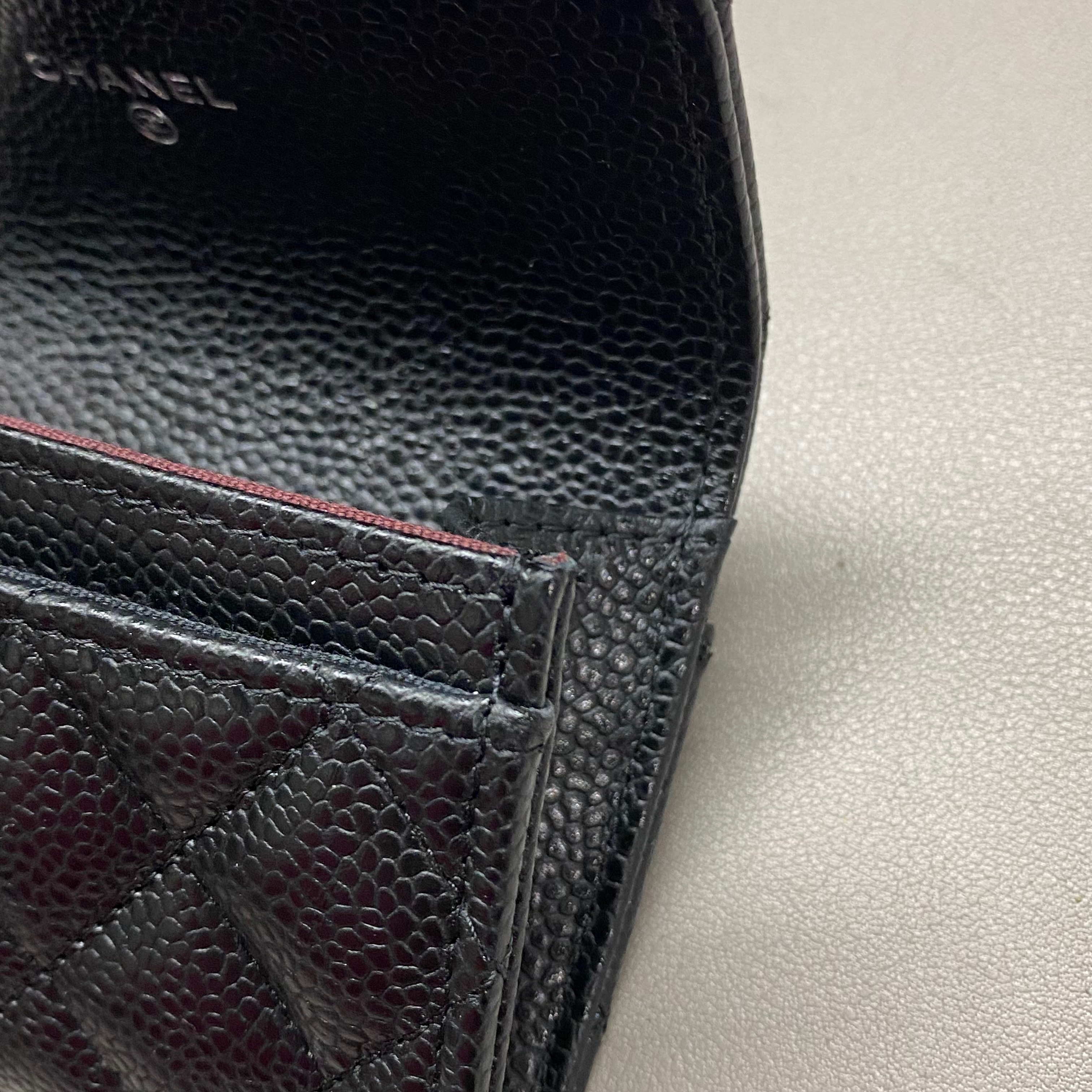 샤넬 클래식 카드 홀더 그레인드 카프스킨 & 실버 메탈 블랙